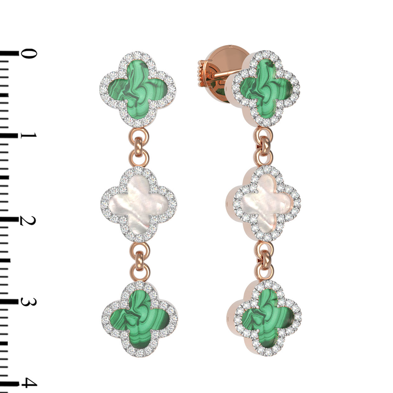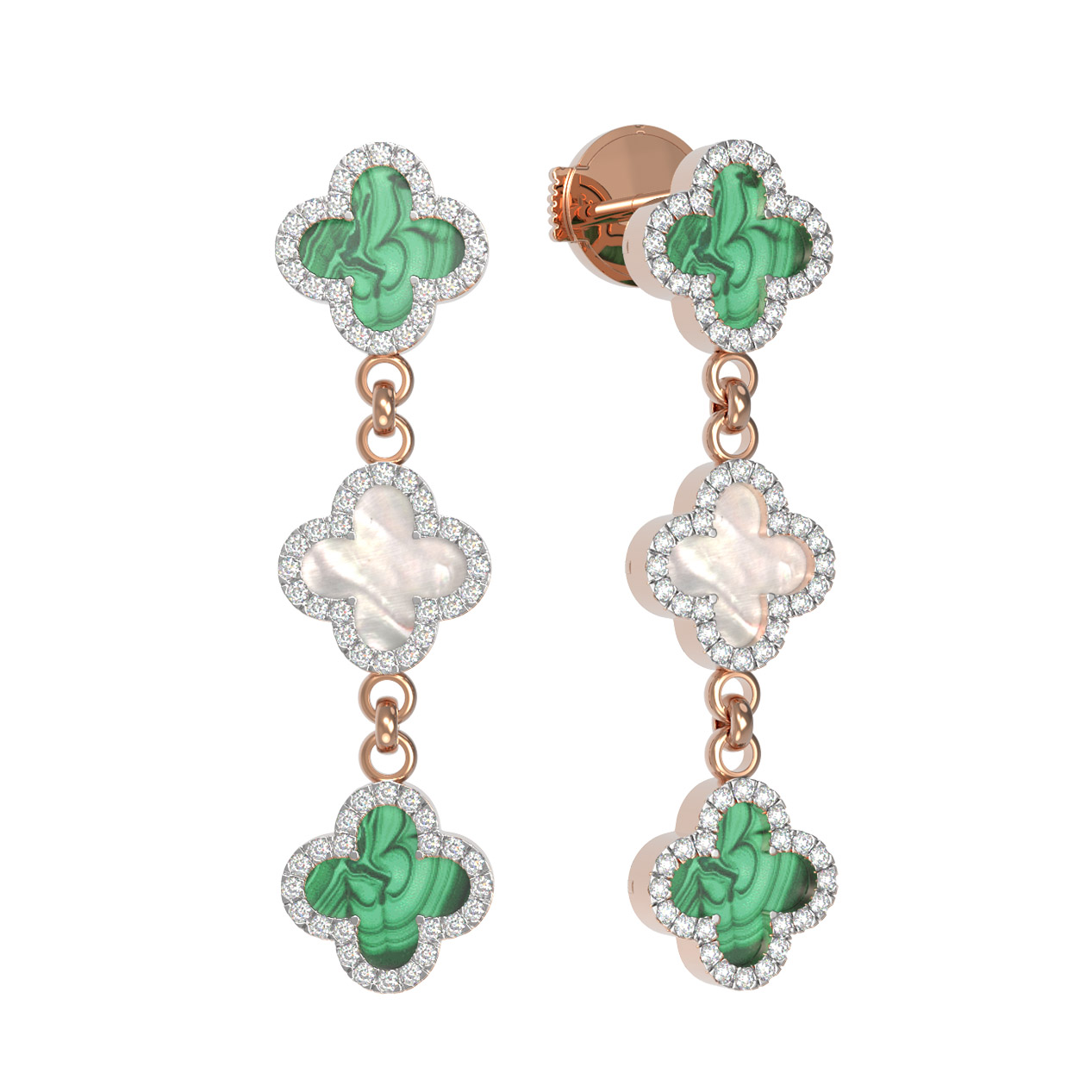 Серьги из золота c бриллиантами, малахитом и перламутром