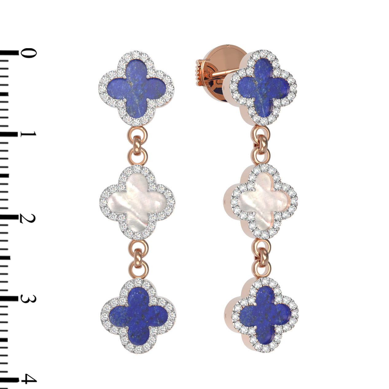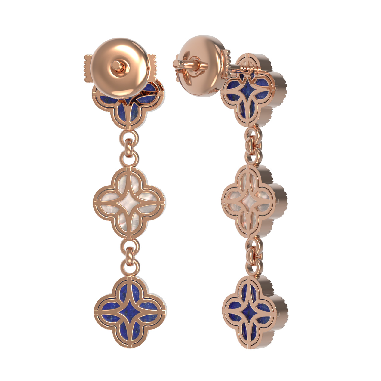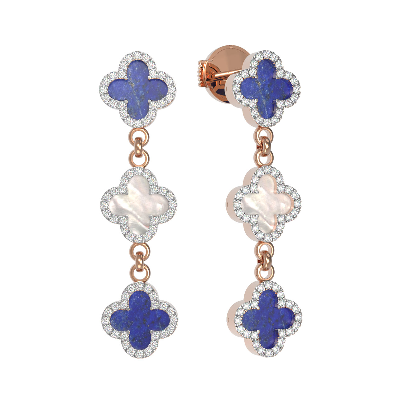 Серьги из золота c бриллиантами, лазуритом и перламутром