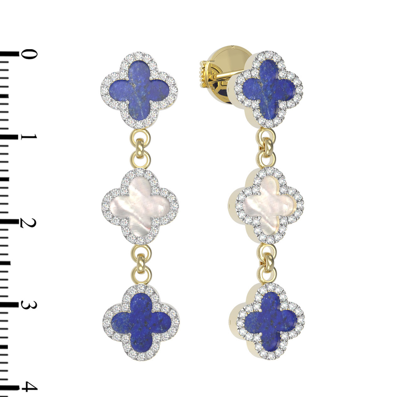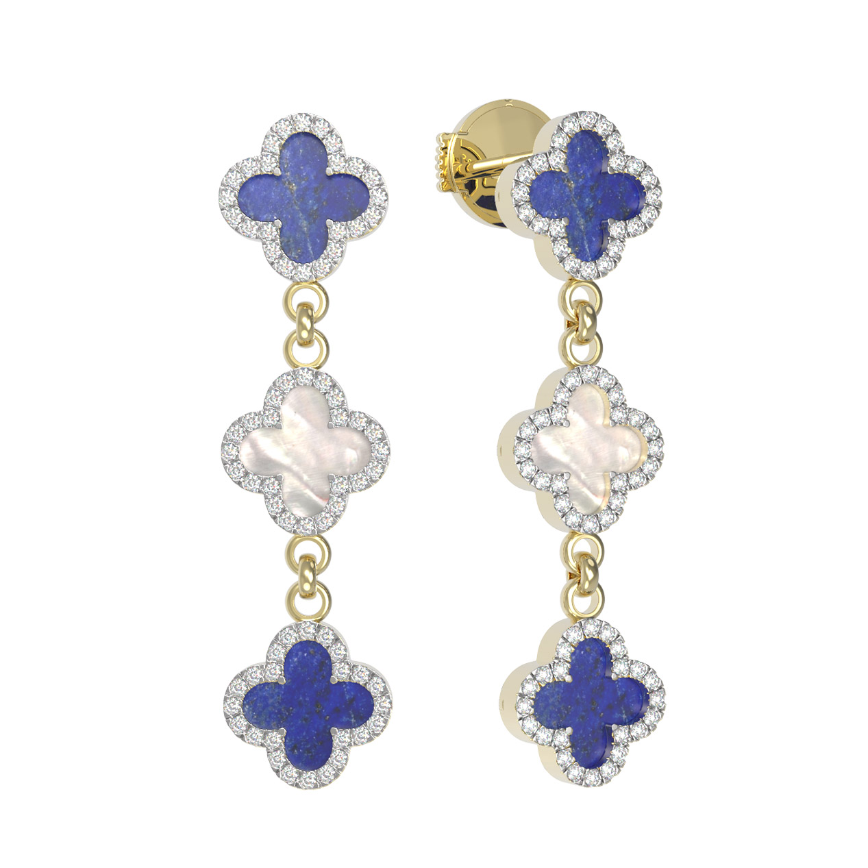 Серьги из лимонного золота c бриллиантами, лазуритом и перламутром