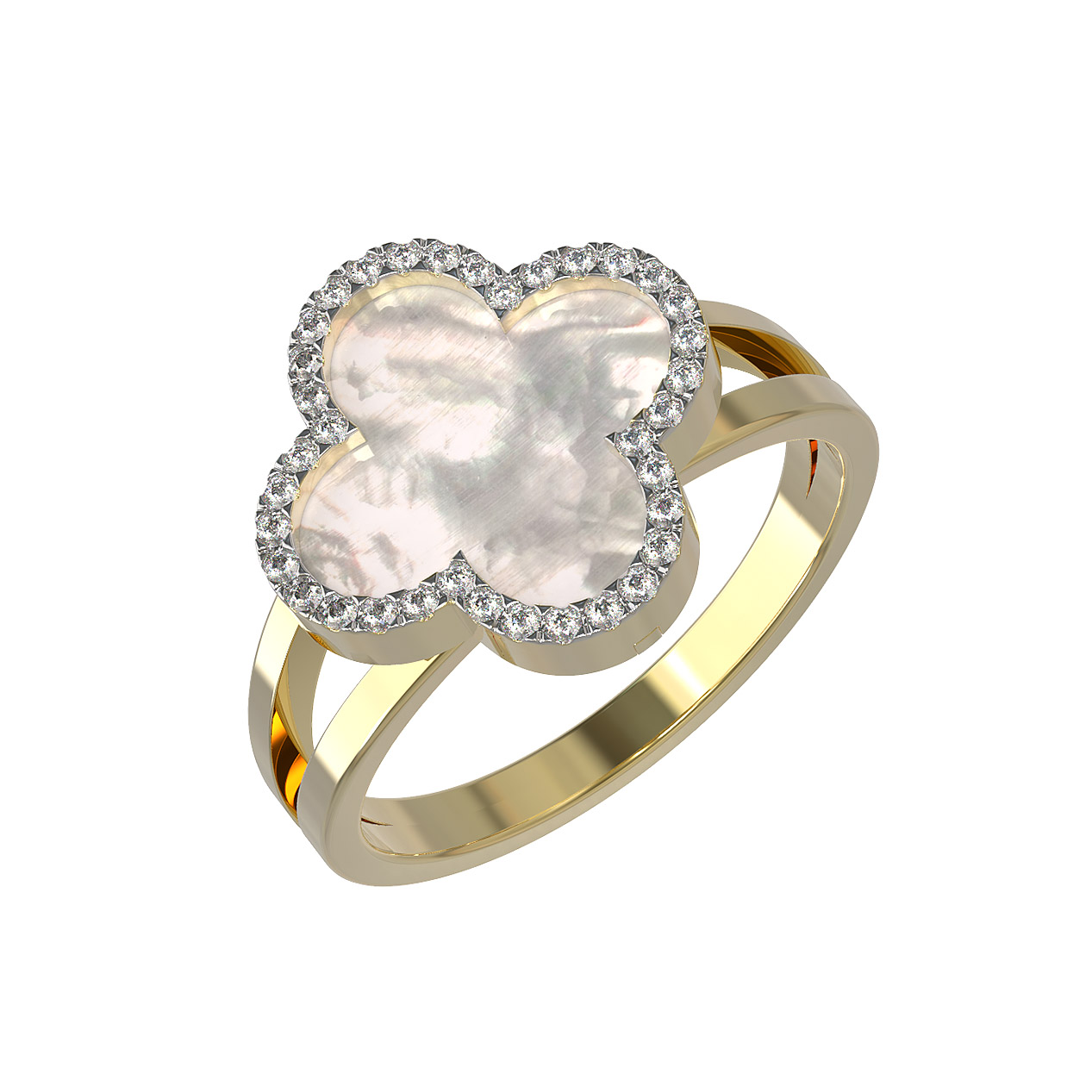 Кольцо из лимонного золота c бриллиантами и перламутром