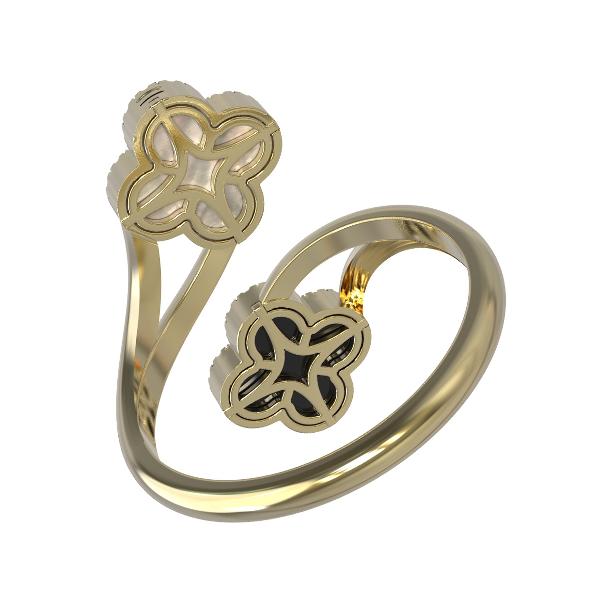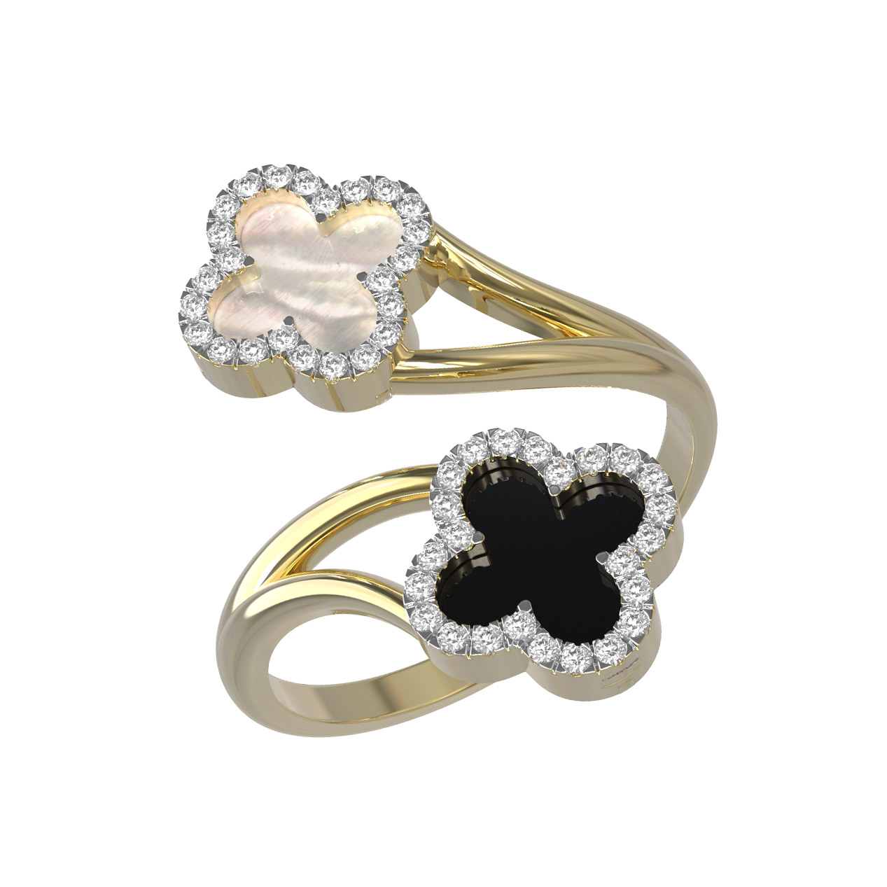 Кольцо из лимонного золота c бриллиантами, ониксом и перламутром
