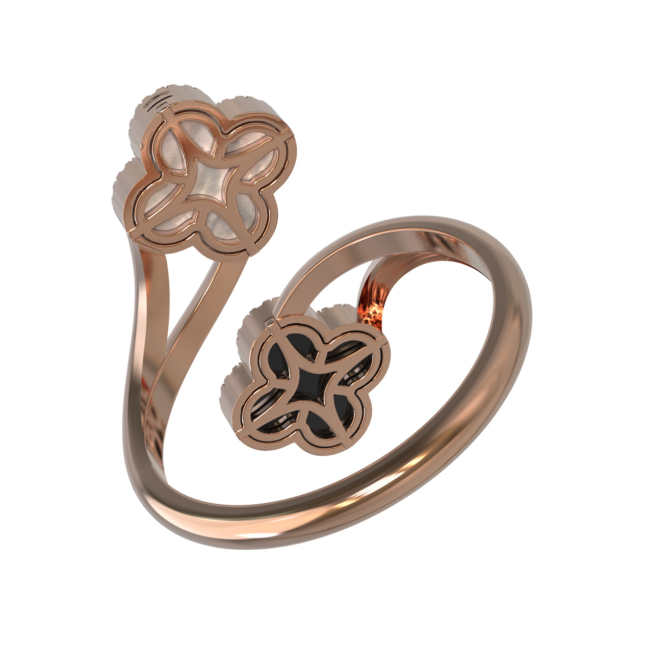 Кольцо из золота c бриллиантами, ониксом и перламутром
