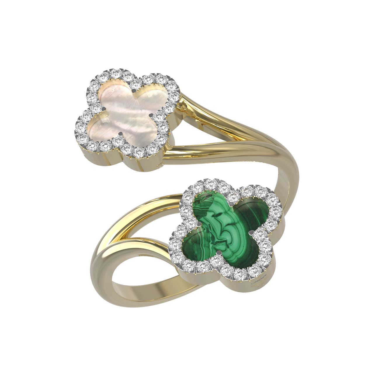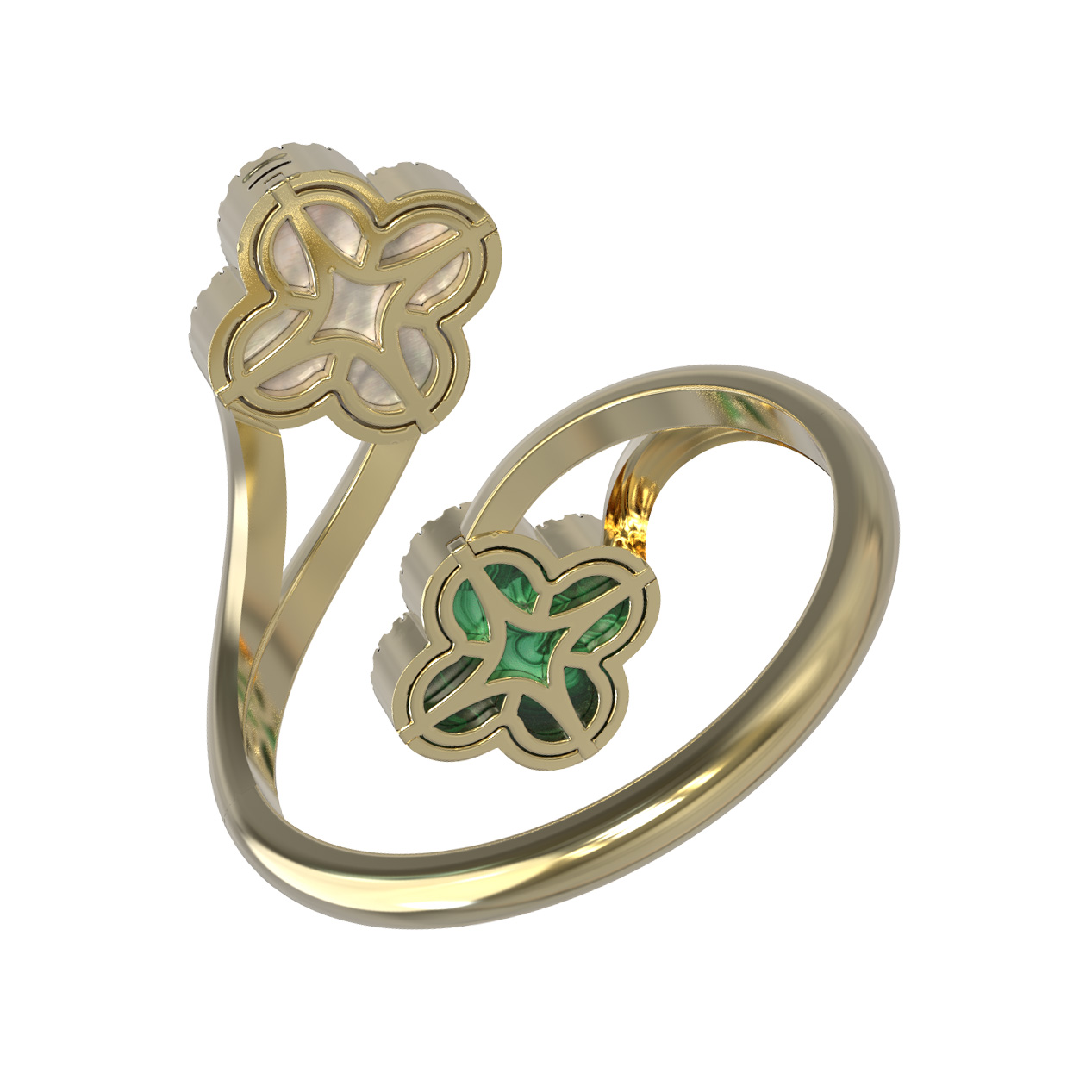 Кольцо из лимонного золота c бриллиантами, малахитом и перламутром