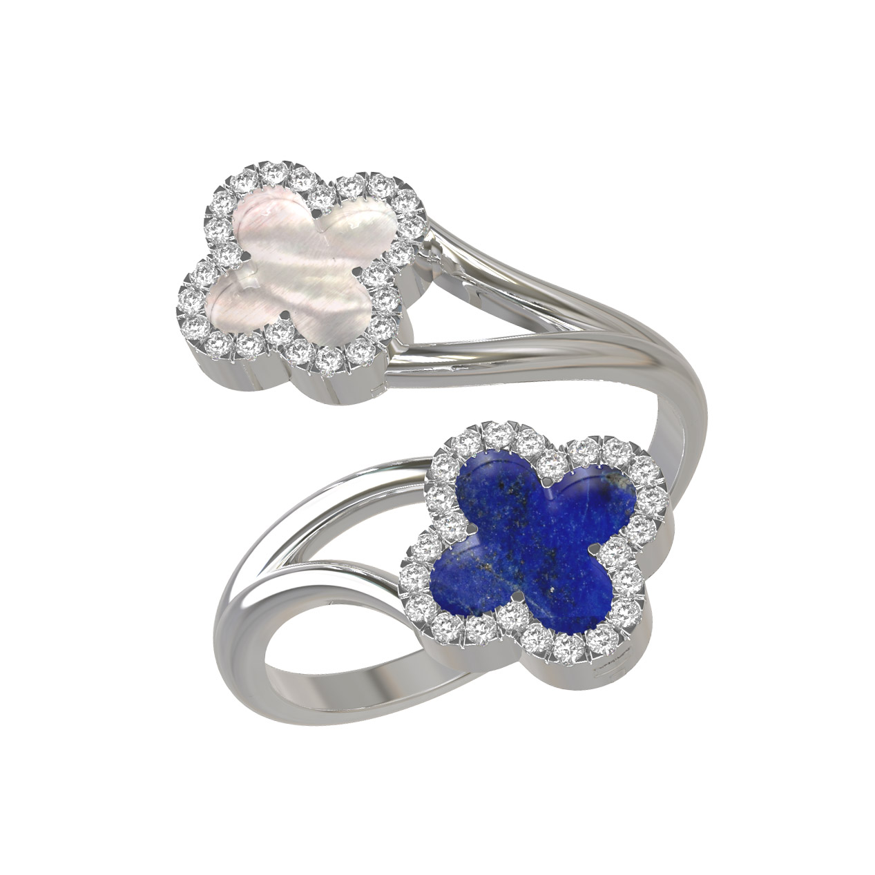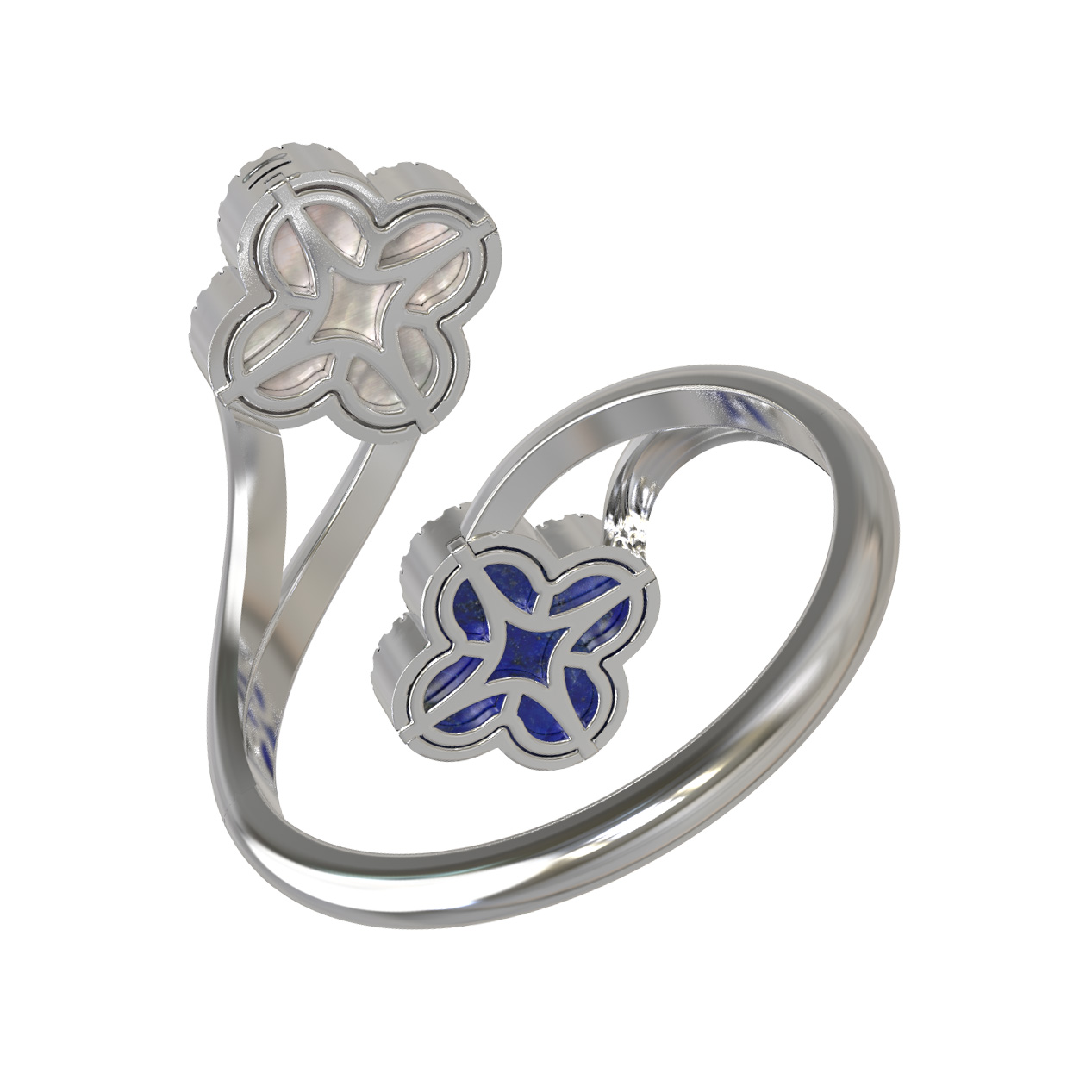 Кольцо из белого золота c бриллиантами, лазуритом и перламутром