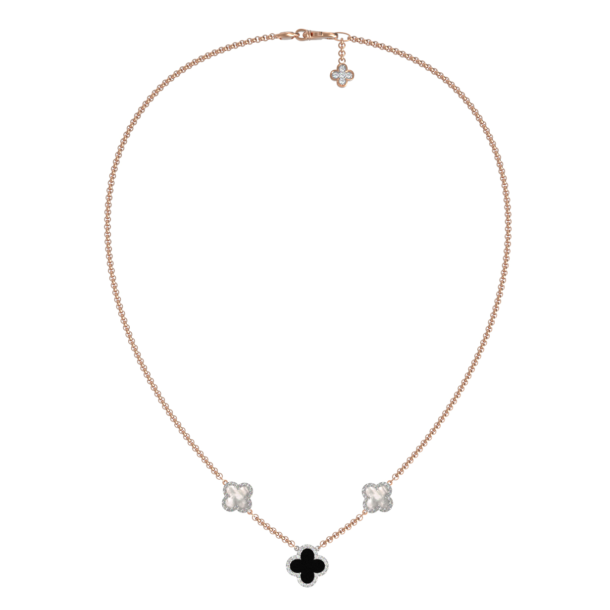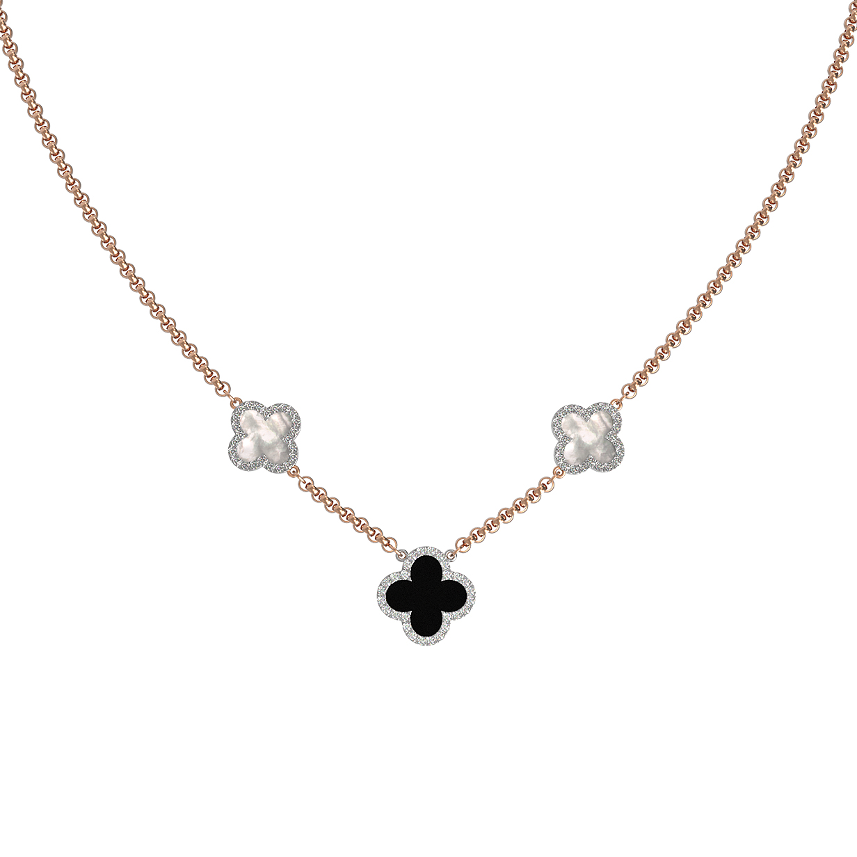 Колье из золота c бриллиантами, ониксом и перламутром