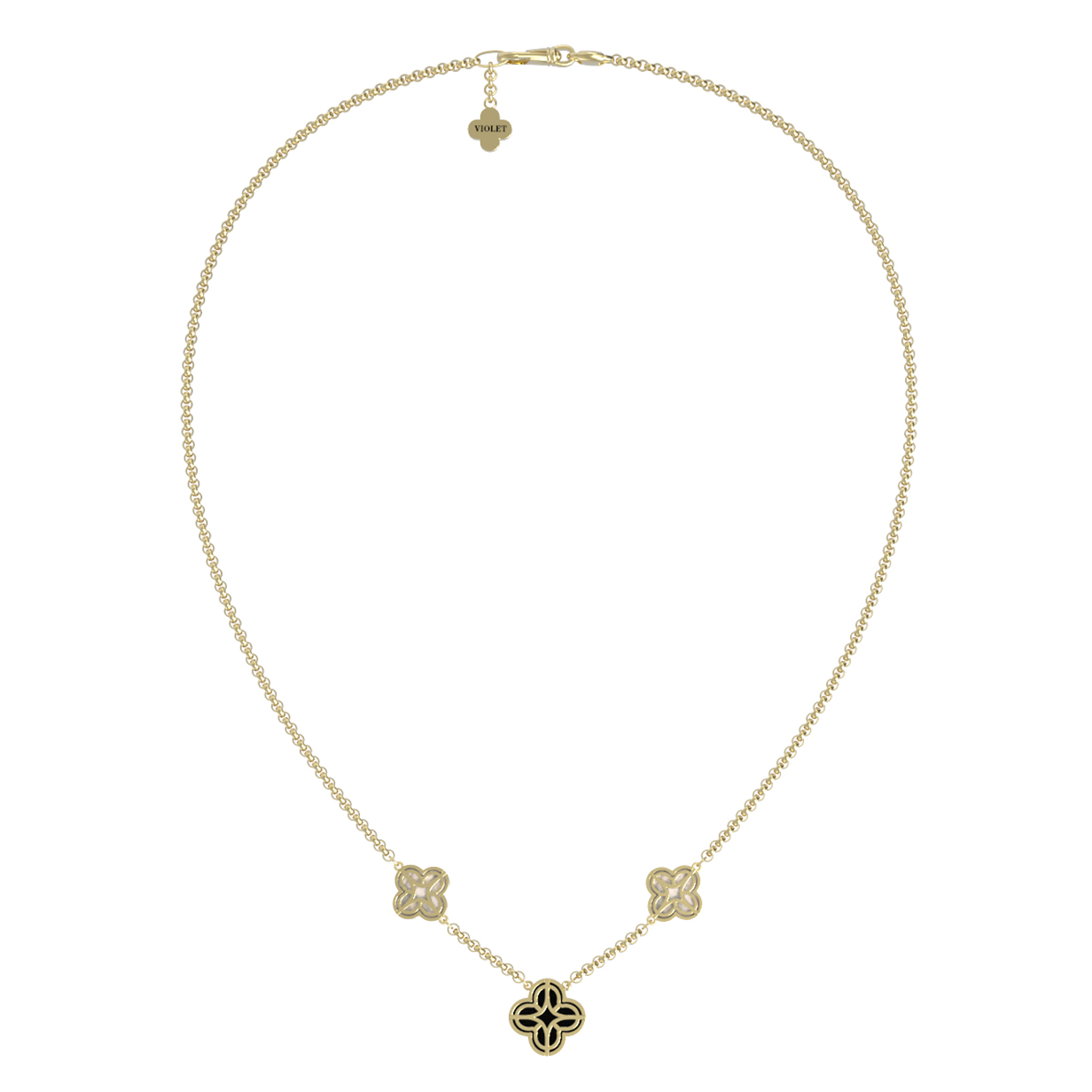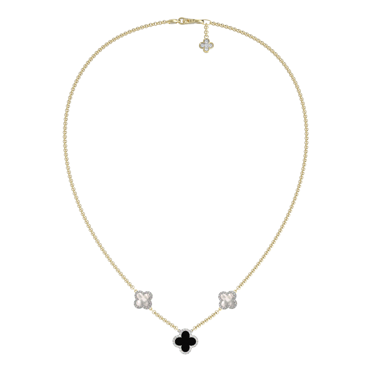 Колье из лимонного золота c бриллиантами, ониксом и перламутром