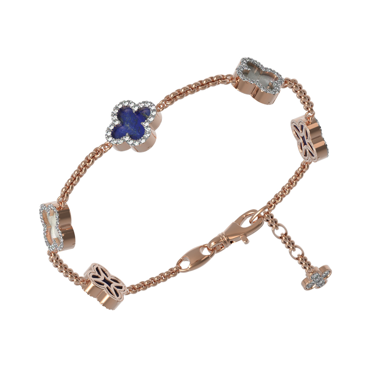 Браслет из золота c бриллиантами, лазуритом и перламутром