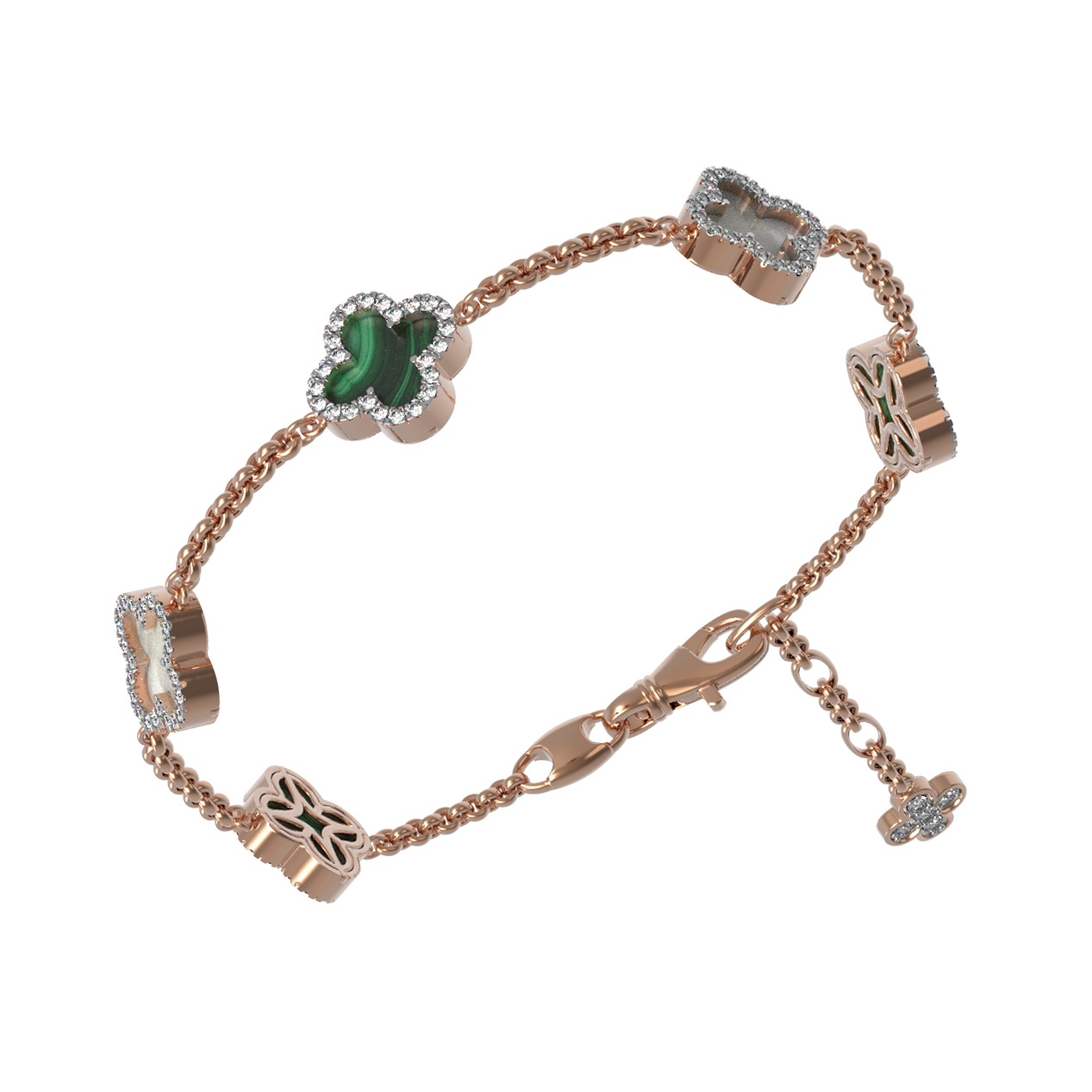 Браслет из золота c бриллиантами, малахитом и перламутром