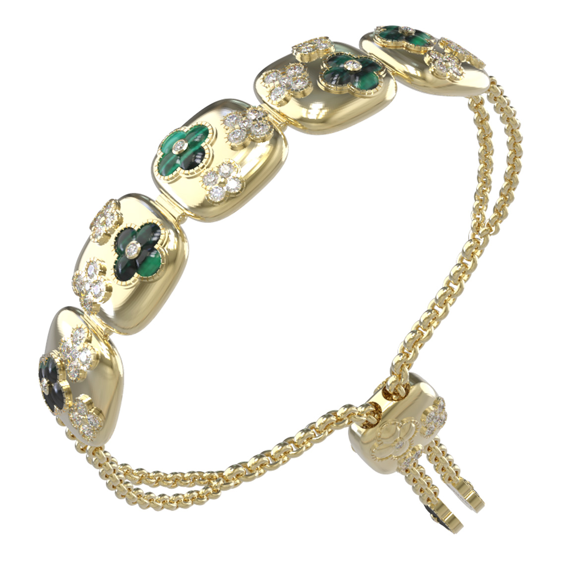 Браслет из лимонного золота c бриллиантами и малахитом