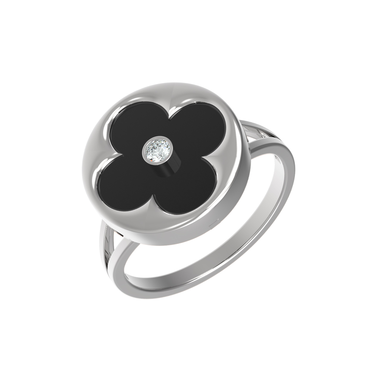 Кольцо из белого золота c бриллиантами и ониксом