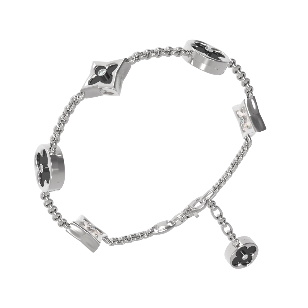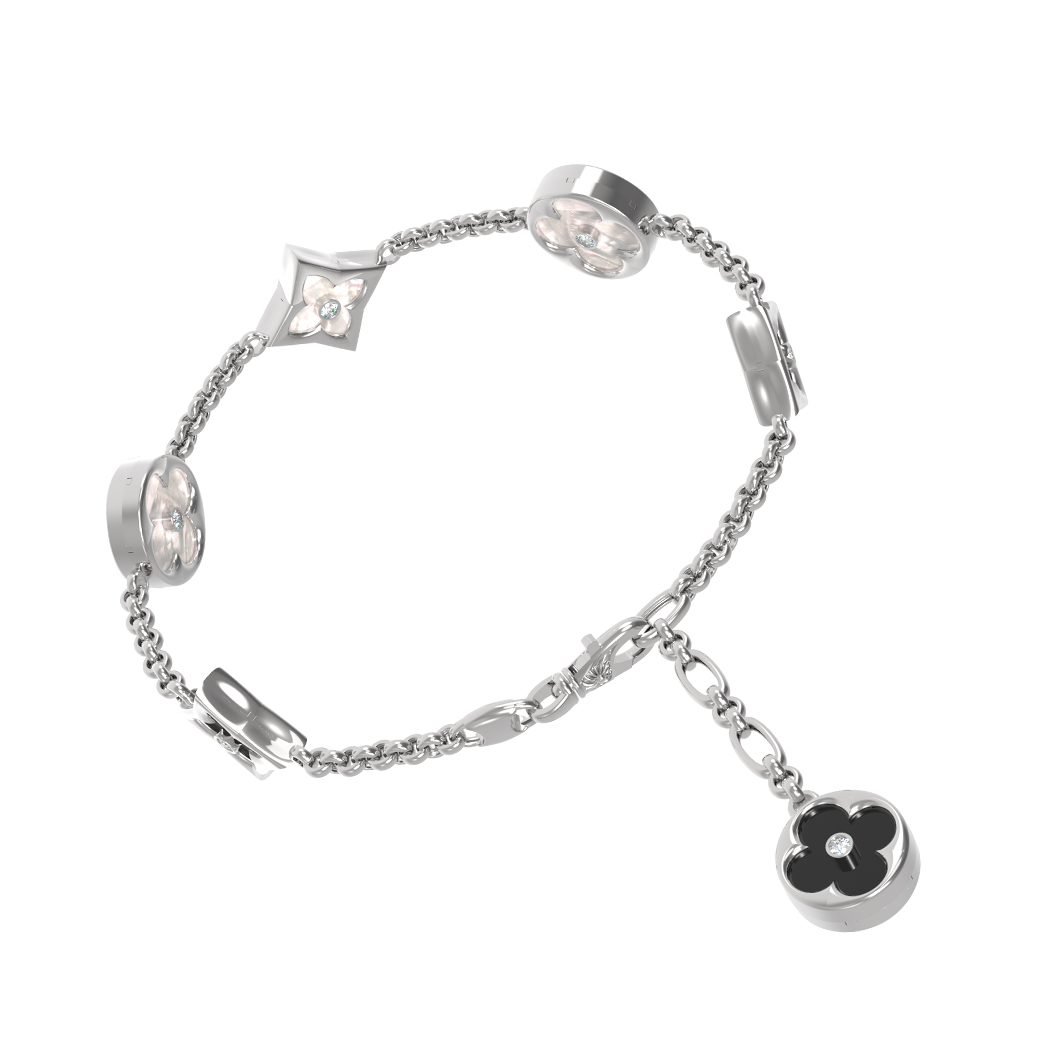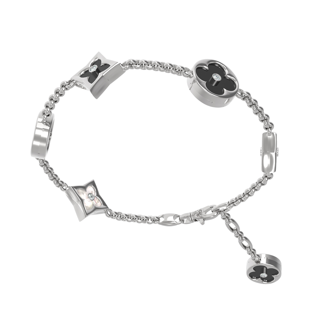 Браслет из белого золота c бриллиантами, ониксом и перламутром