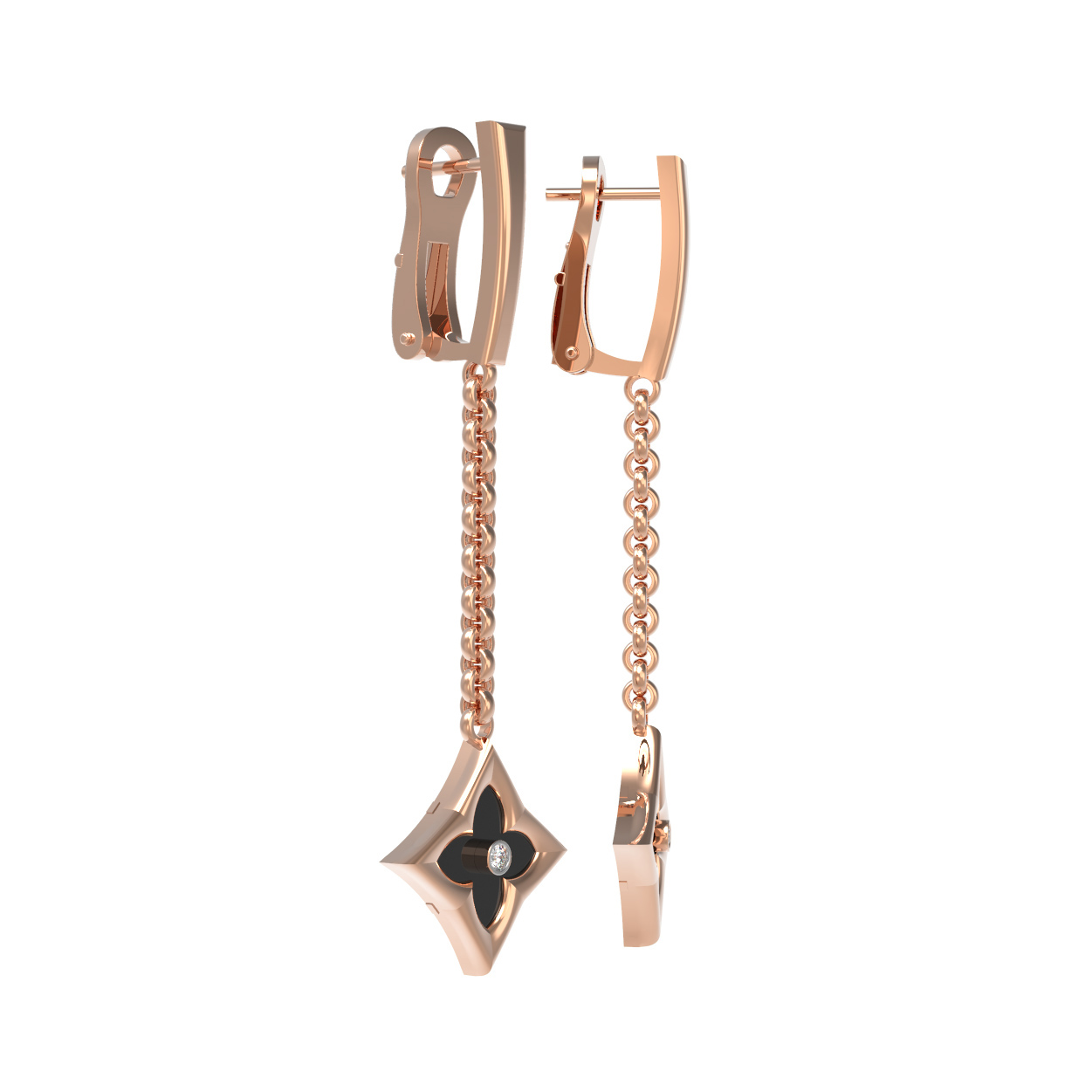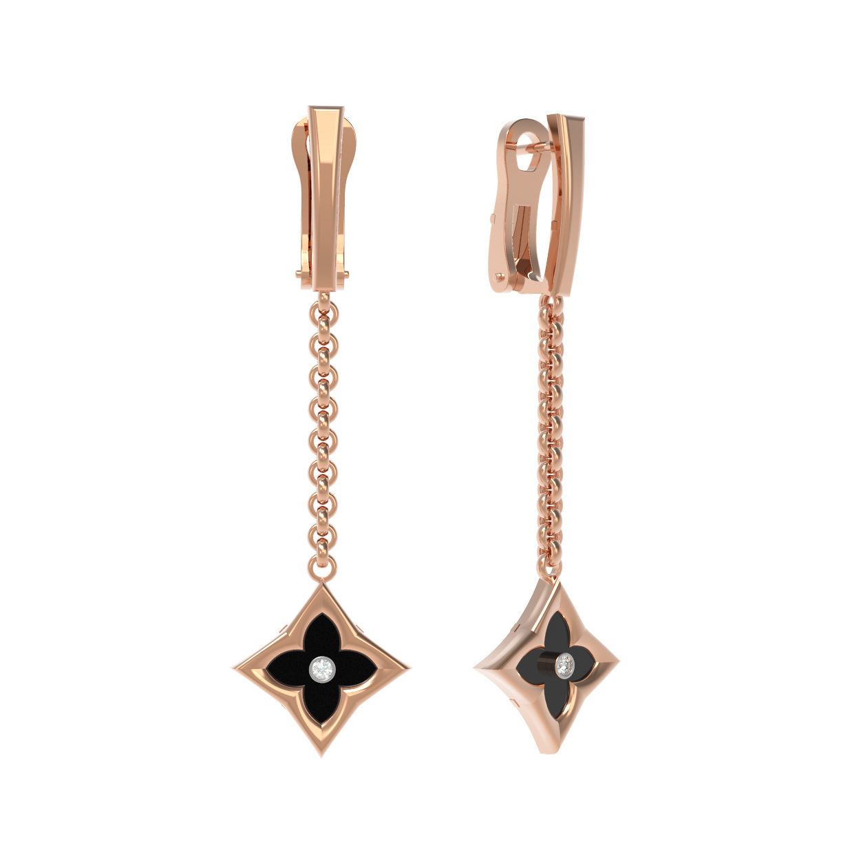 Серьги из золота c бриллиантами и ониксом