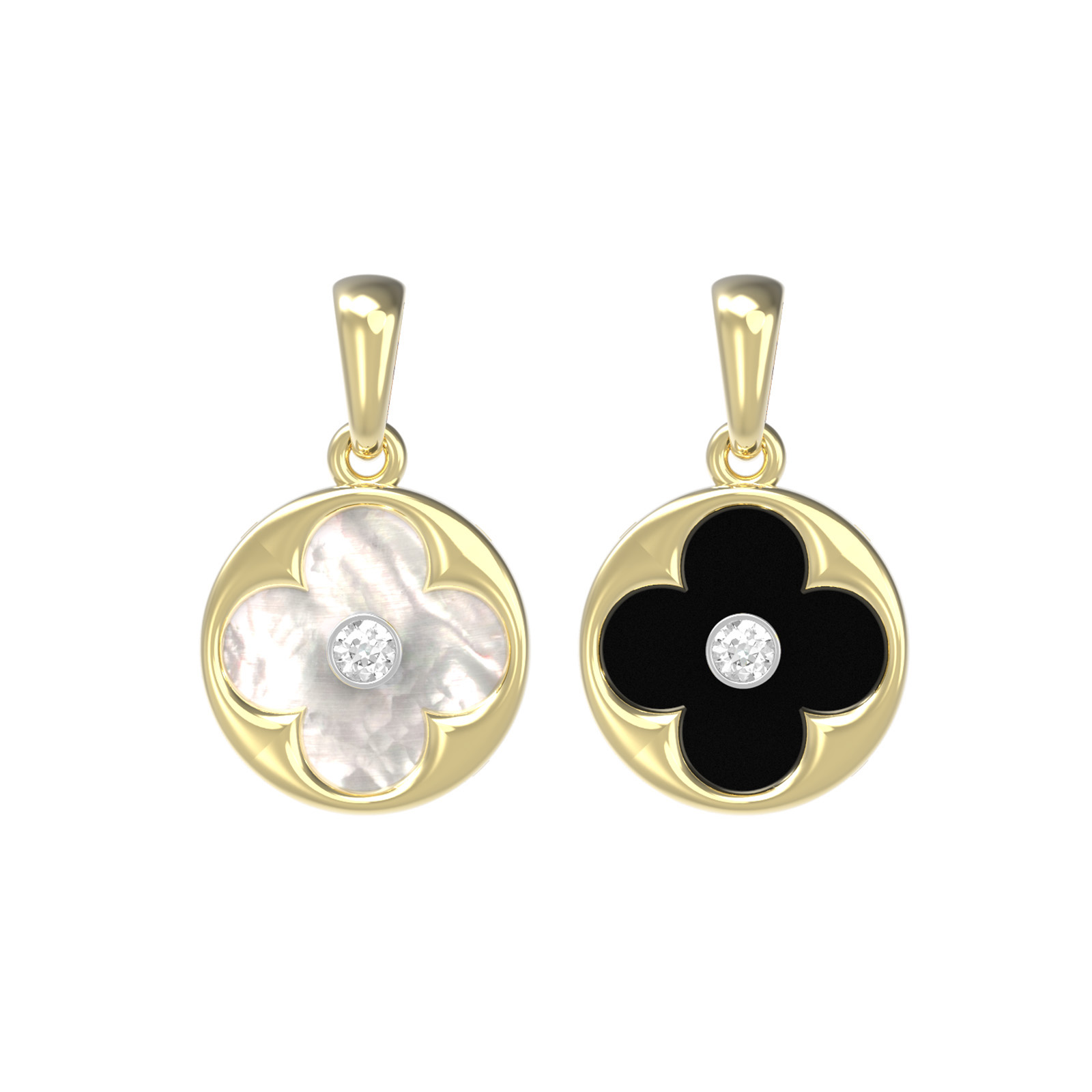 Подвеска из лимонного золота c бриллиантами, ониксом и перламутром