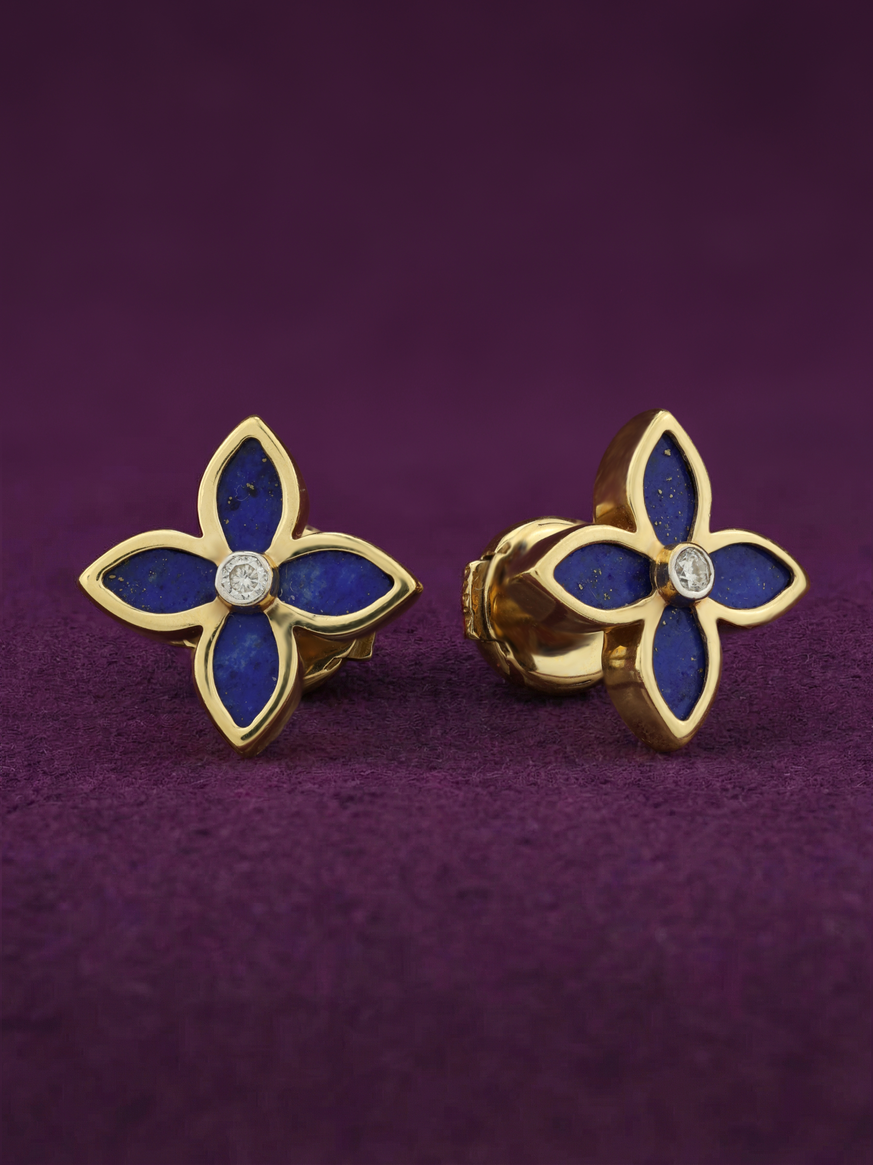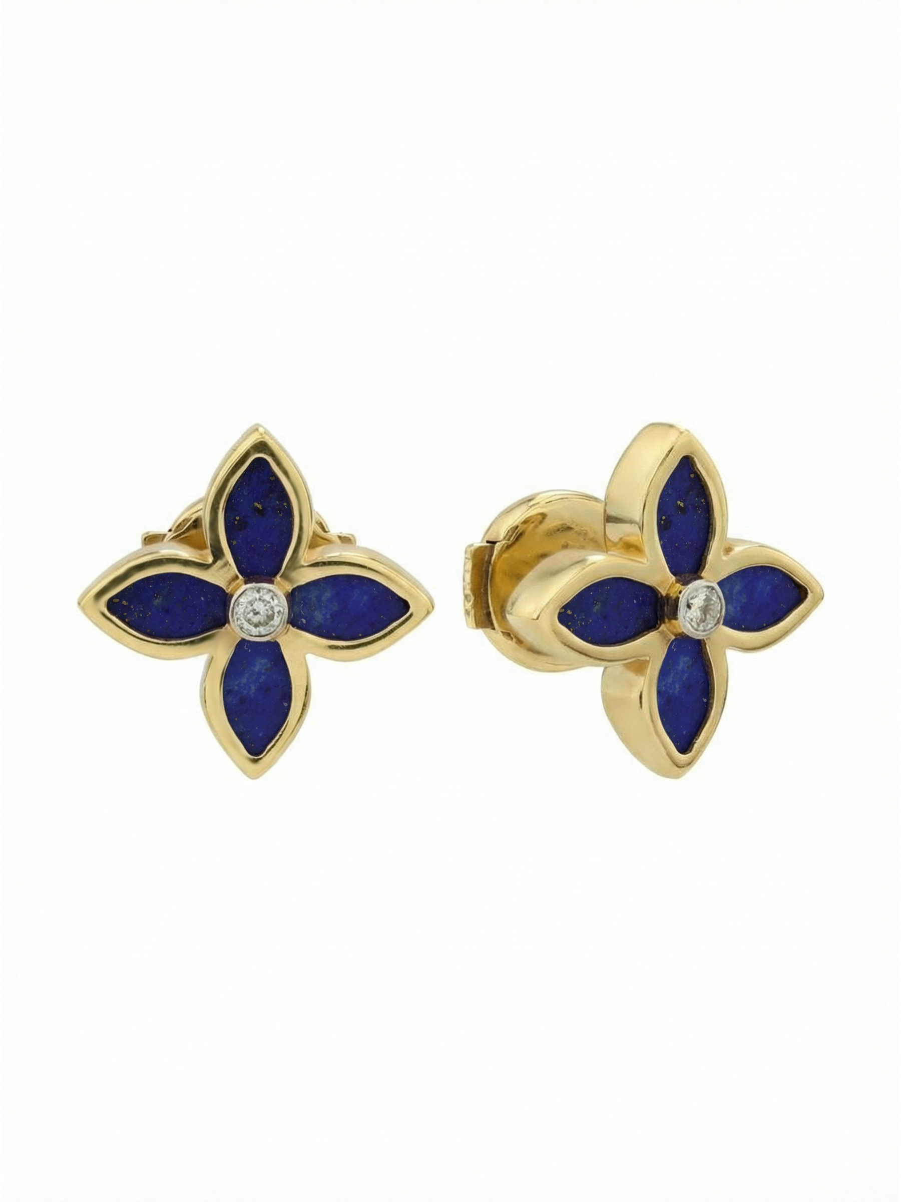 Серьги из лимонного золота c бриллиантами и лазуритом