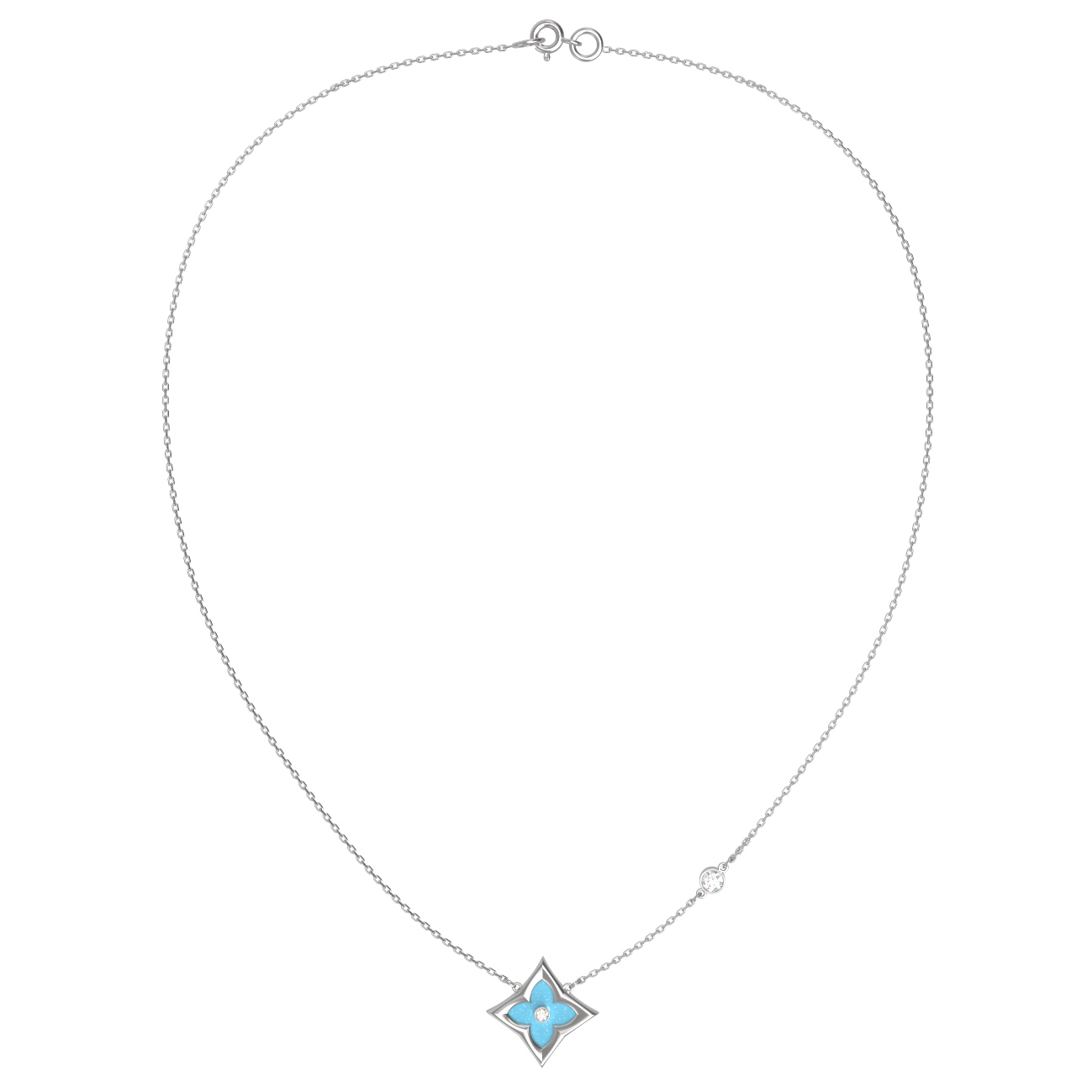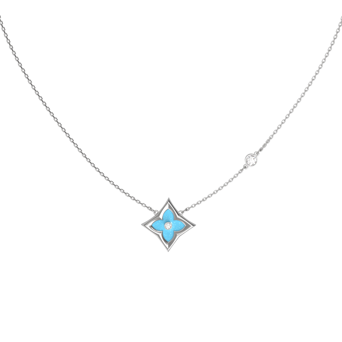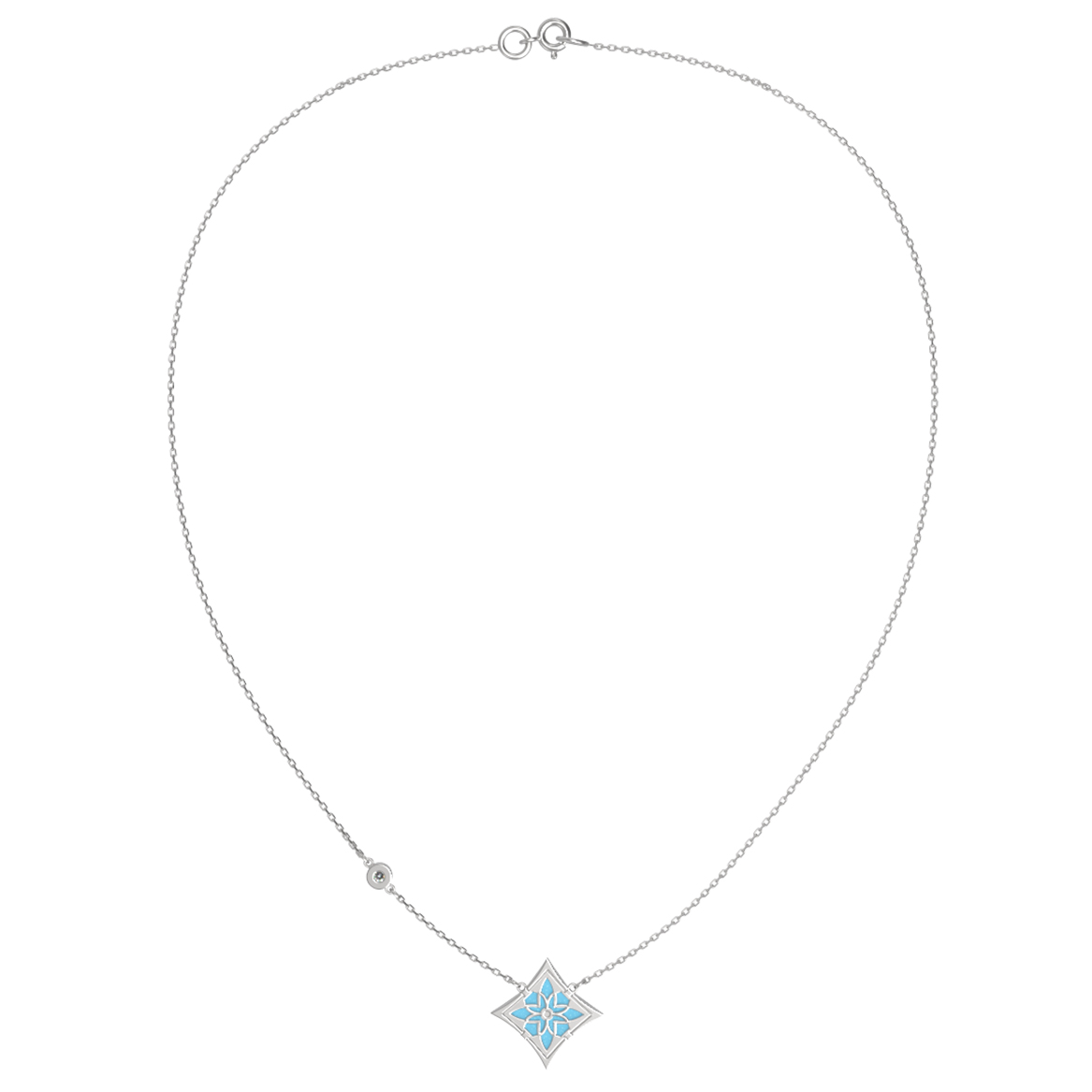 Колье из белого золота c бриллиантами и бирюзой