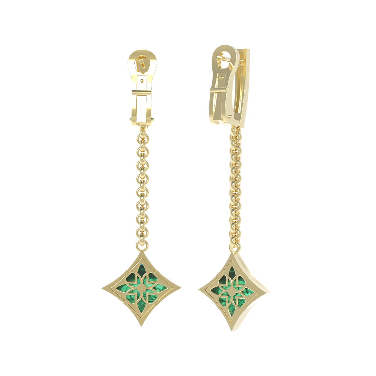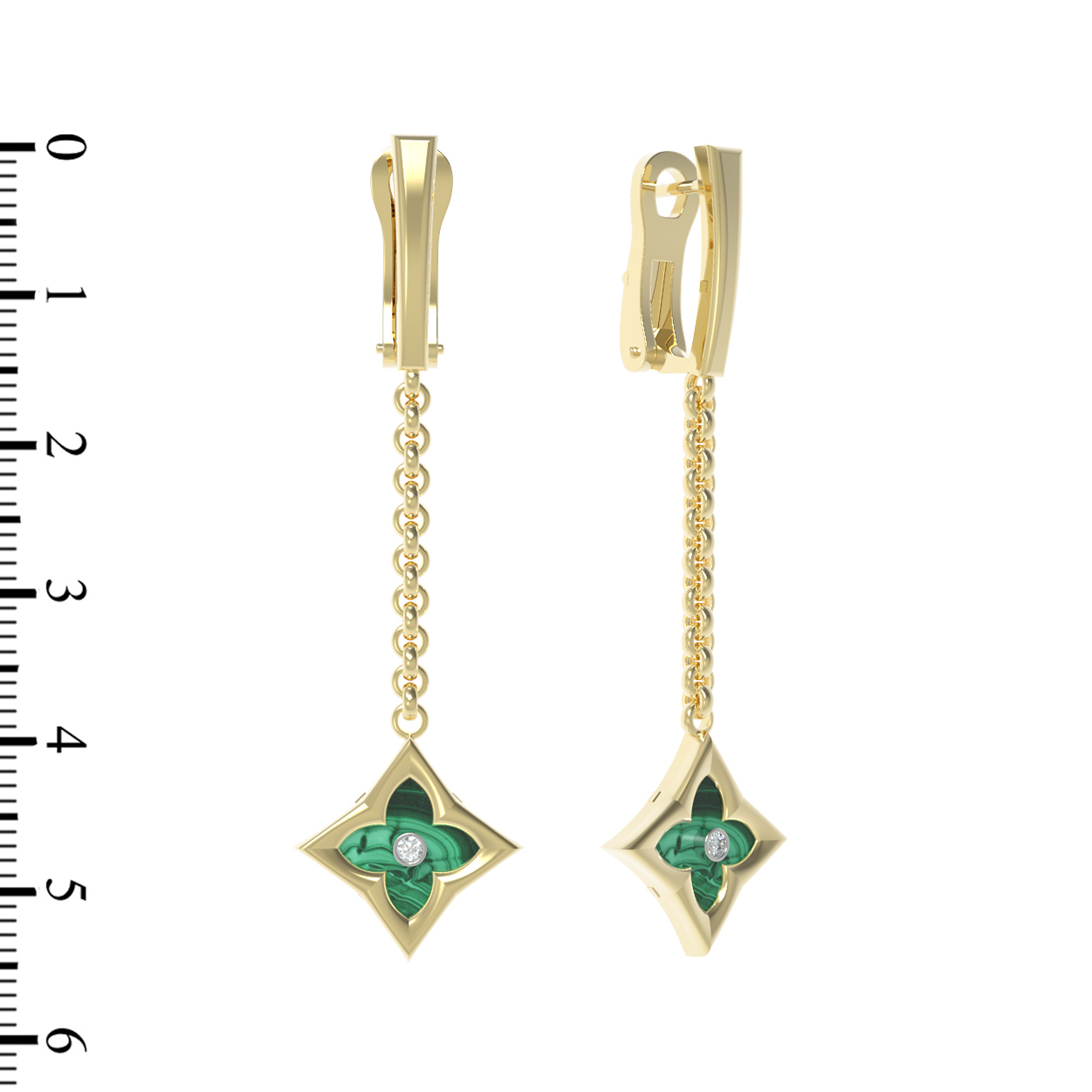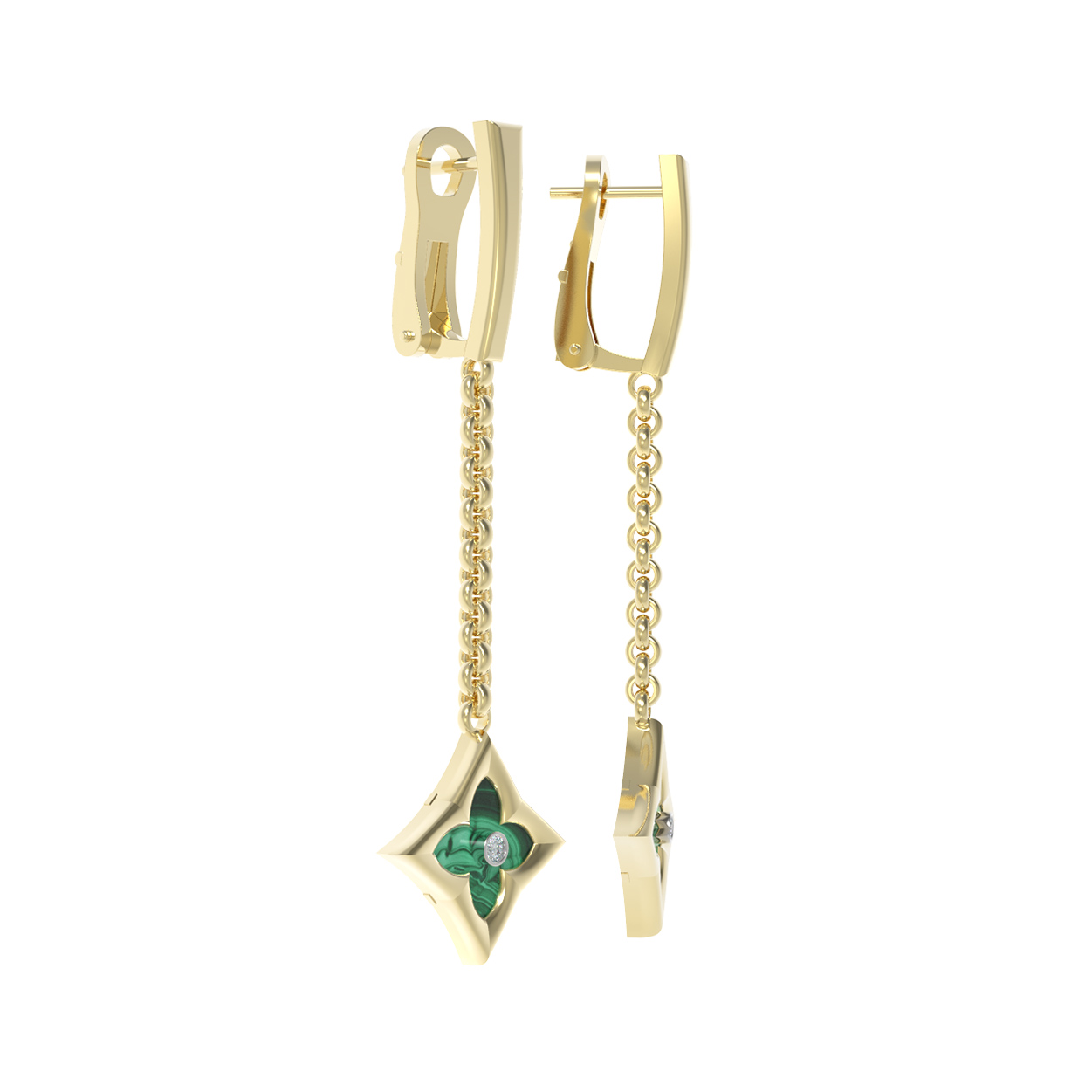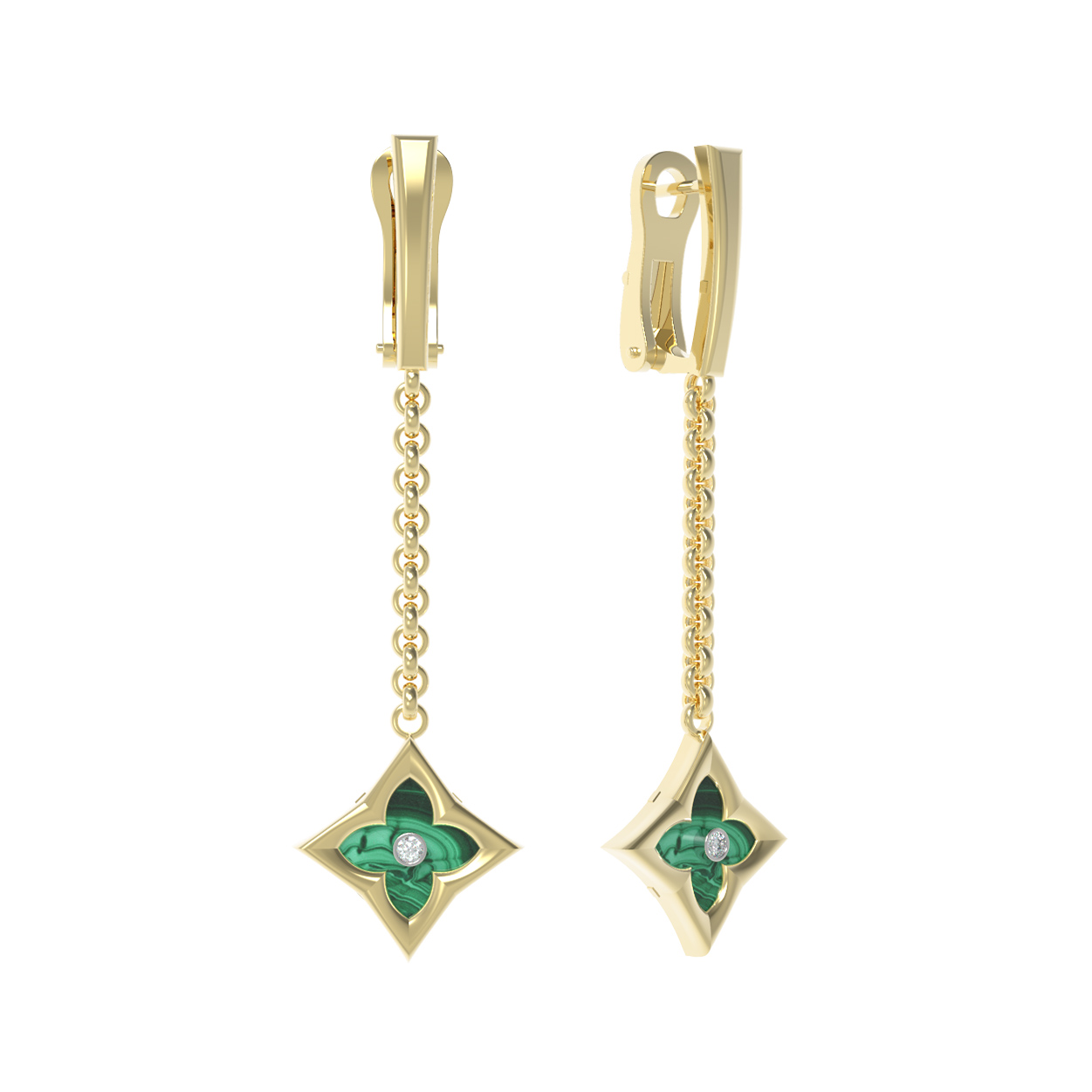 Серьги из лимонного золота c бриллиантами и малахитом