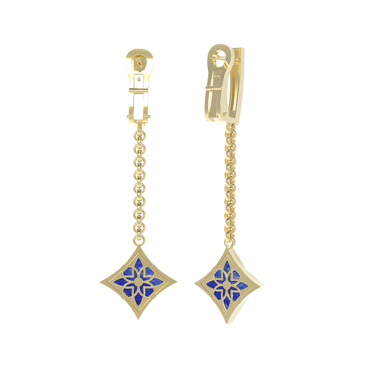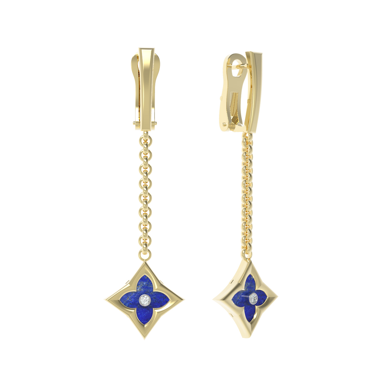 Серьги из лимонного золота c бриллиантами и лазуритом