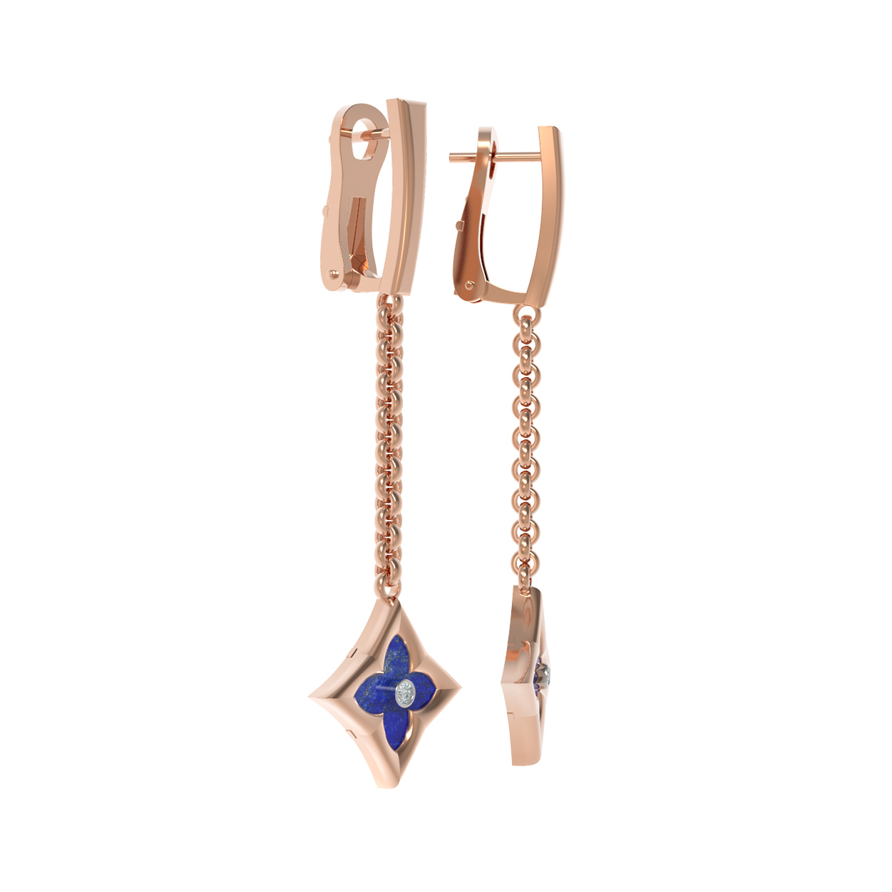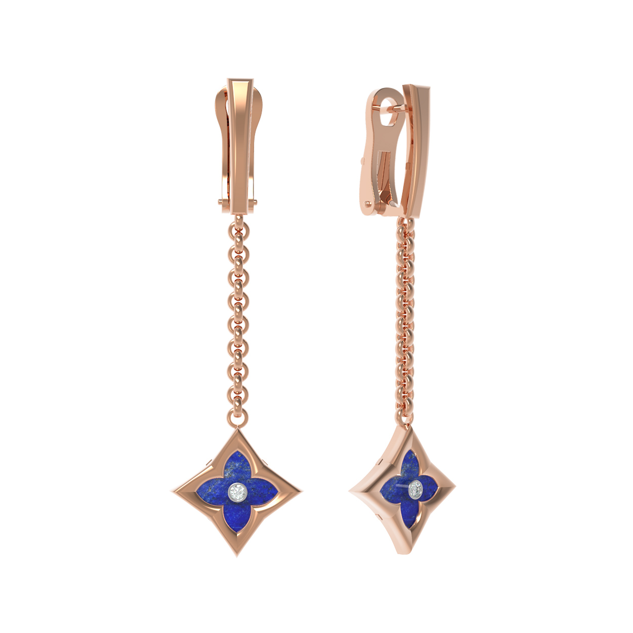 Серьги из золота c бриллиантами и лазуритом