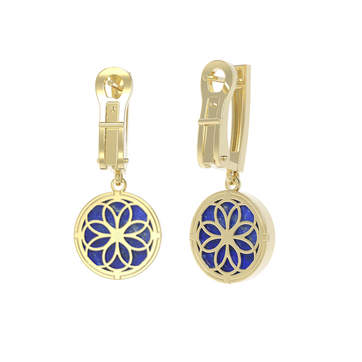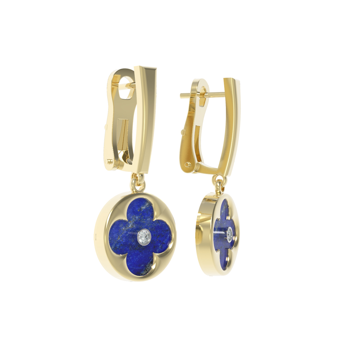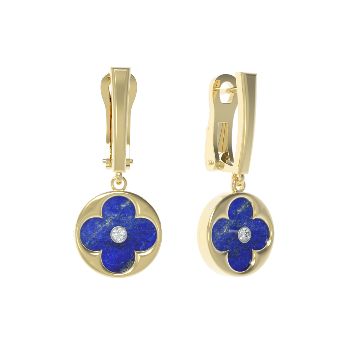 Серьги из лимонного золота c бриллиантами и лазуритом