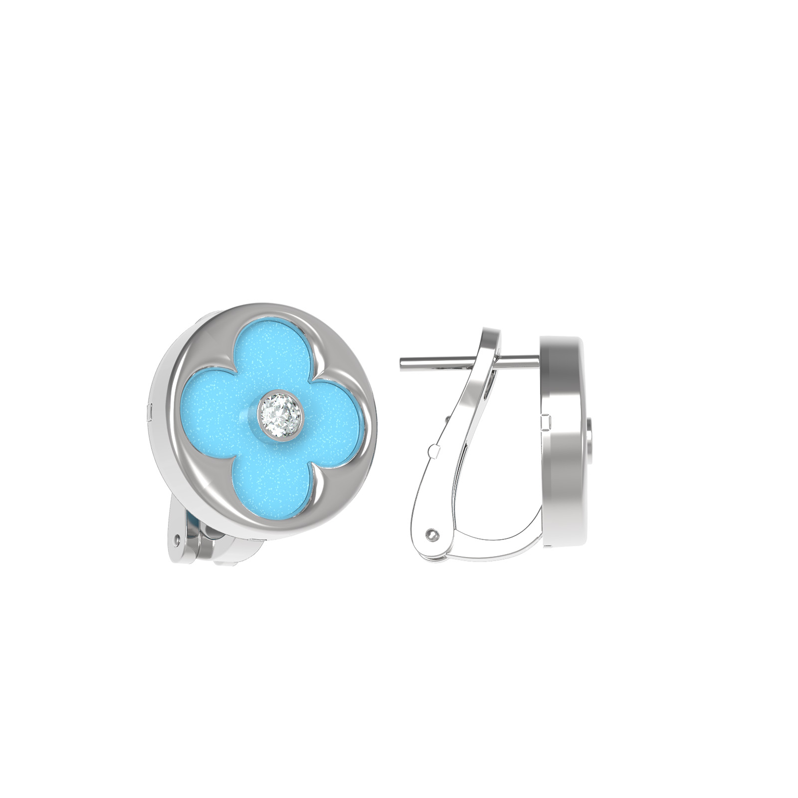 Серьги из белого золота c бриллиантами и бирюзой