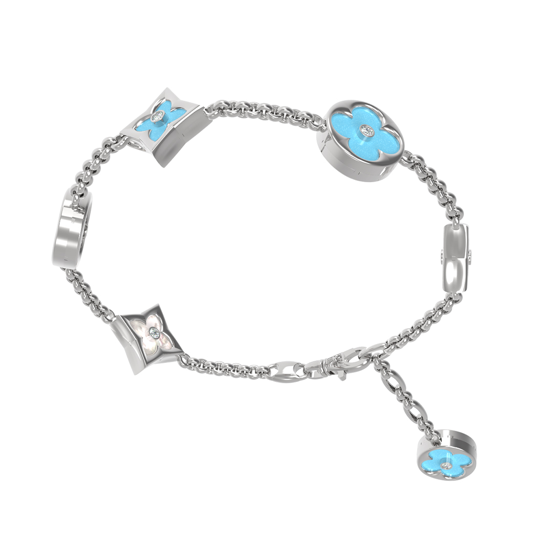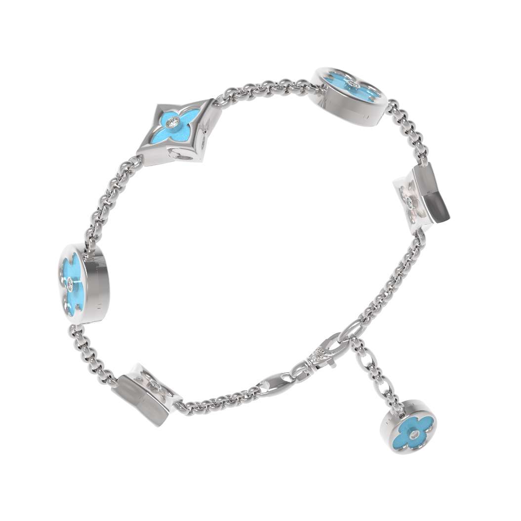 Браслет из белого золота c бриллиантами, бирюзой и перламутром