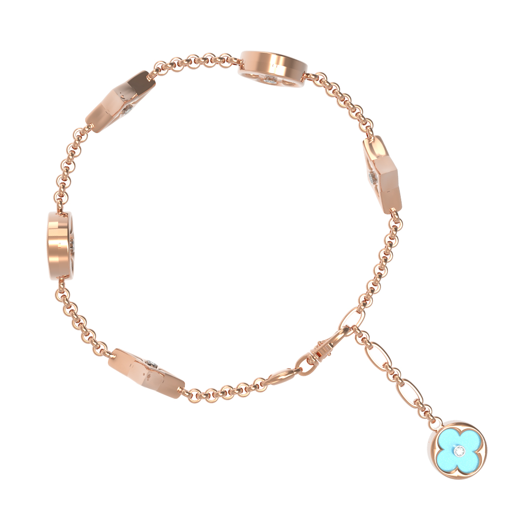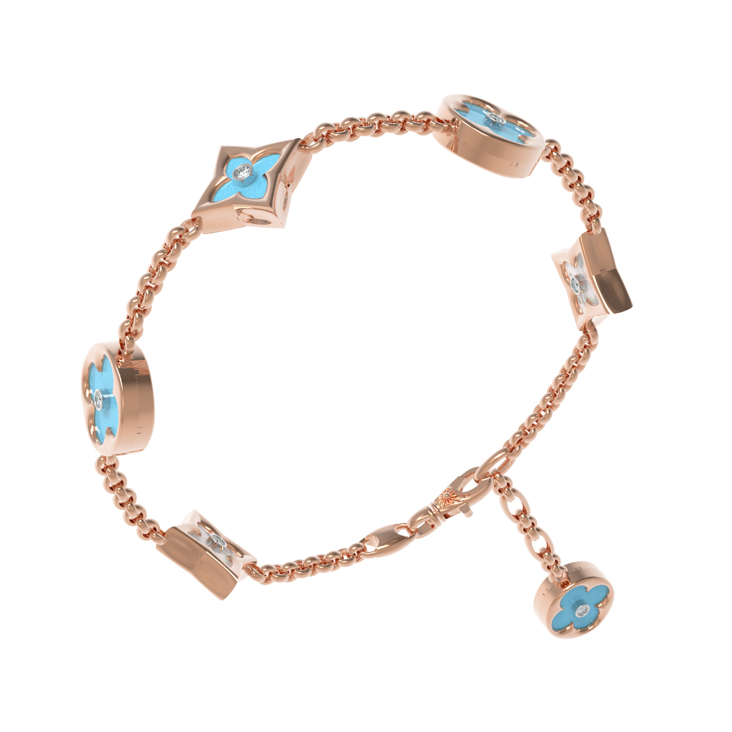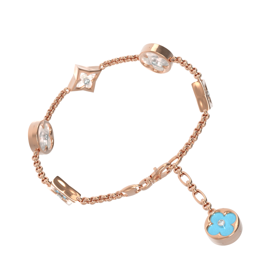 Браслет из золота c бриллиантами, бирюзой и перламутром