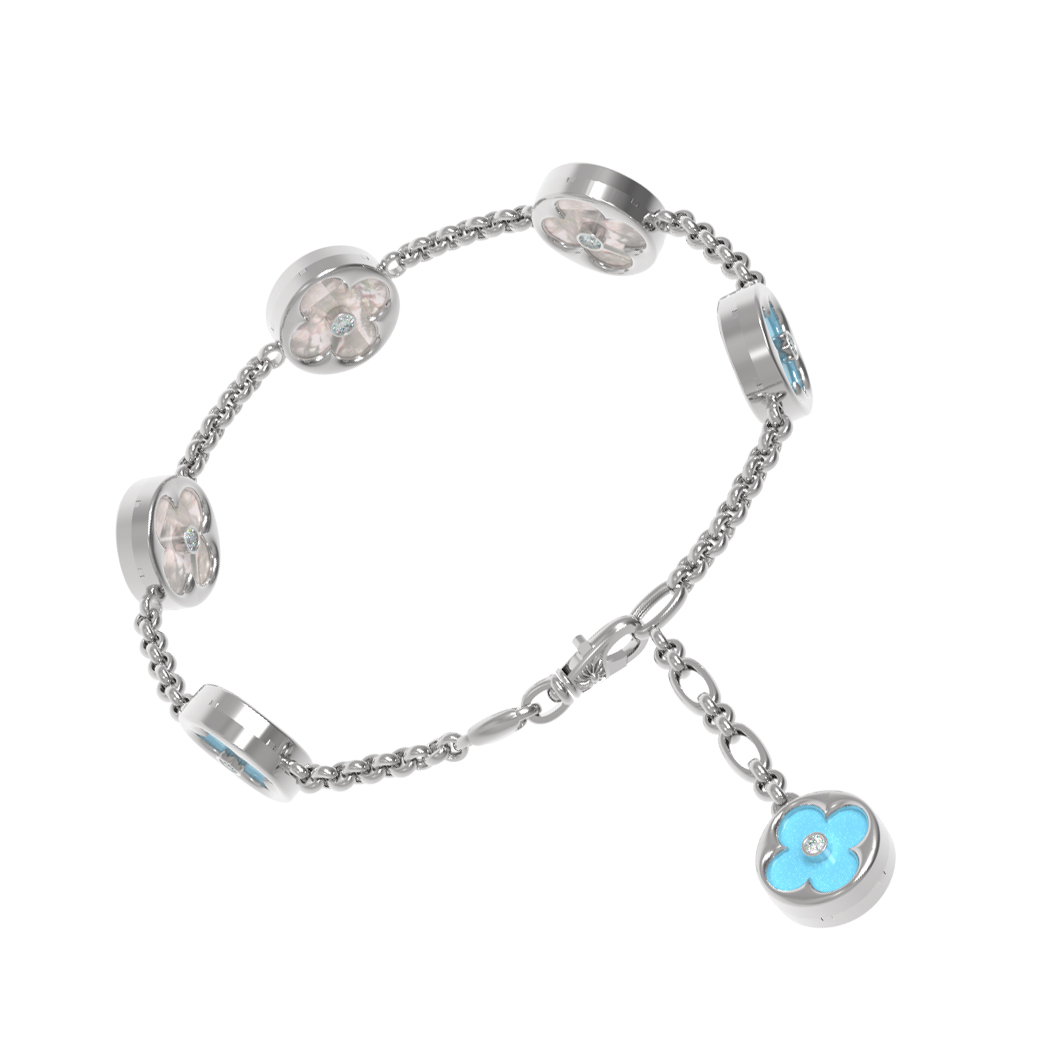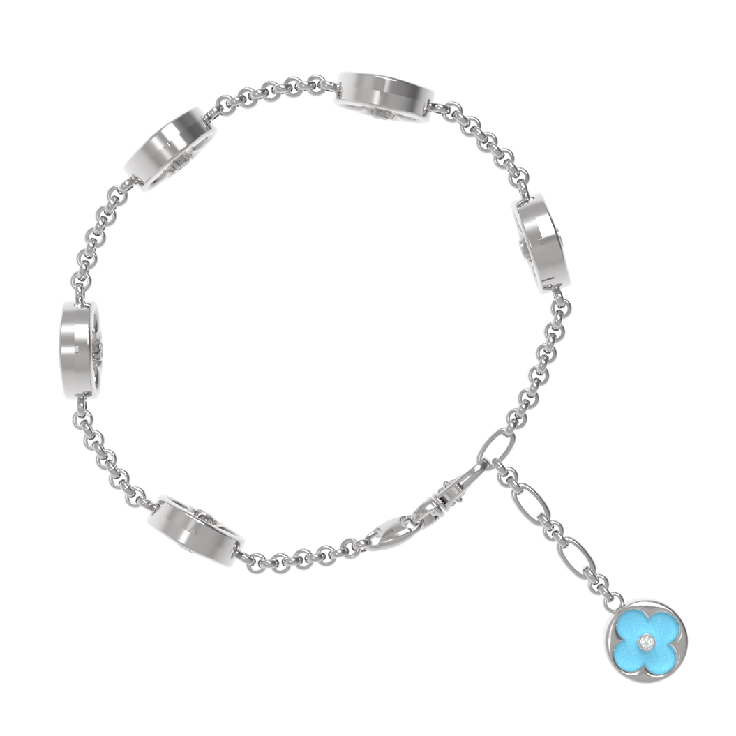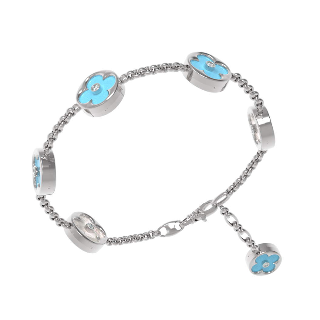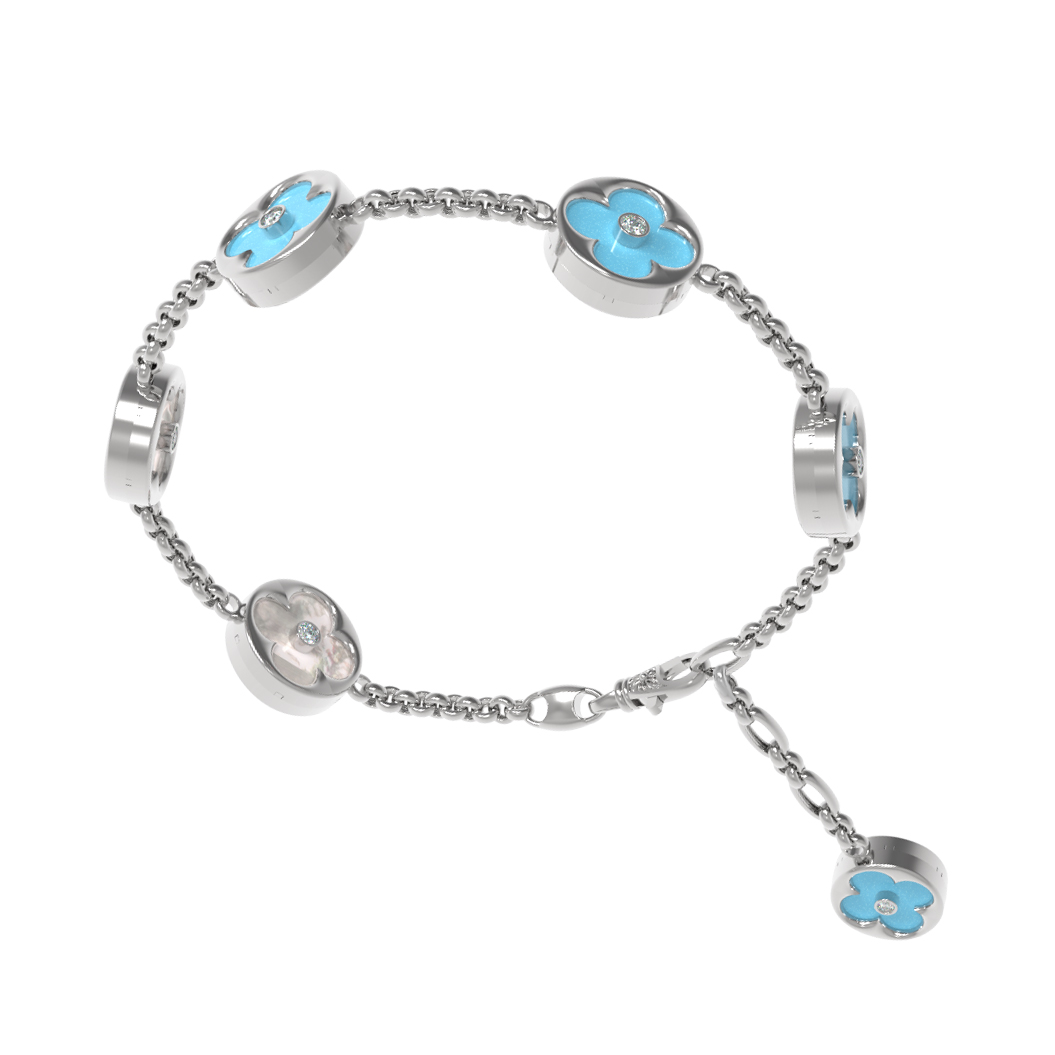 Браслет из белого золота c бриллиантами, бирюзой и перламутром