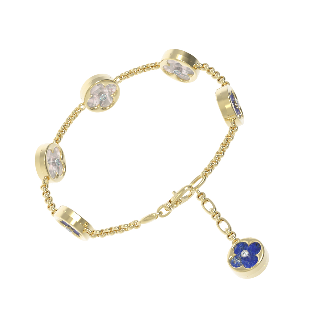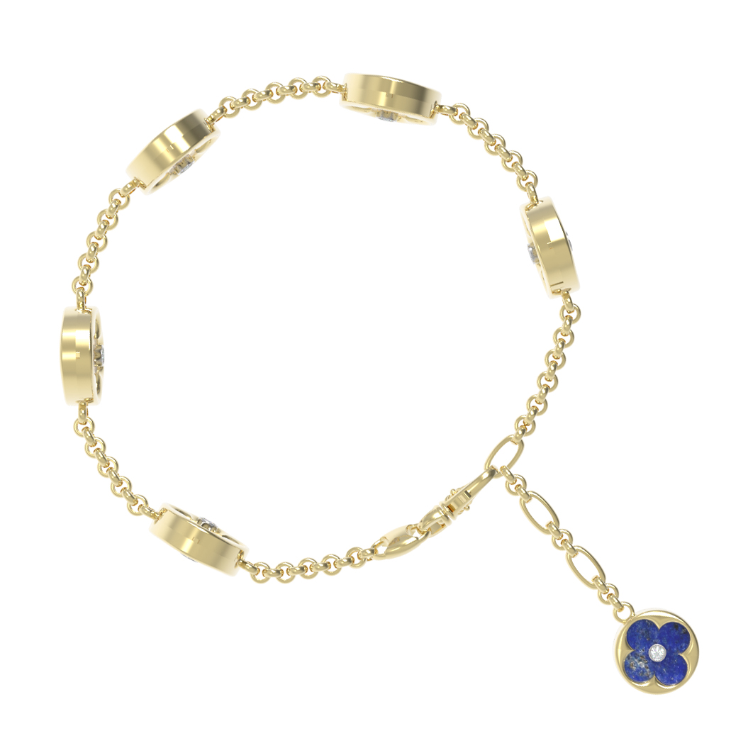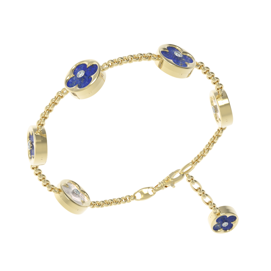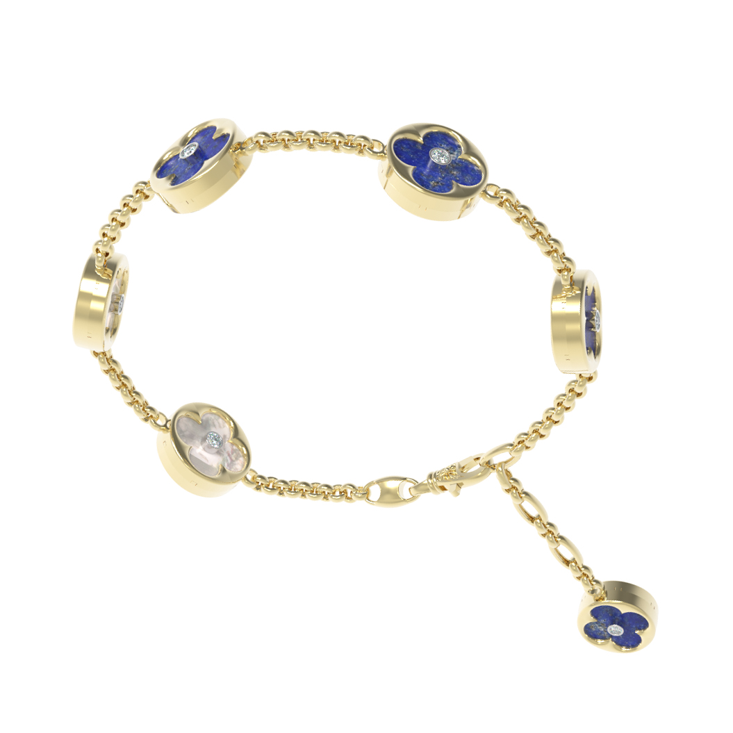 Браслет из лимонного золота c бриллиантами, лазуритом и перламутром