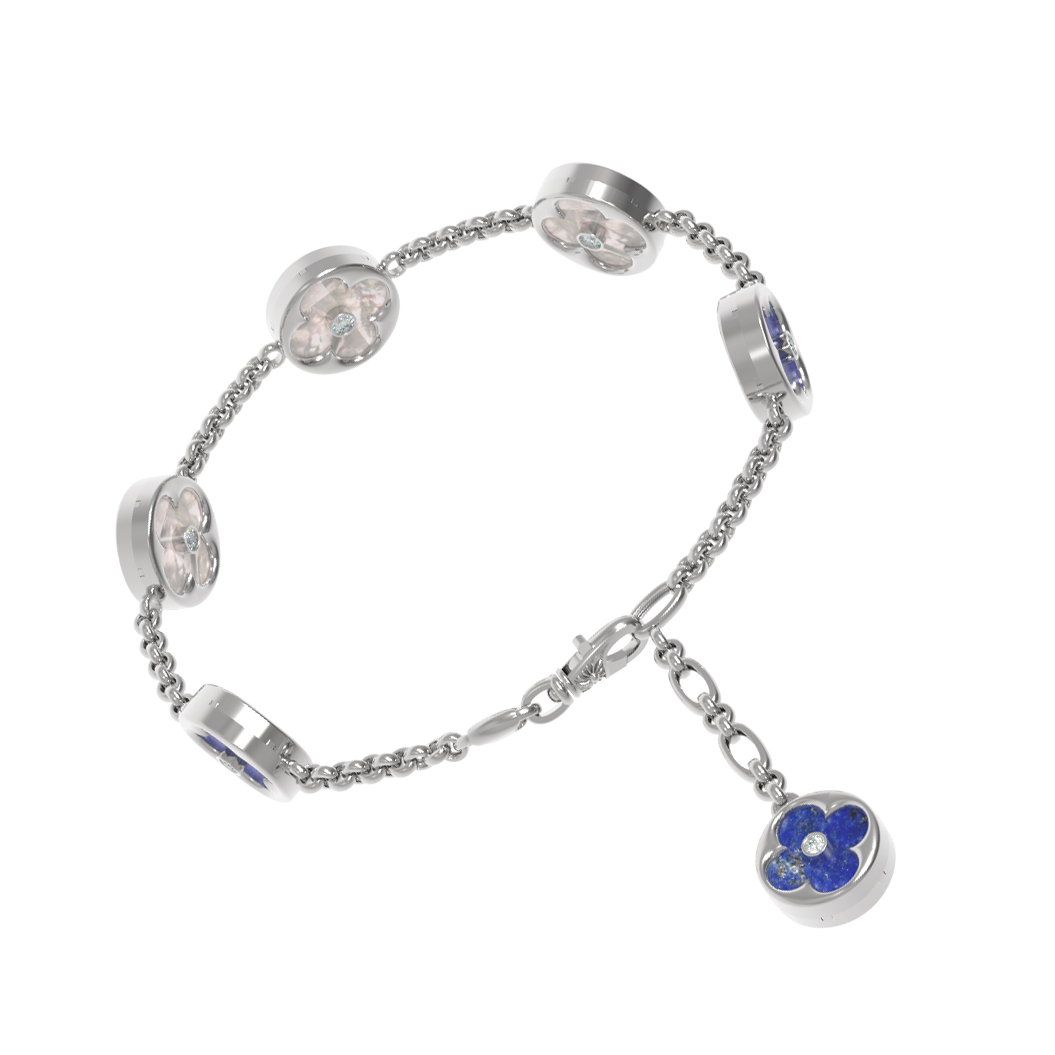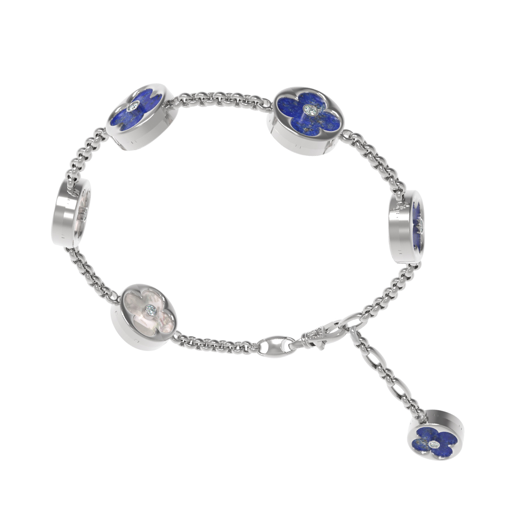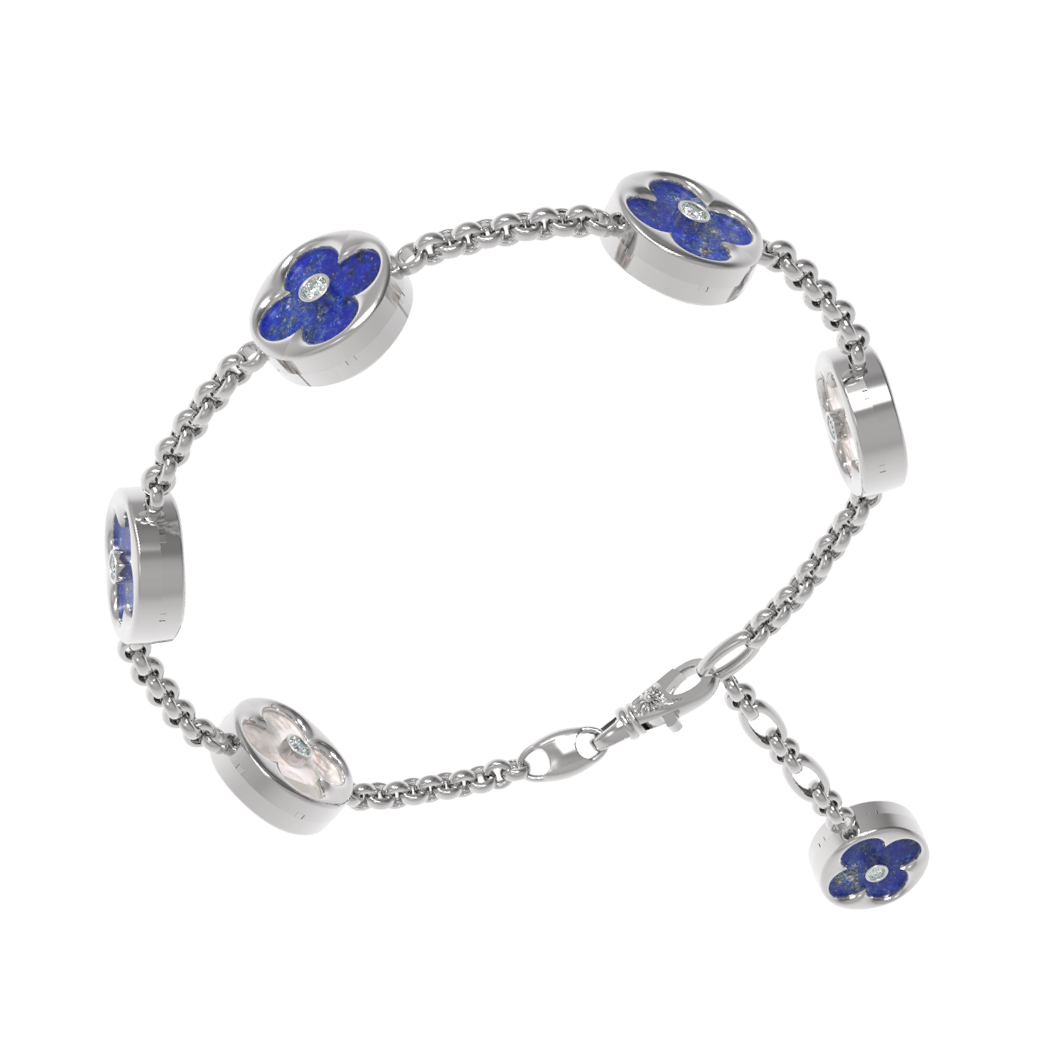 Браслет из белого золота c бриллиантами, лазуритом и перламутром