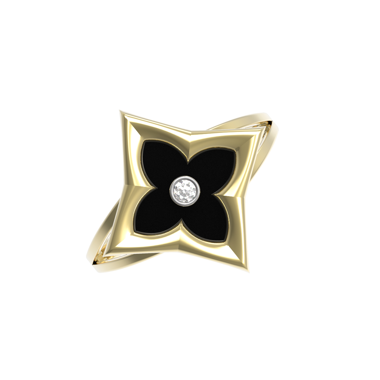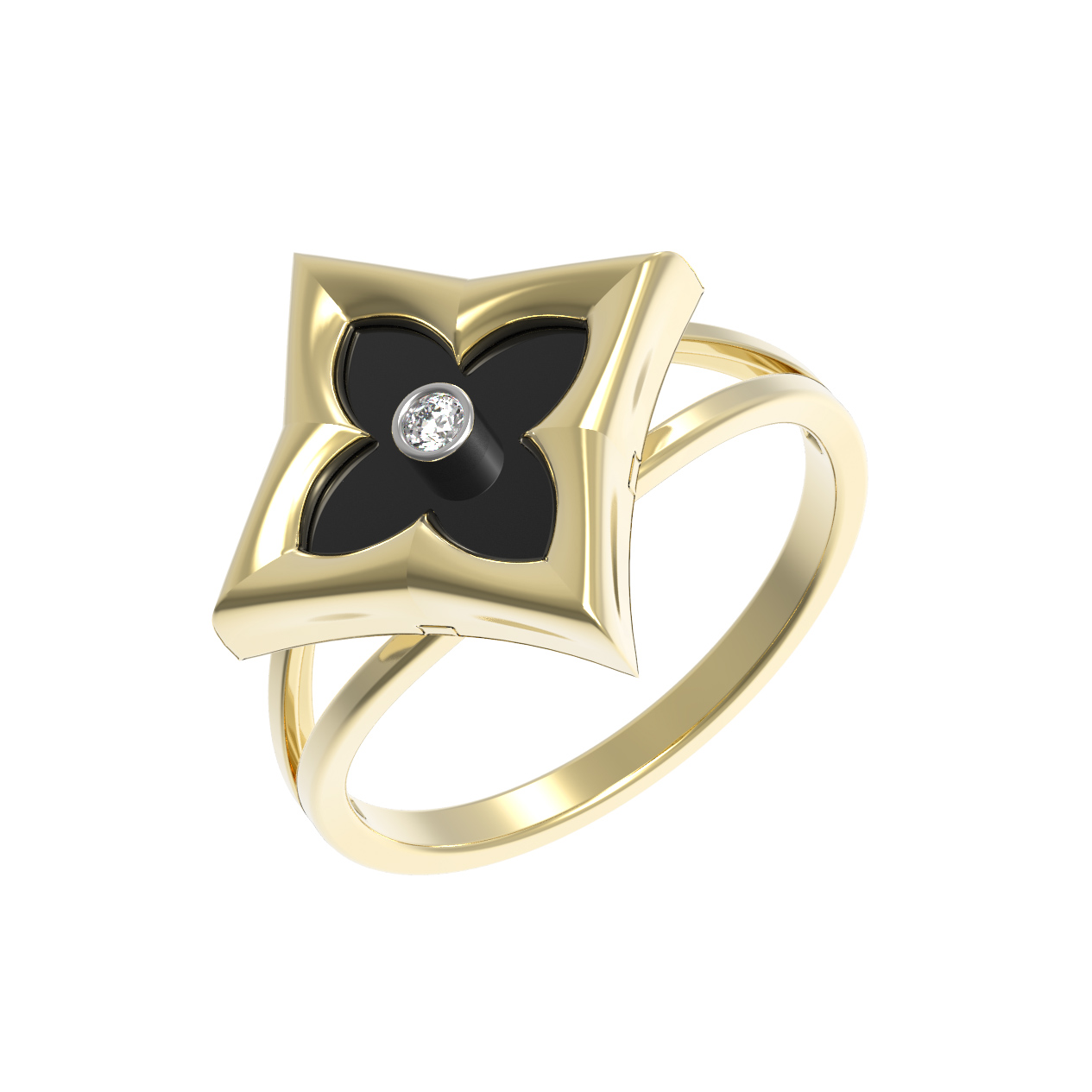 Кольцо из лимонного золота c бриллиантами и ониксом