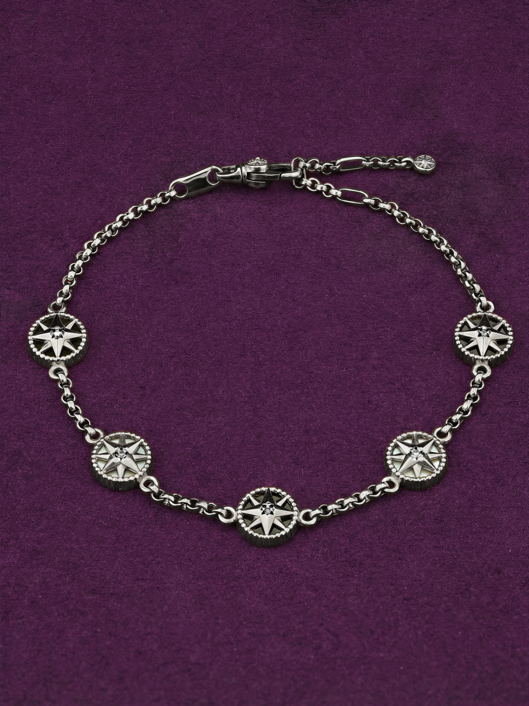Браслет из белого золота c бриллиантами, ониксом и перламутром