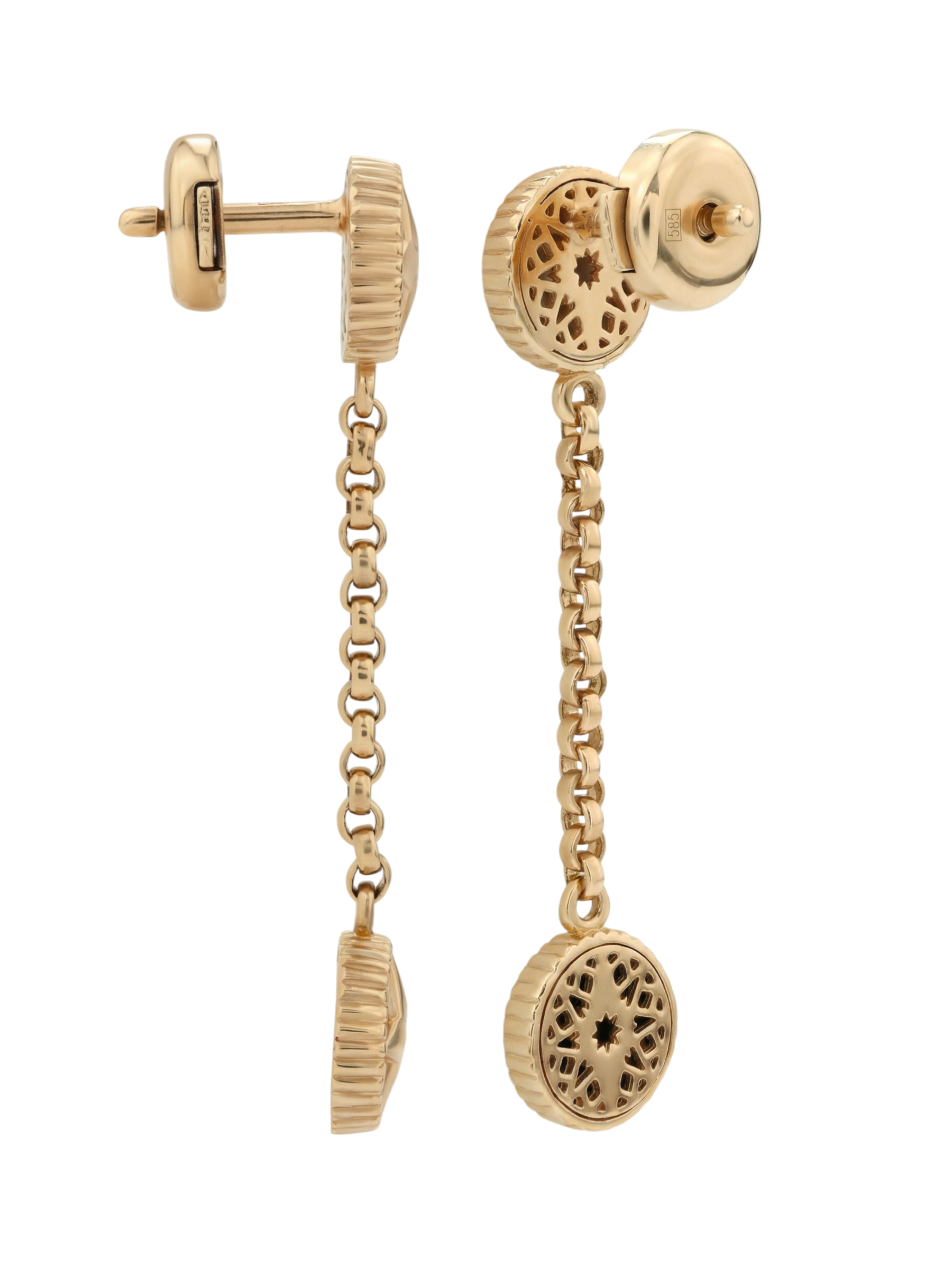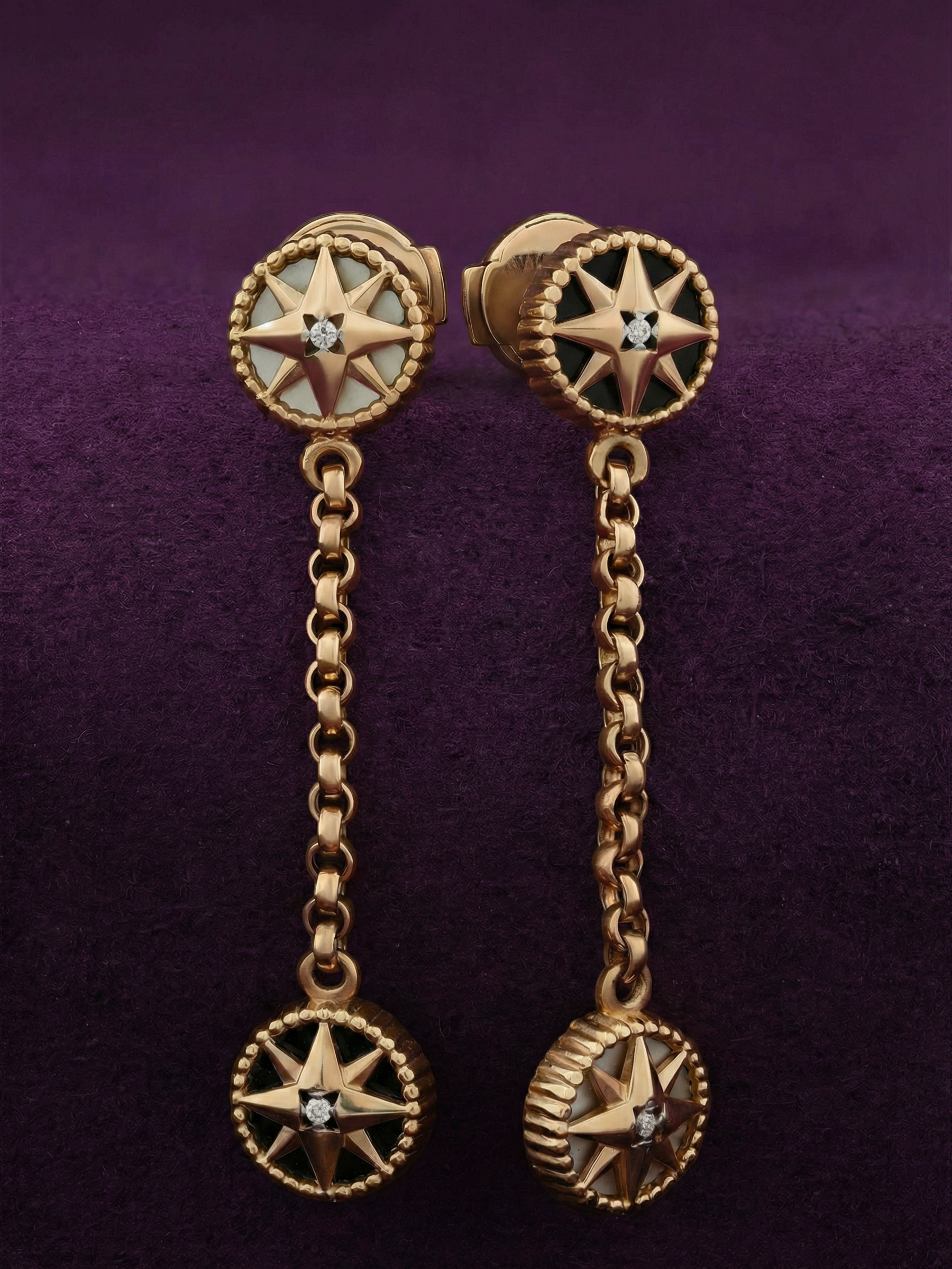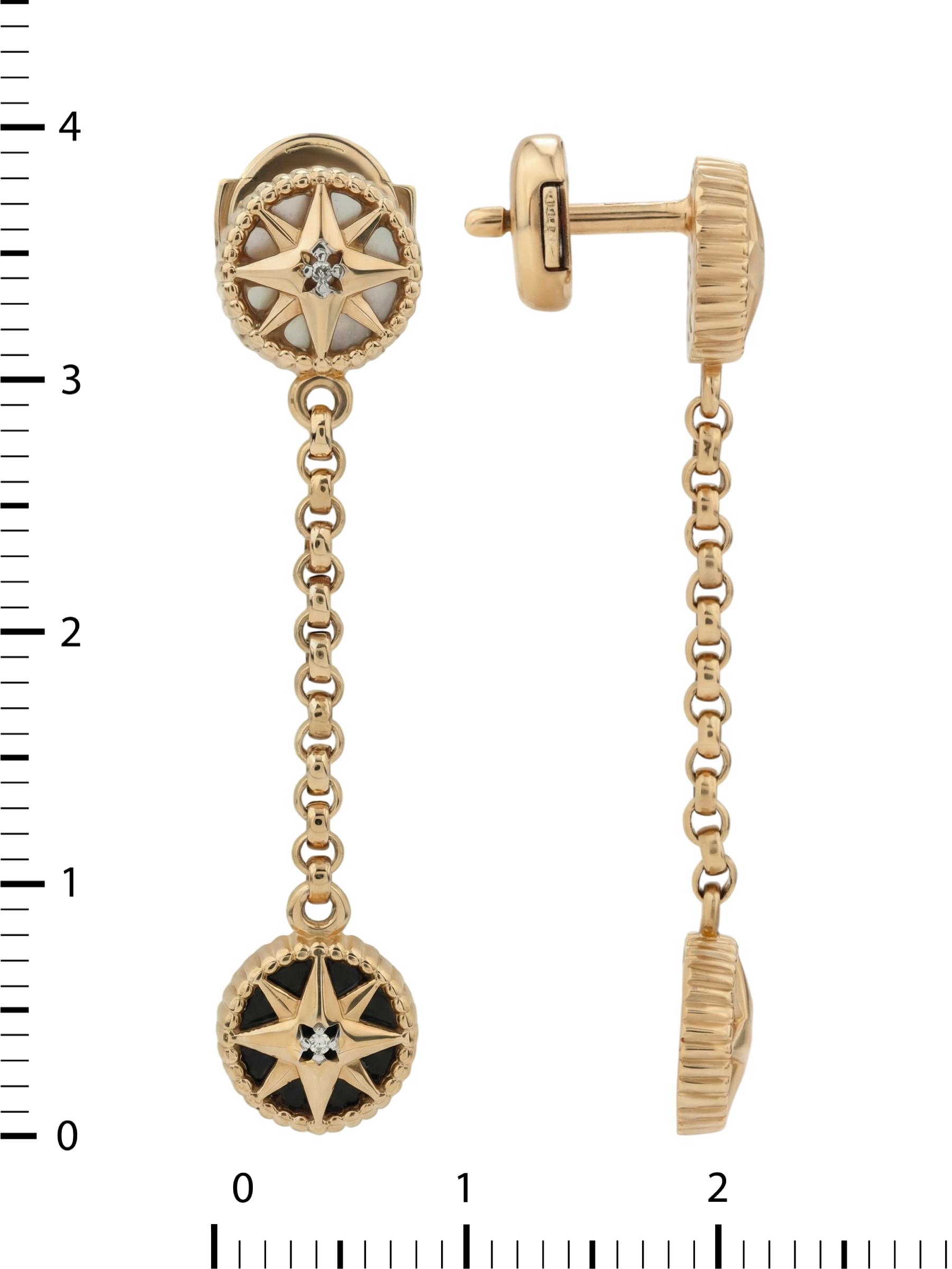 Серьги из золота c бриллиантами, ониксом и перламутром