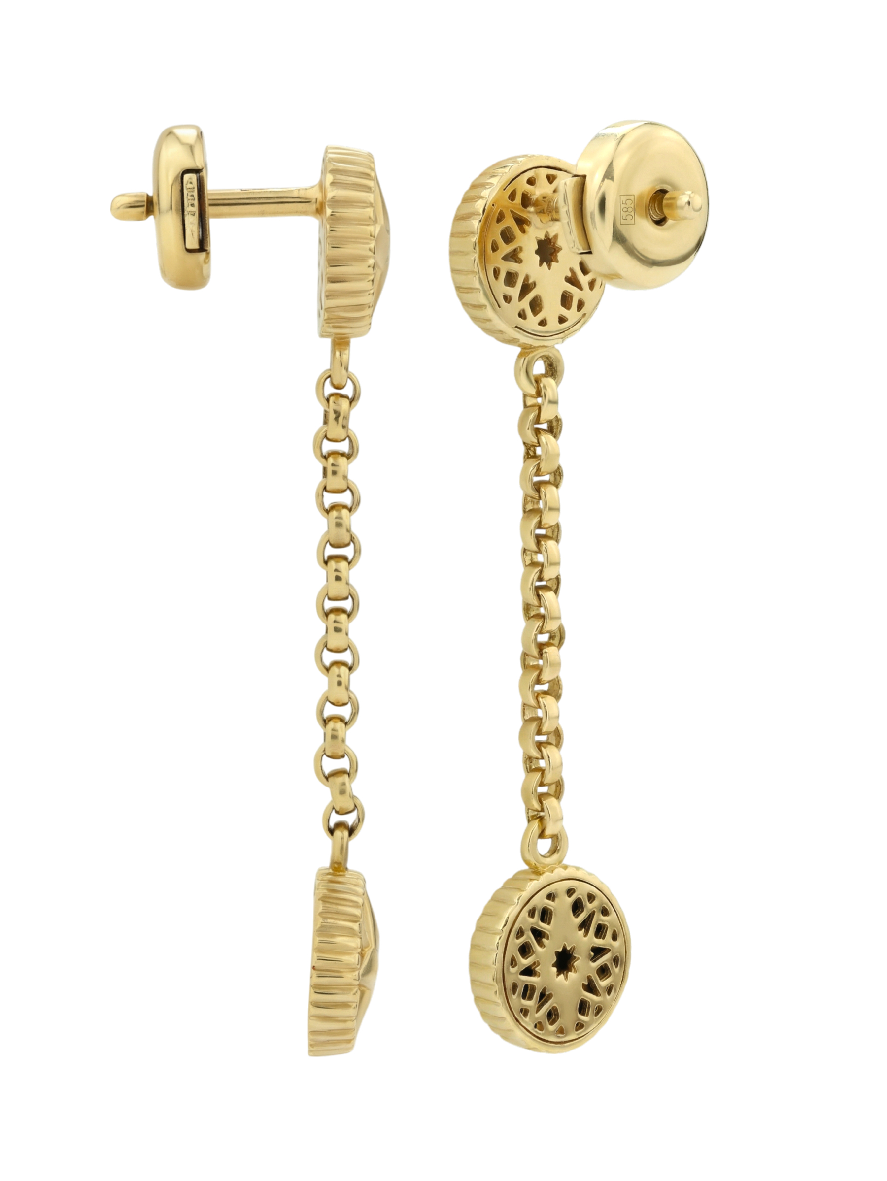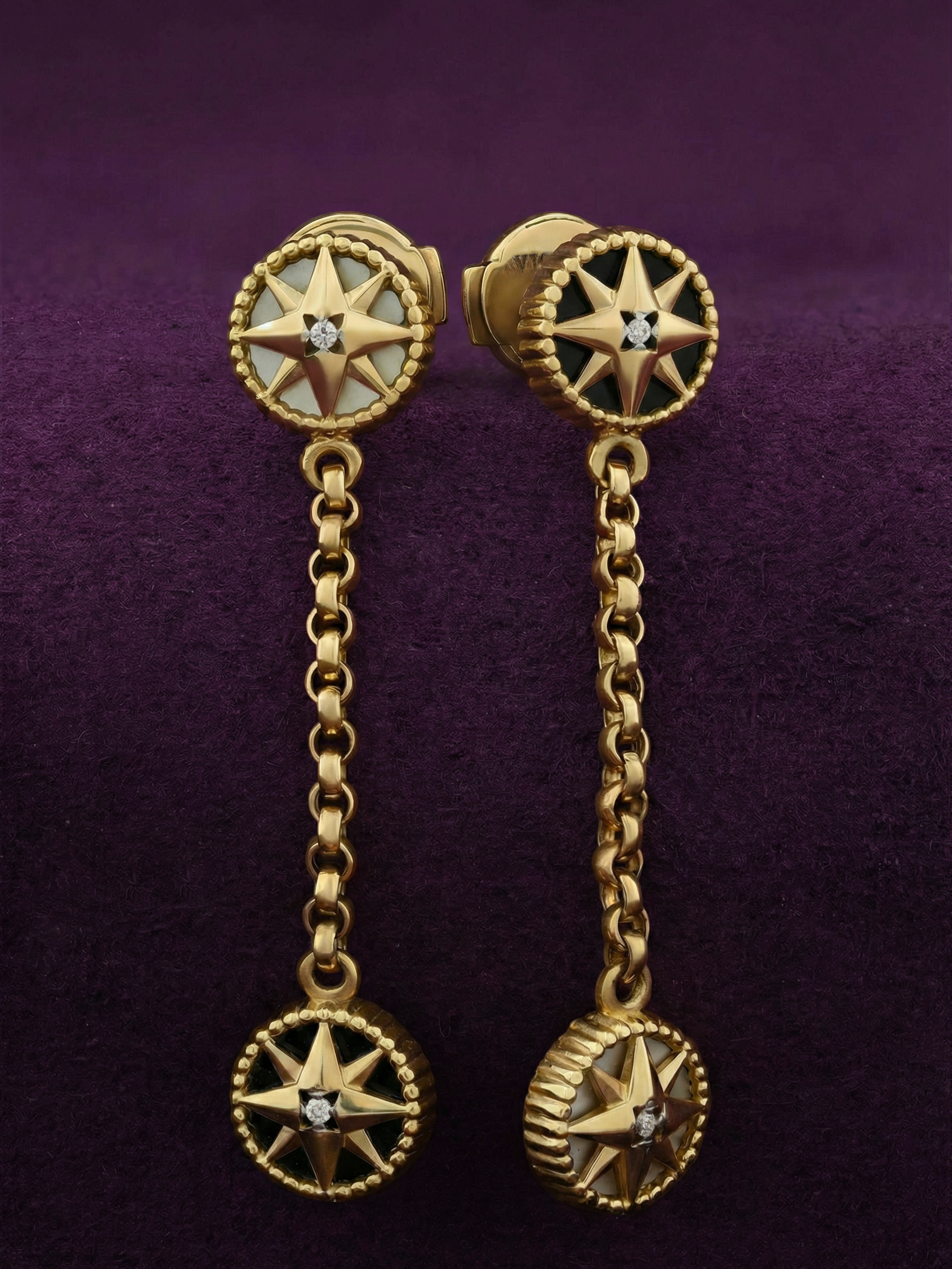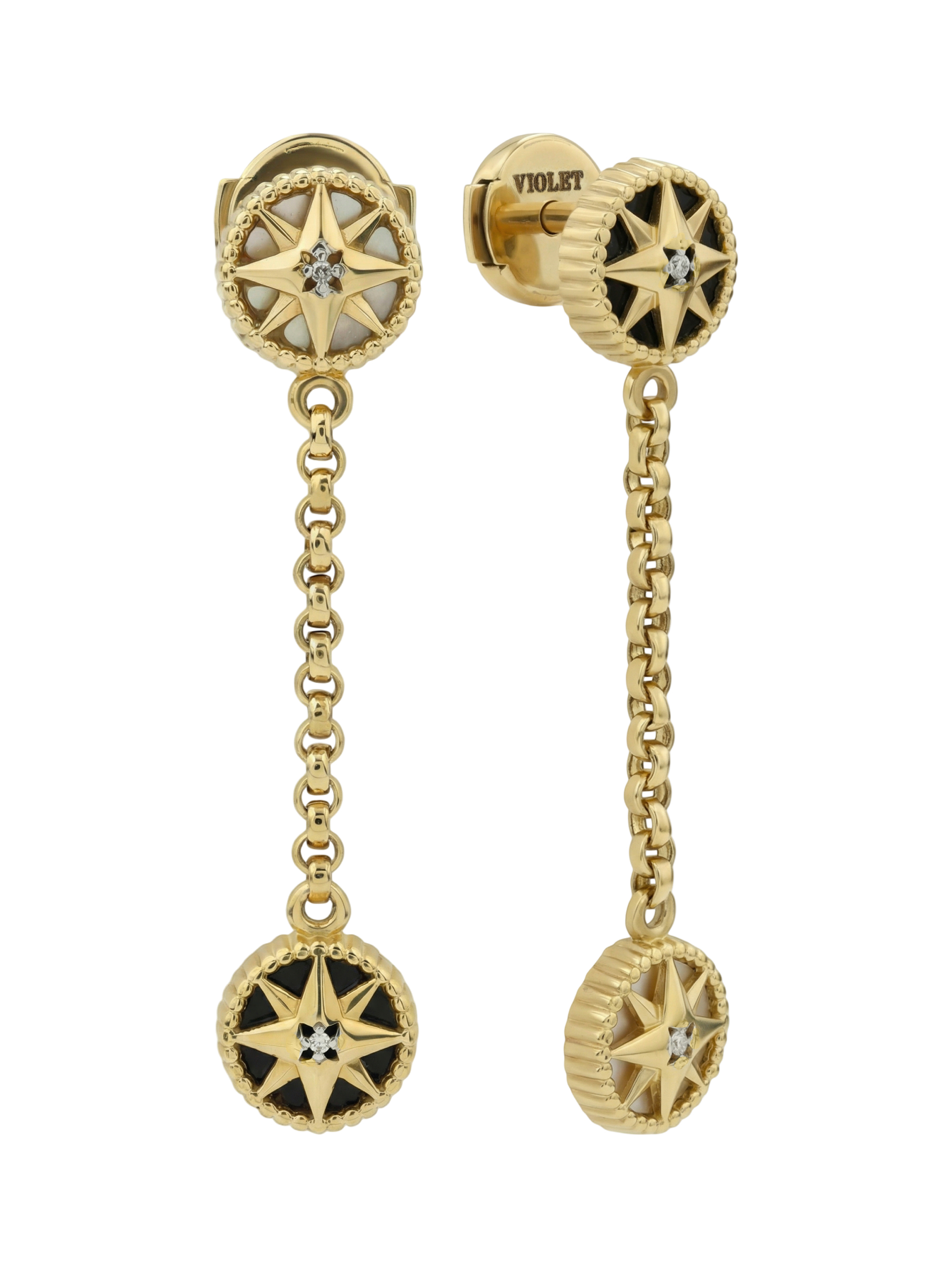 Серьги из лимонного золота c бриллиантами, ониксом и перламутром