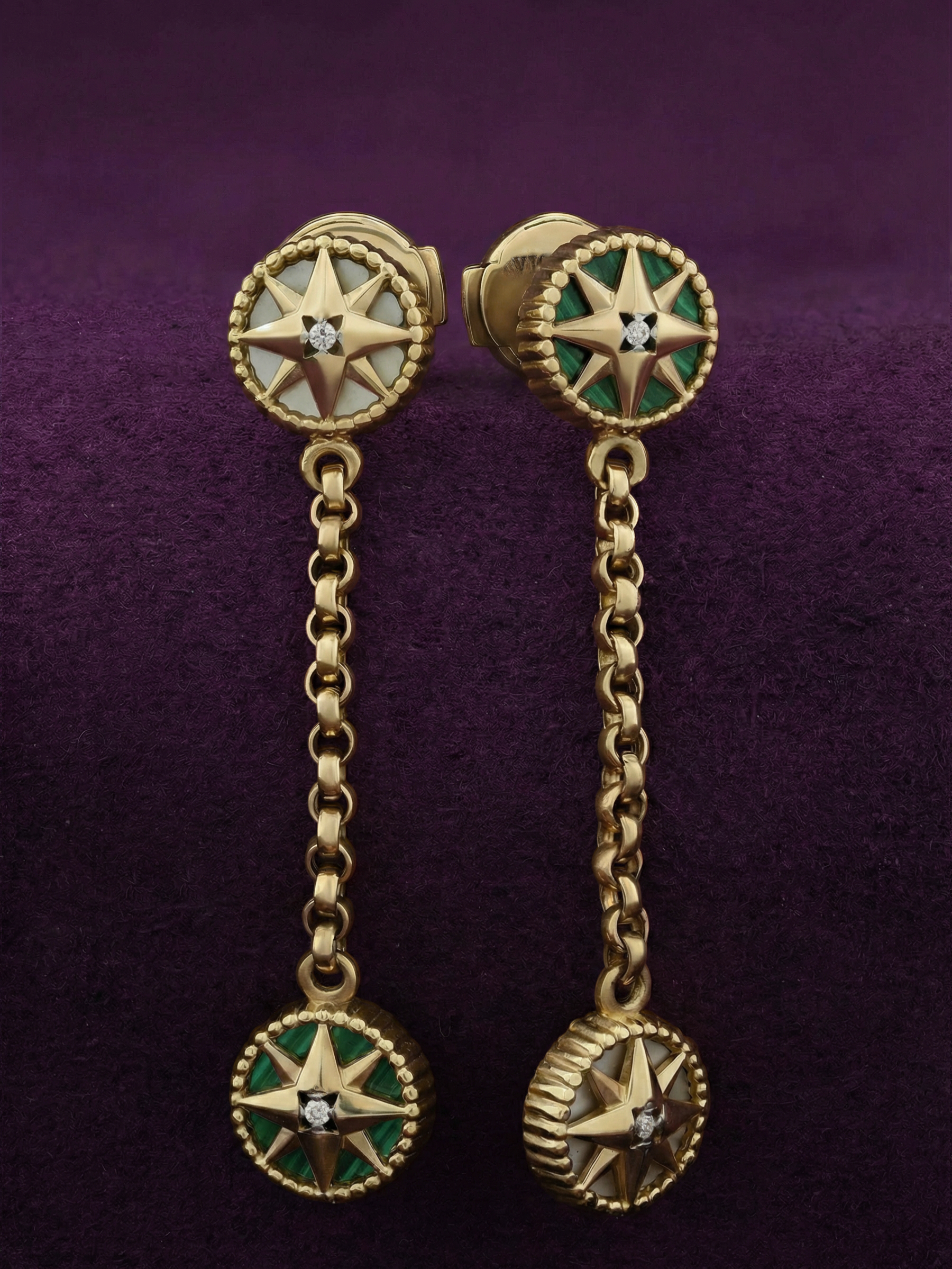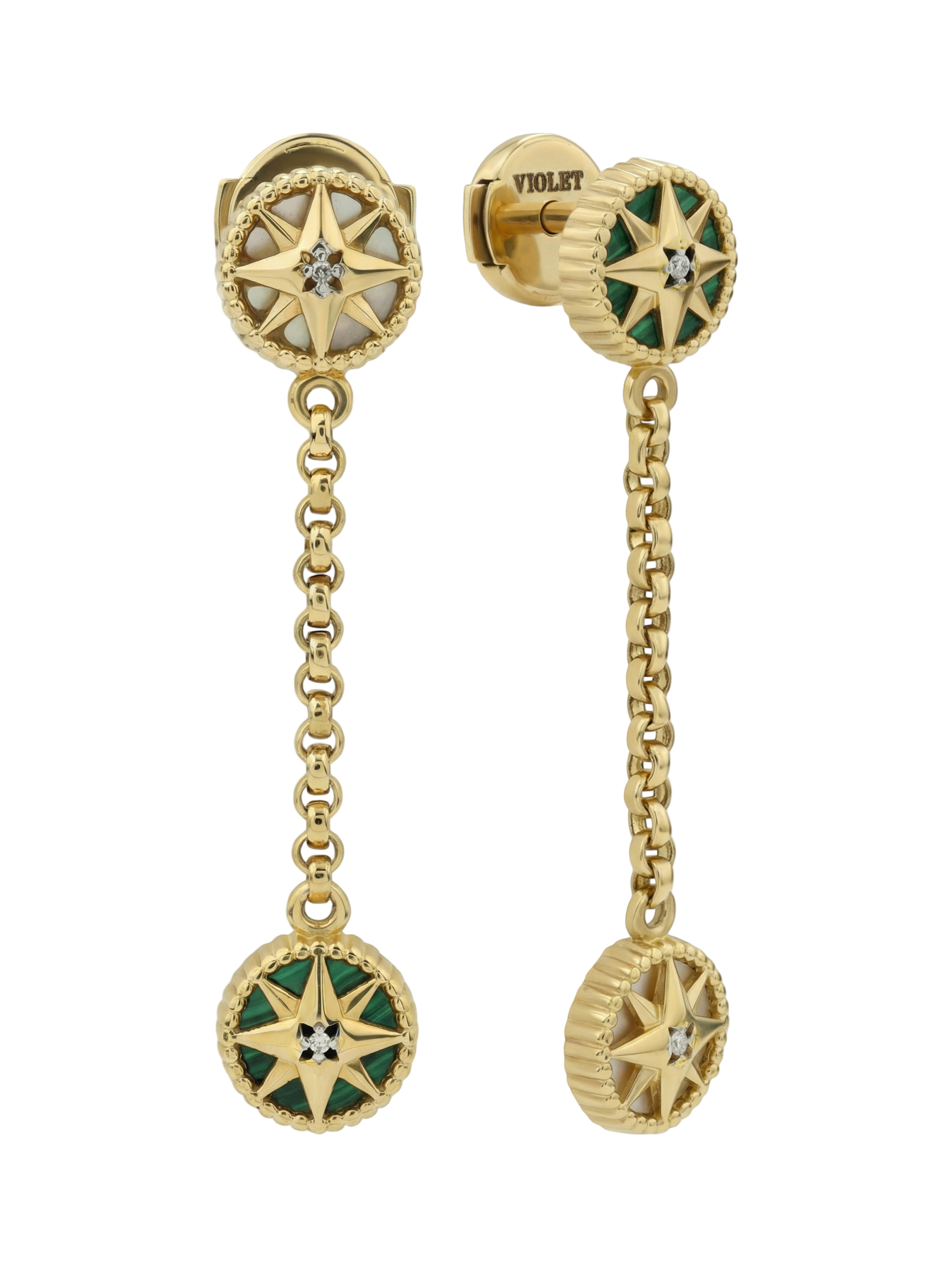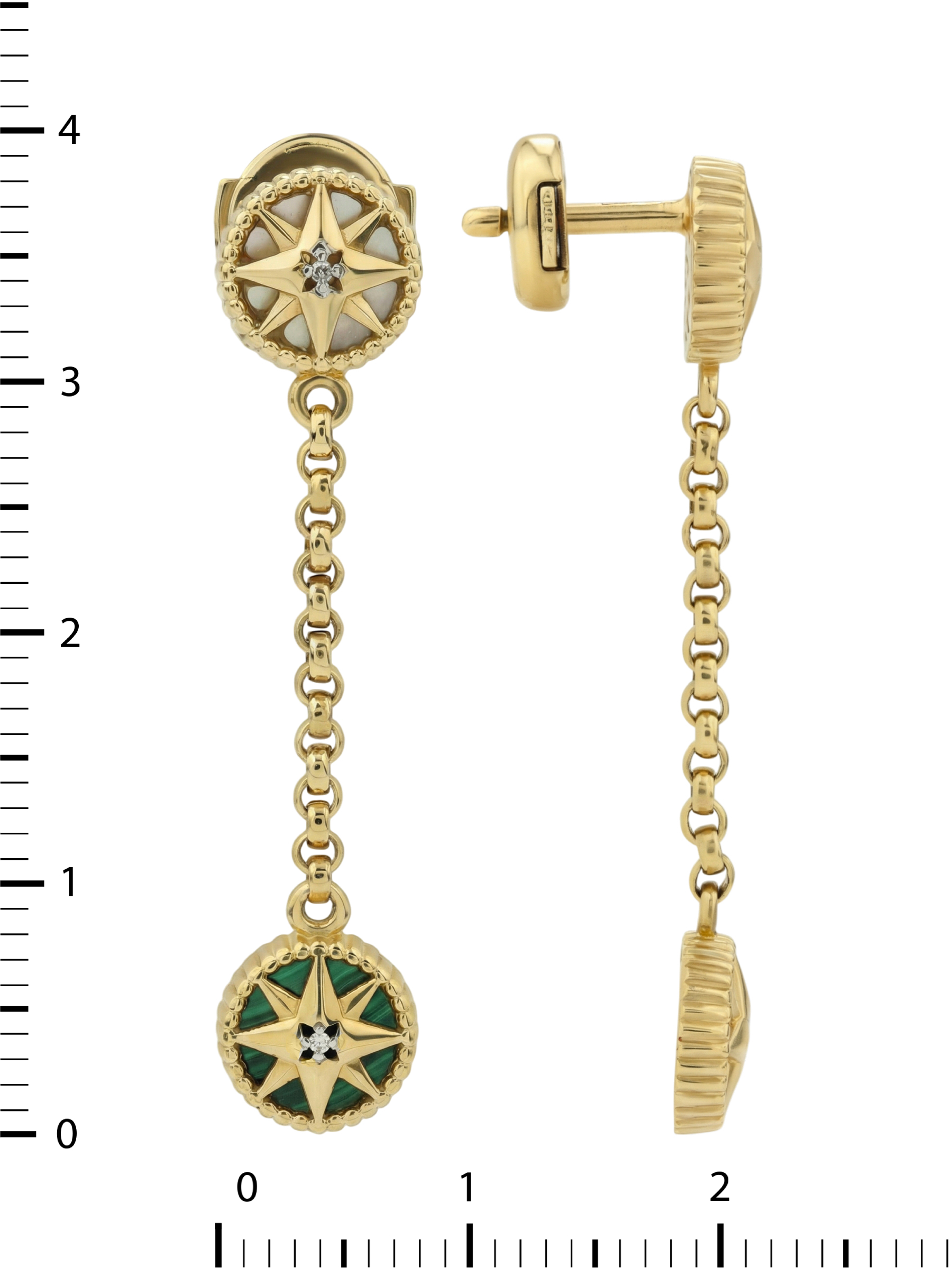 Серьги из лимонного золота c бриллиантами, малахитом и перламутром