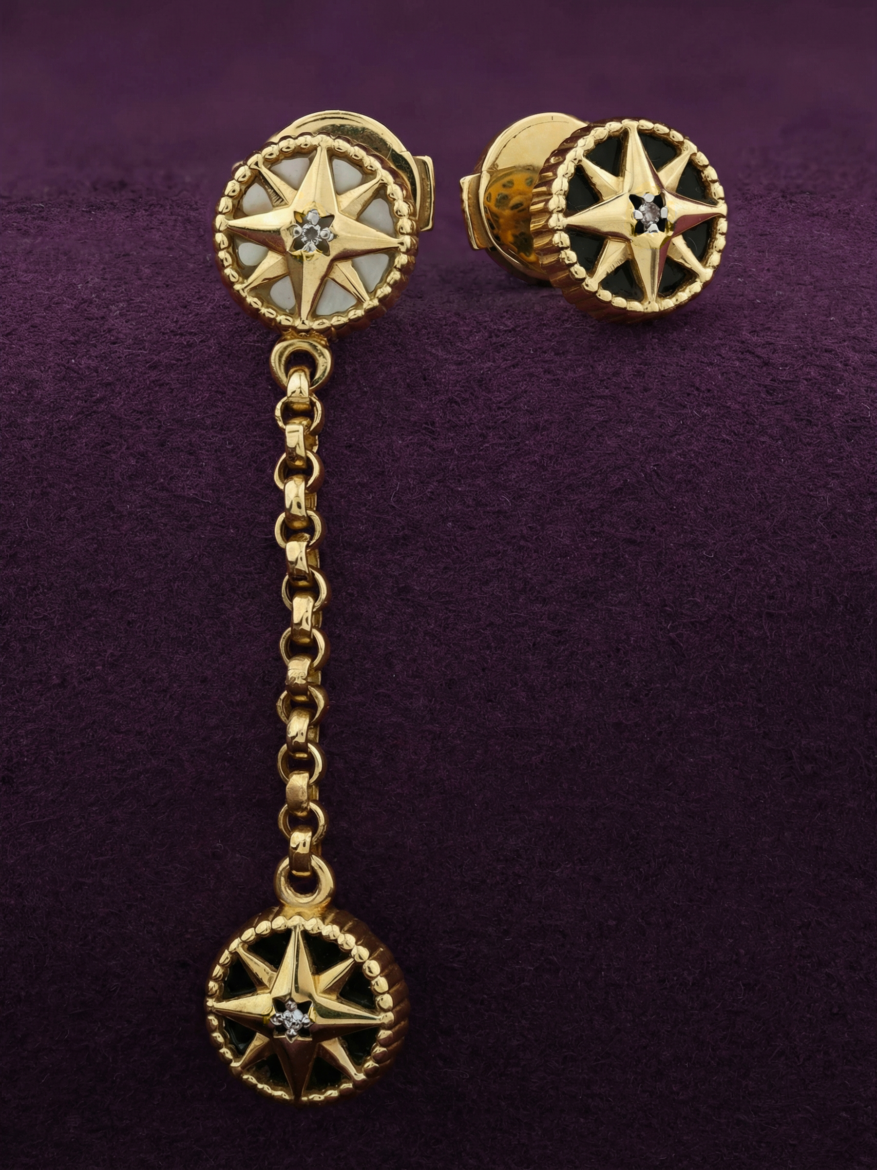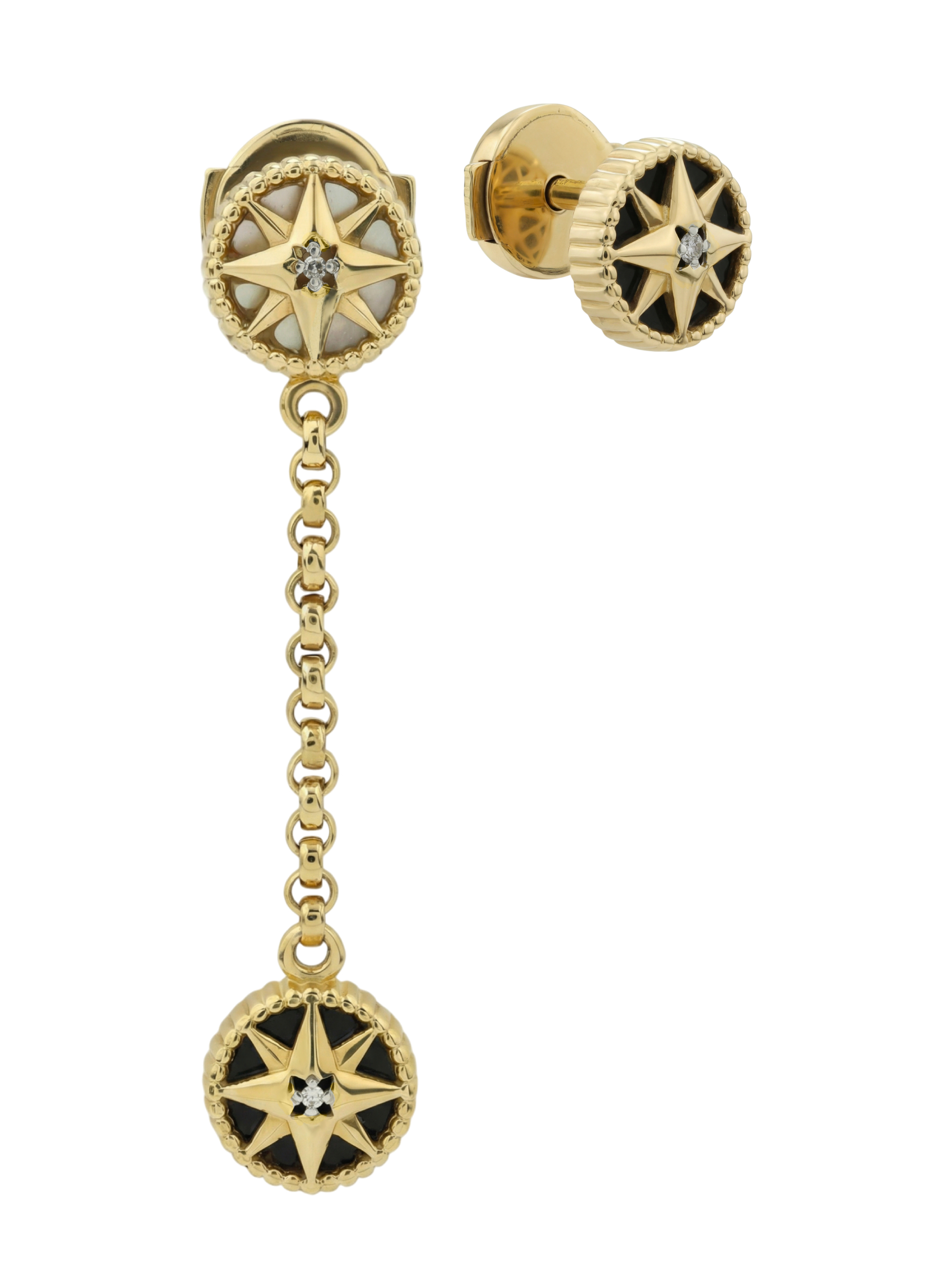 Серьги из лимонного золота c бриллиантами, ониксом и перламутром