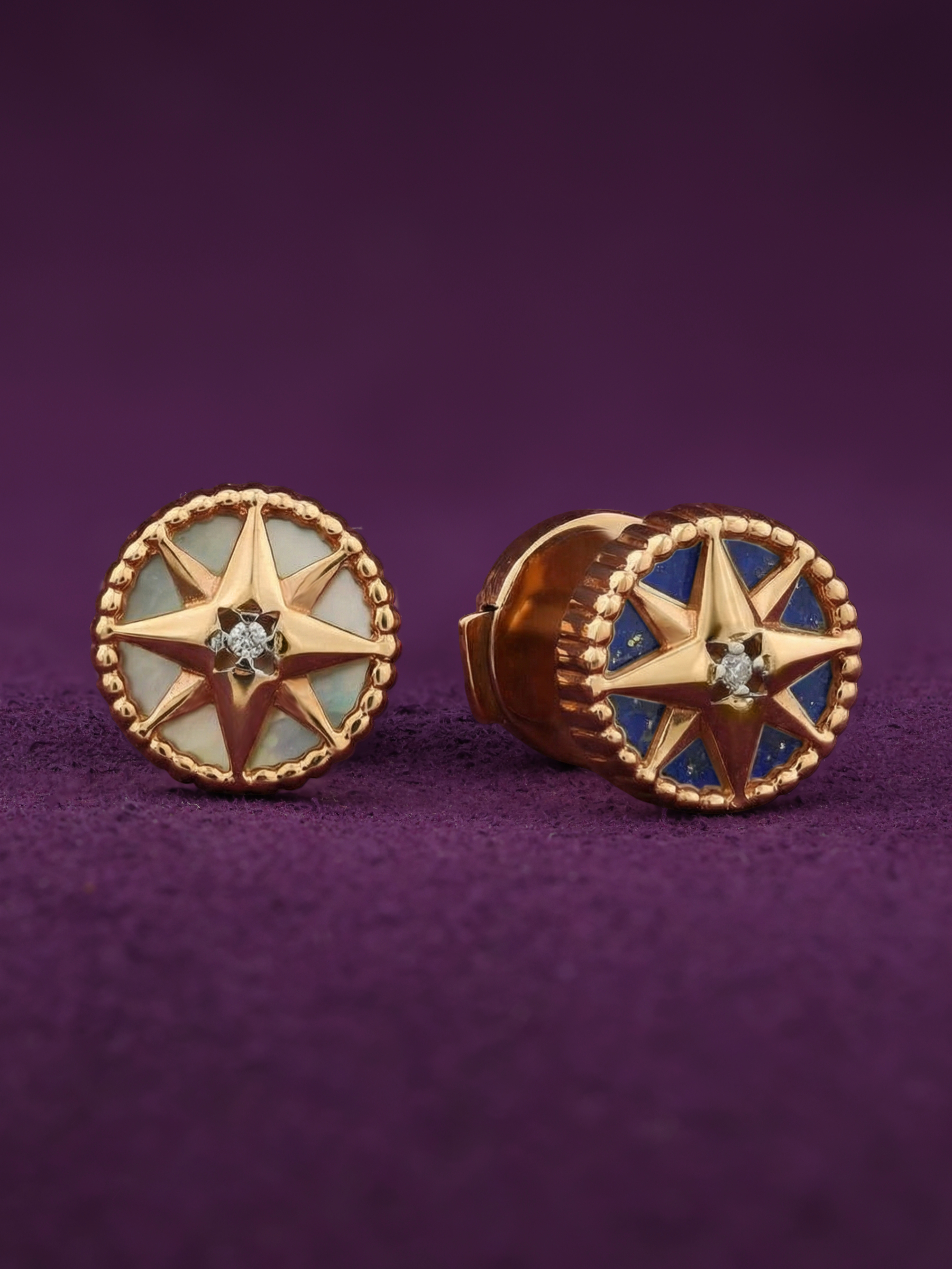 Серьги из золота c бриллиантами, лазуритом и перламутром