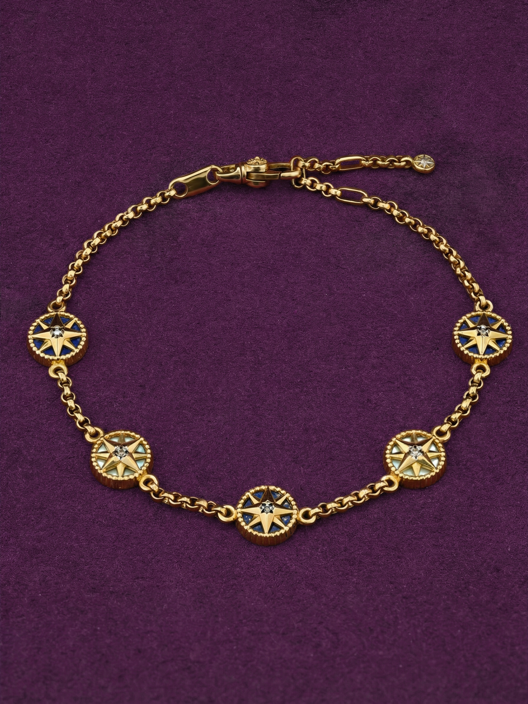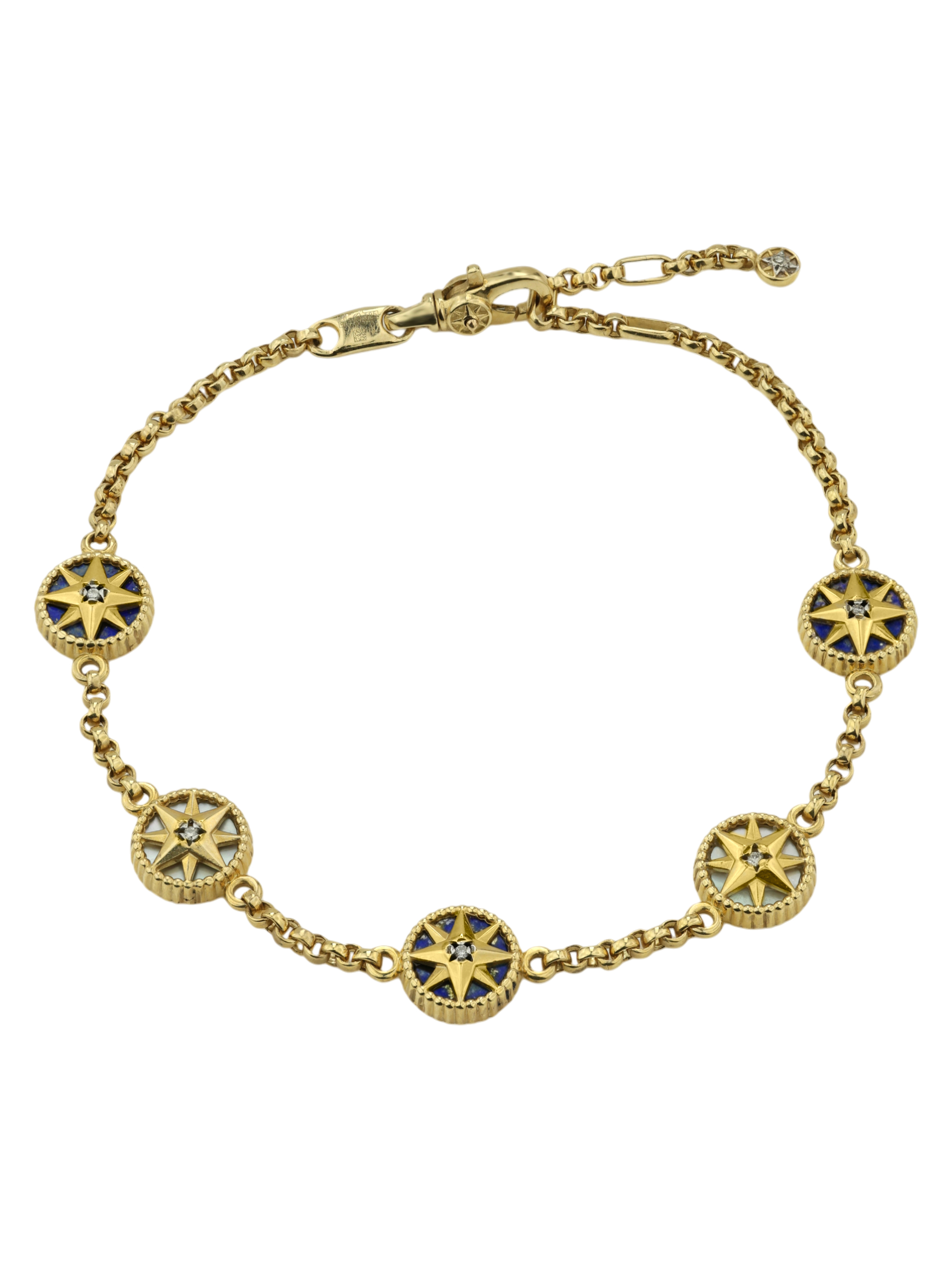 Браслет из лимонного золота c бриллиантами, лазуритом и перламутром