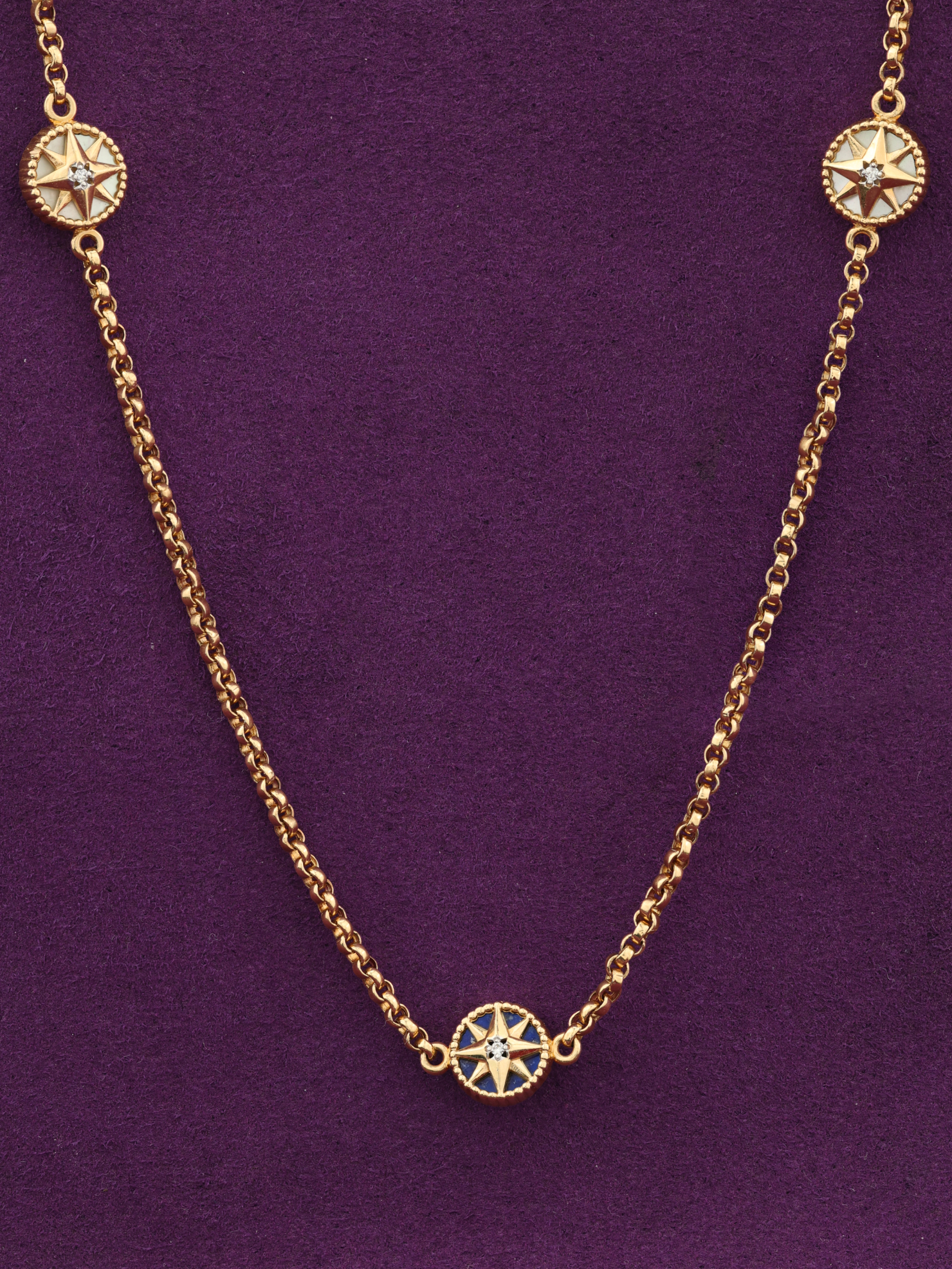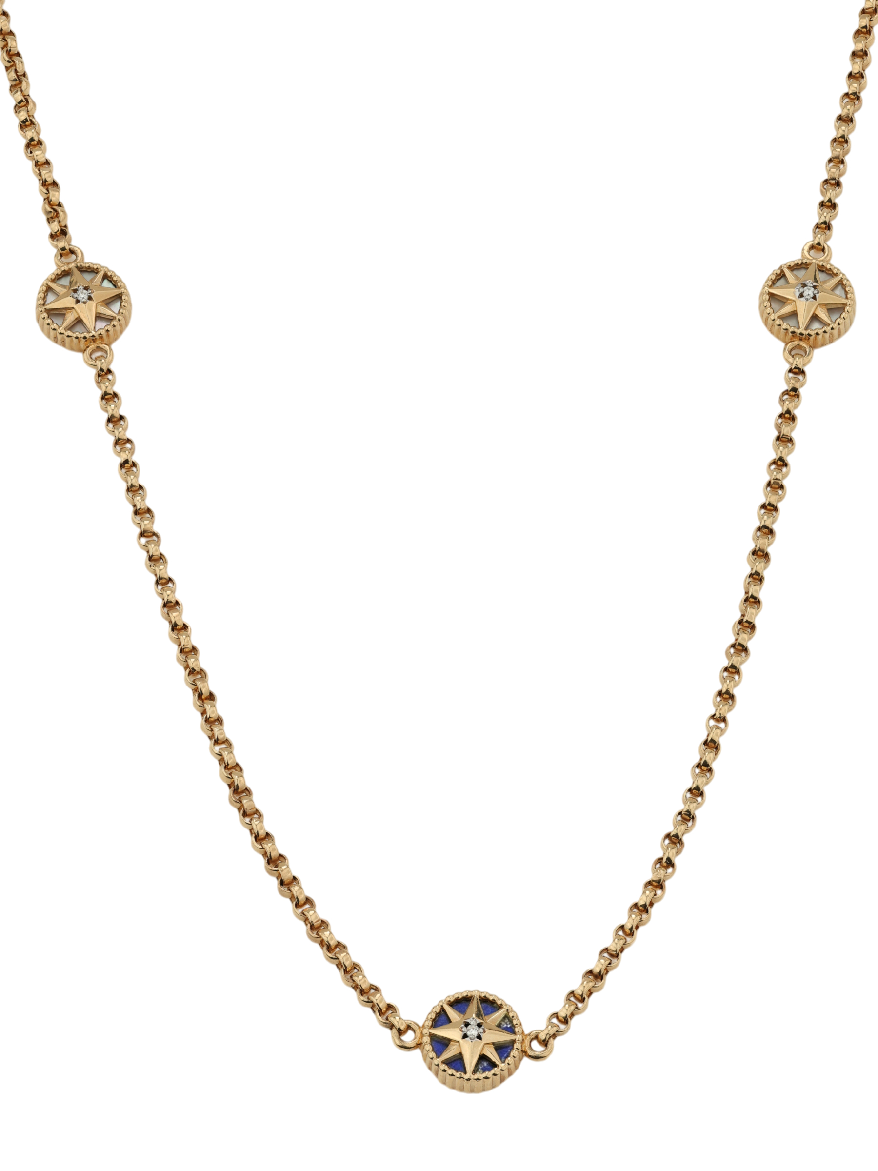 Колье из золота c бриллиантами, лазуритом и перламутром