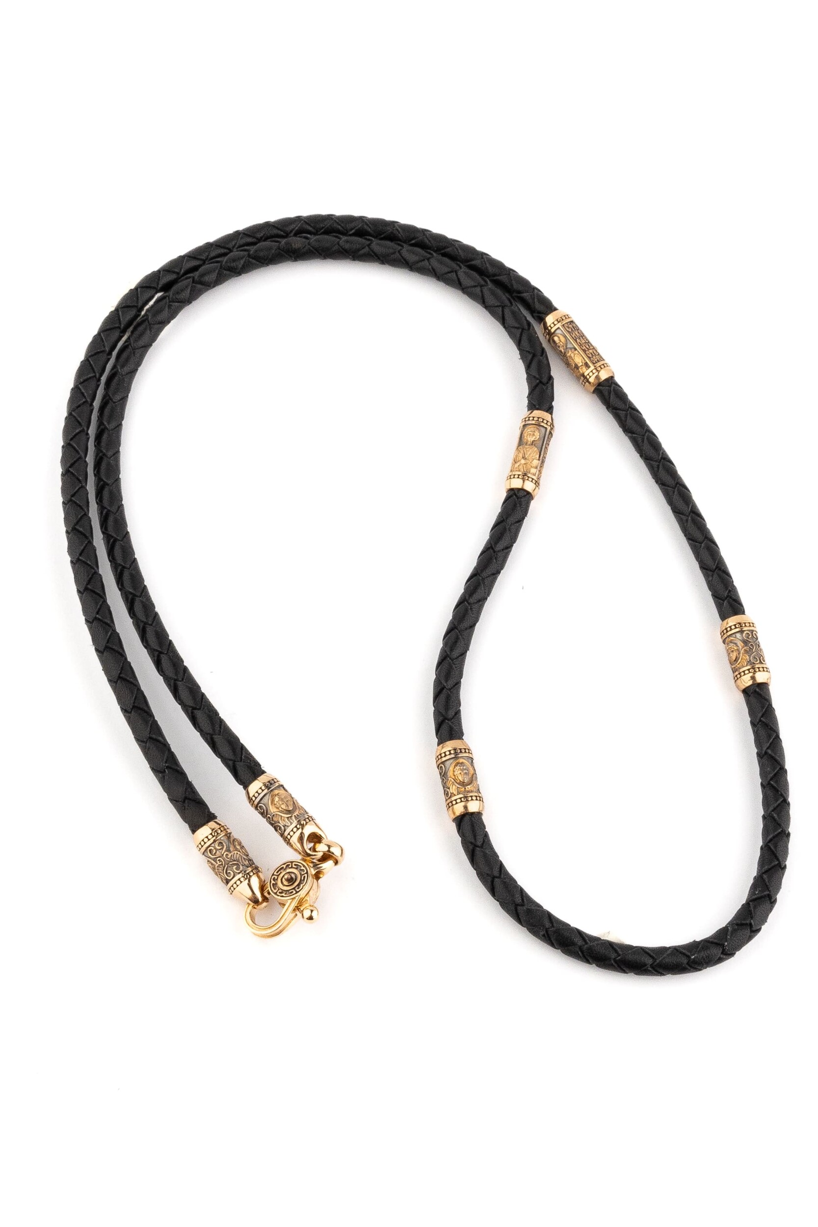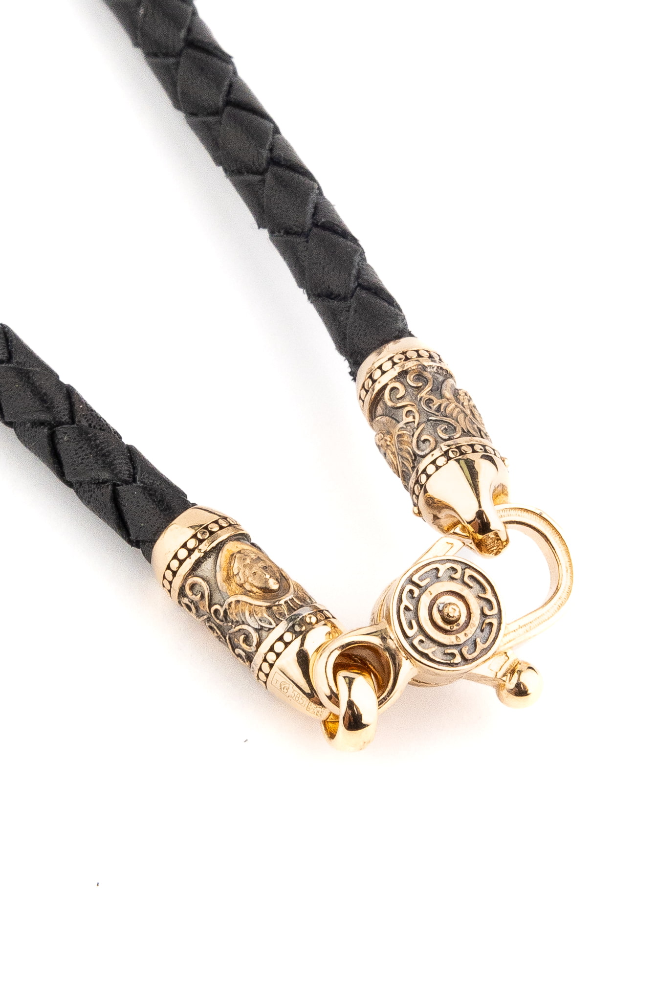 Гайтан из золота c кожаным шнурком