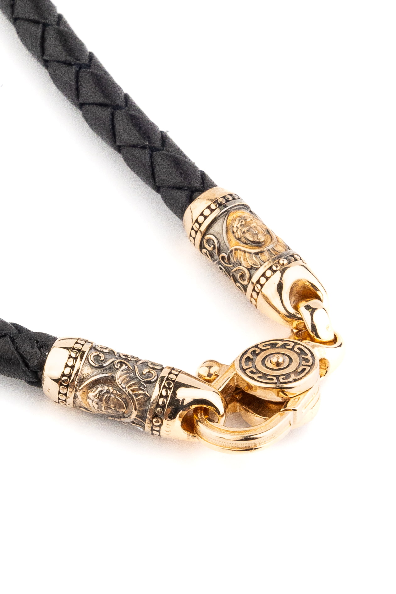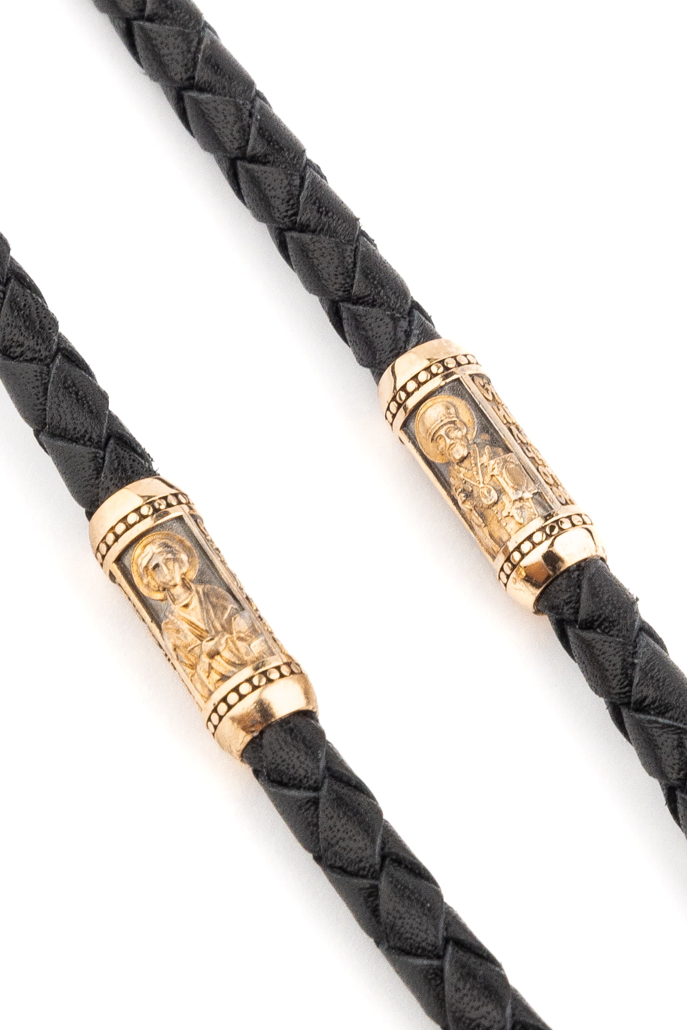 Гайтан из золота c кожаным шнурком