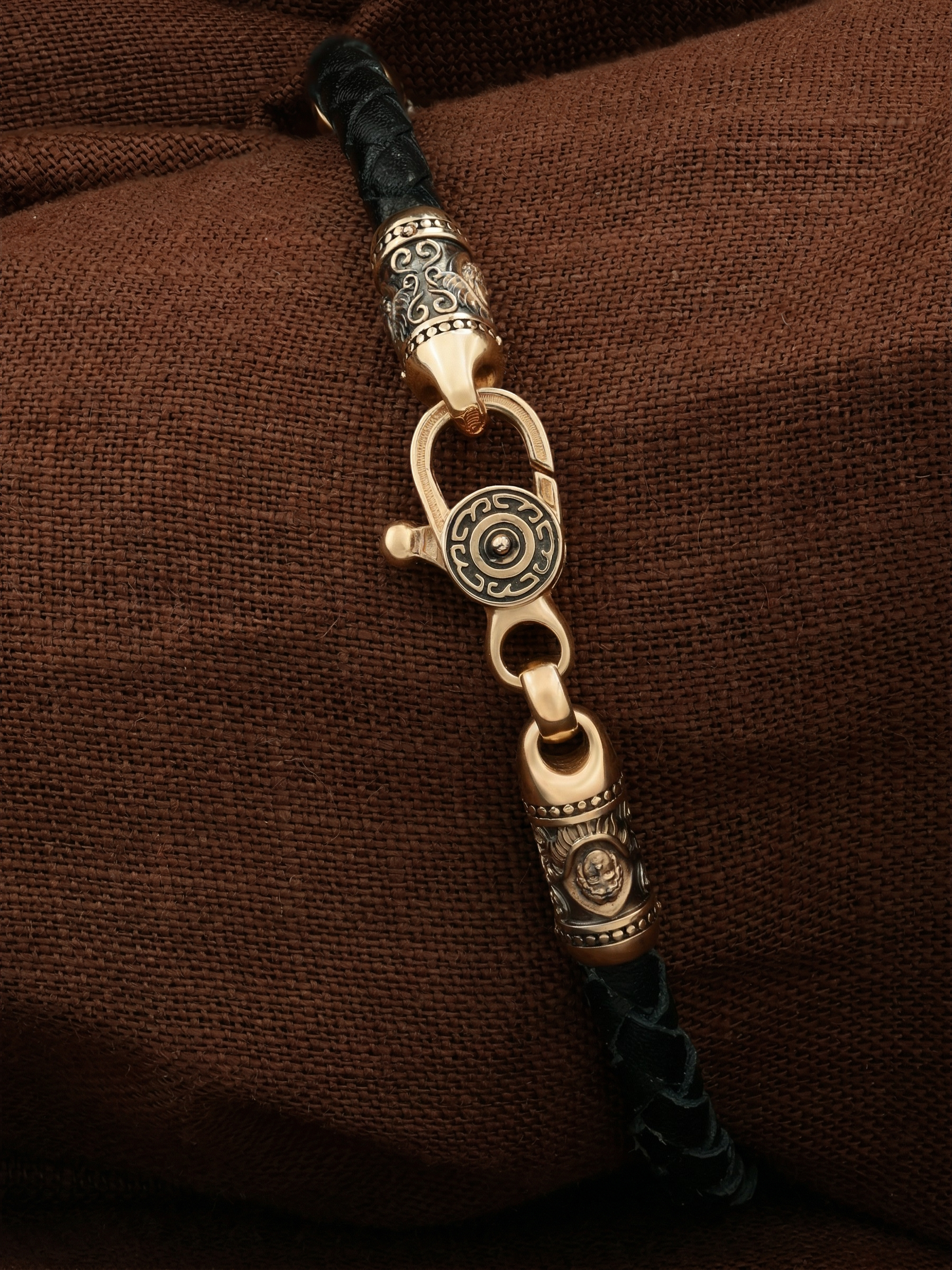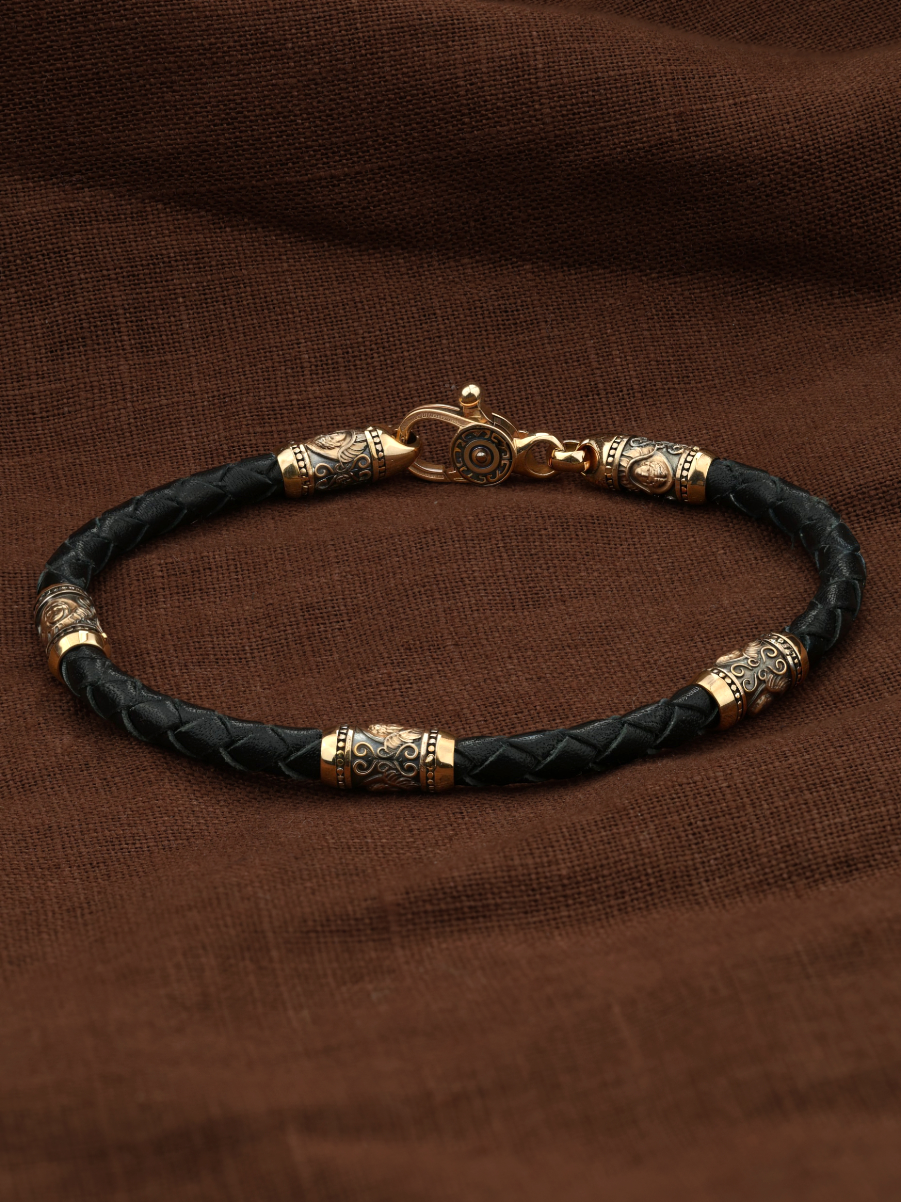 Браслет из золота c кожаным шнурком