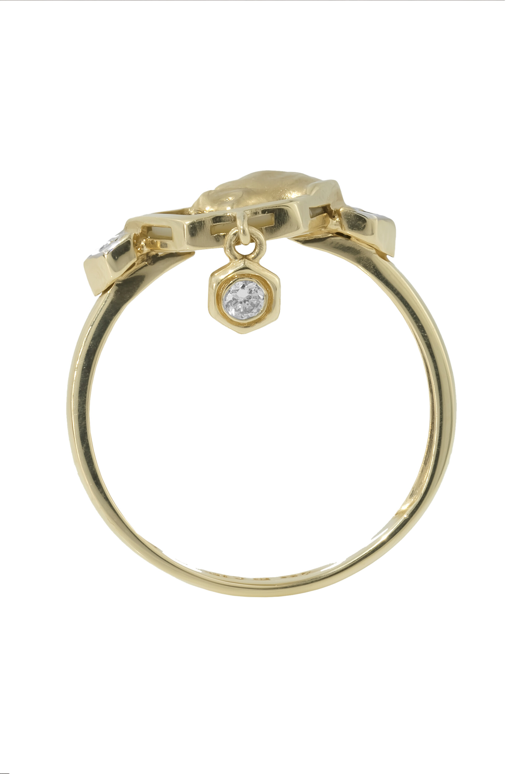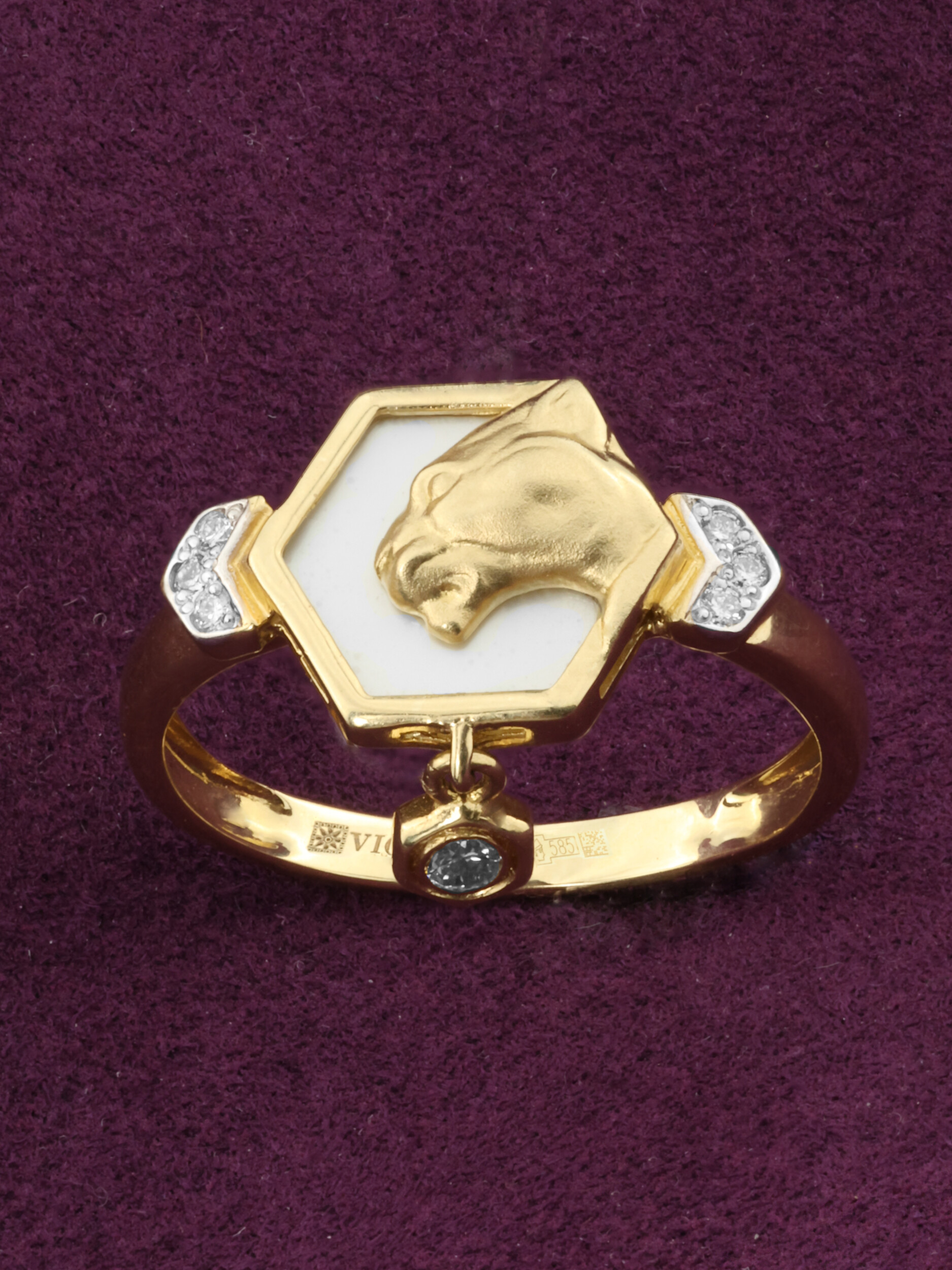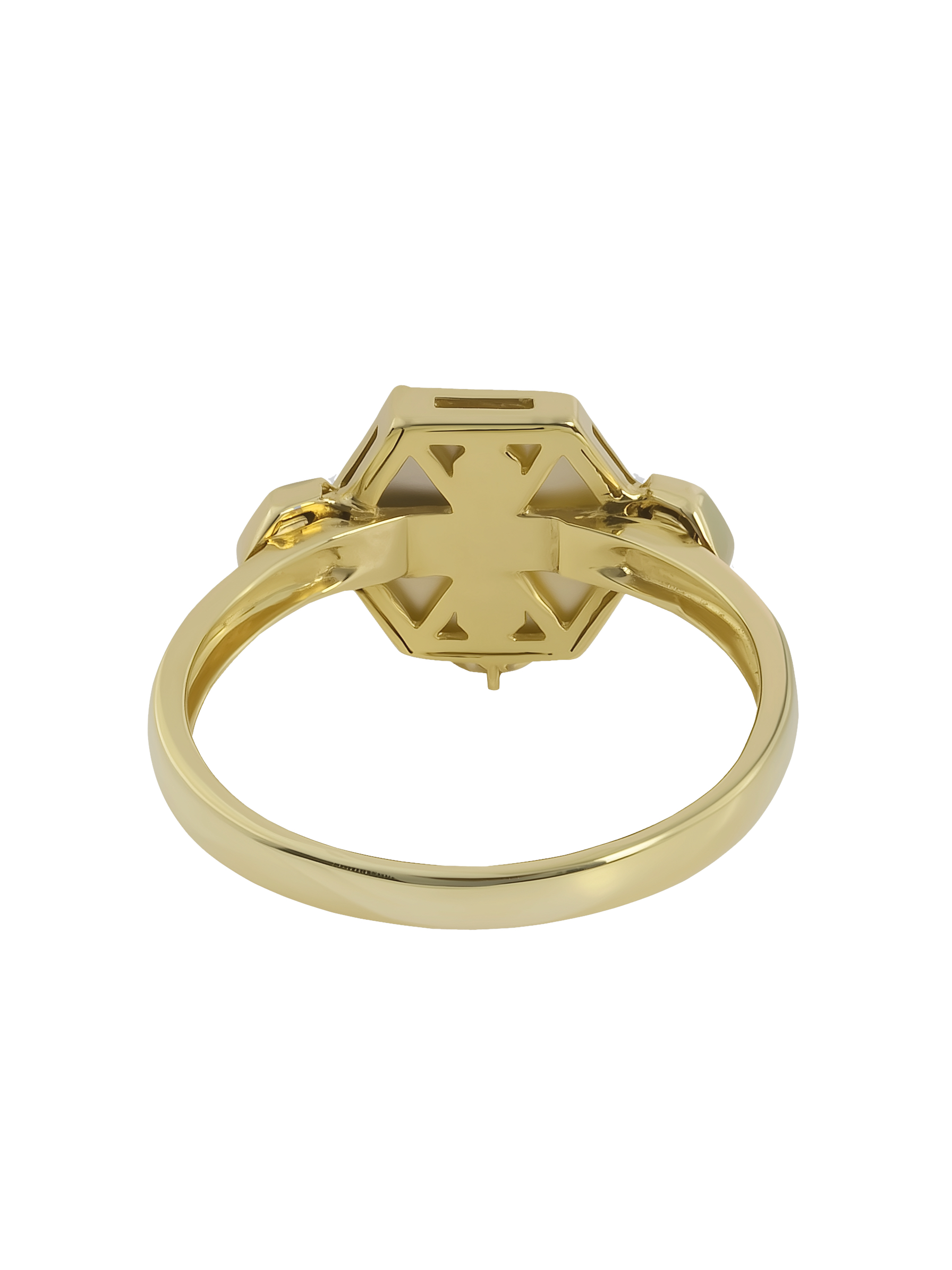 Кольцо из лимонного золота c бриллиантами и перламутром