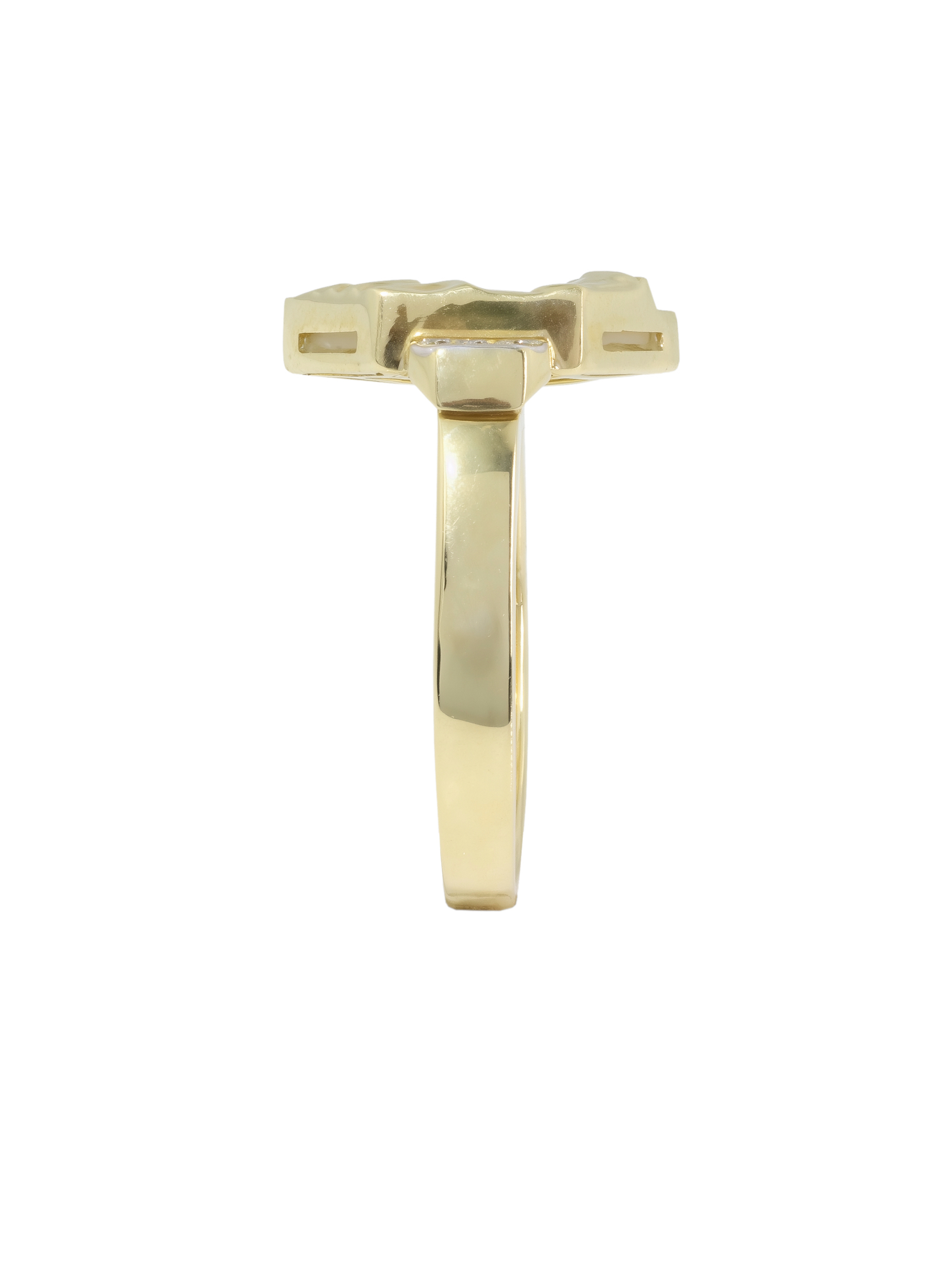 Кольцо из лимонного золота c бриллиантами и перламутром