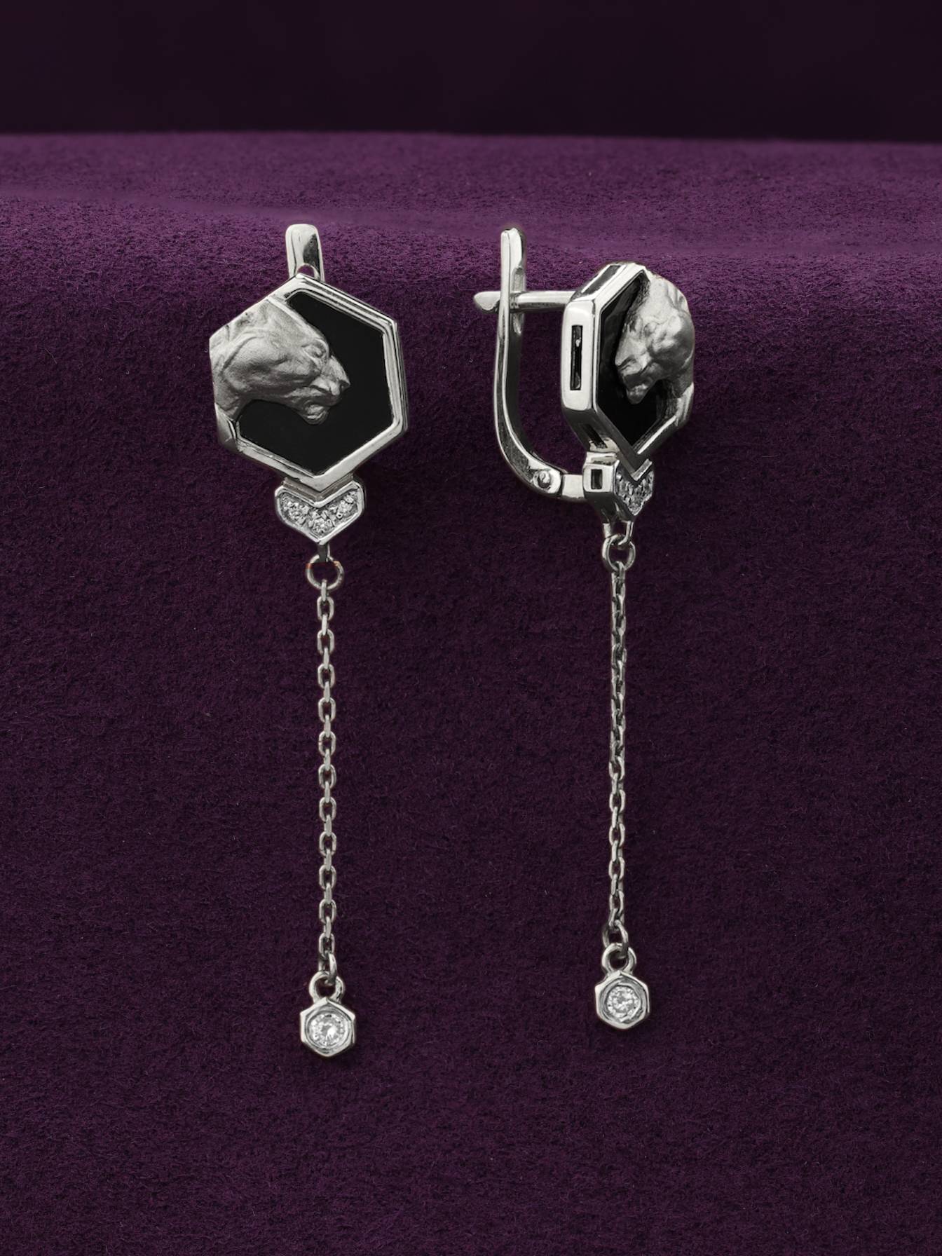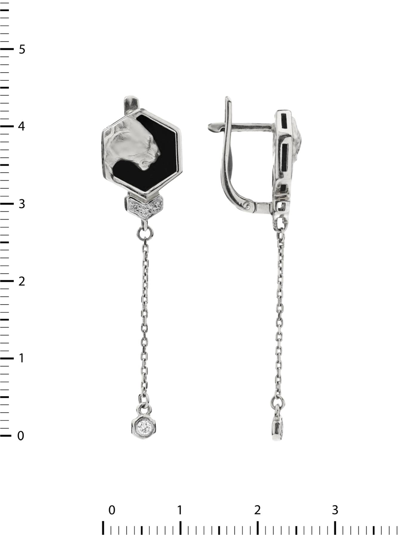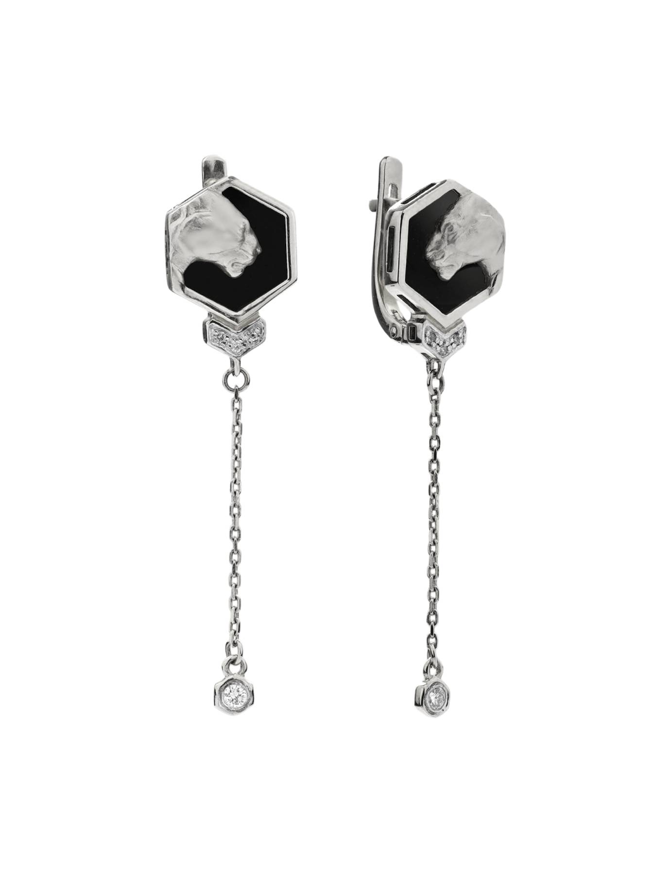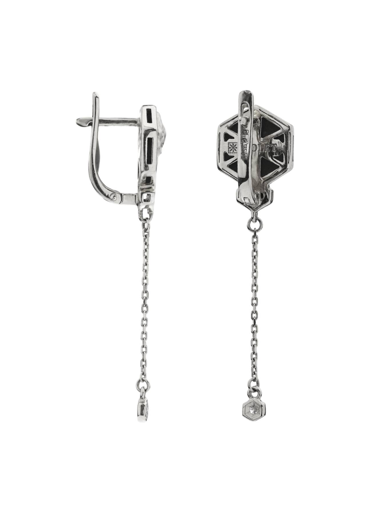 Серьги из белого золота c бриллиантами и ониксом