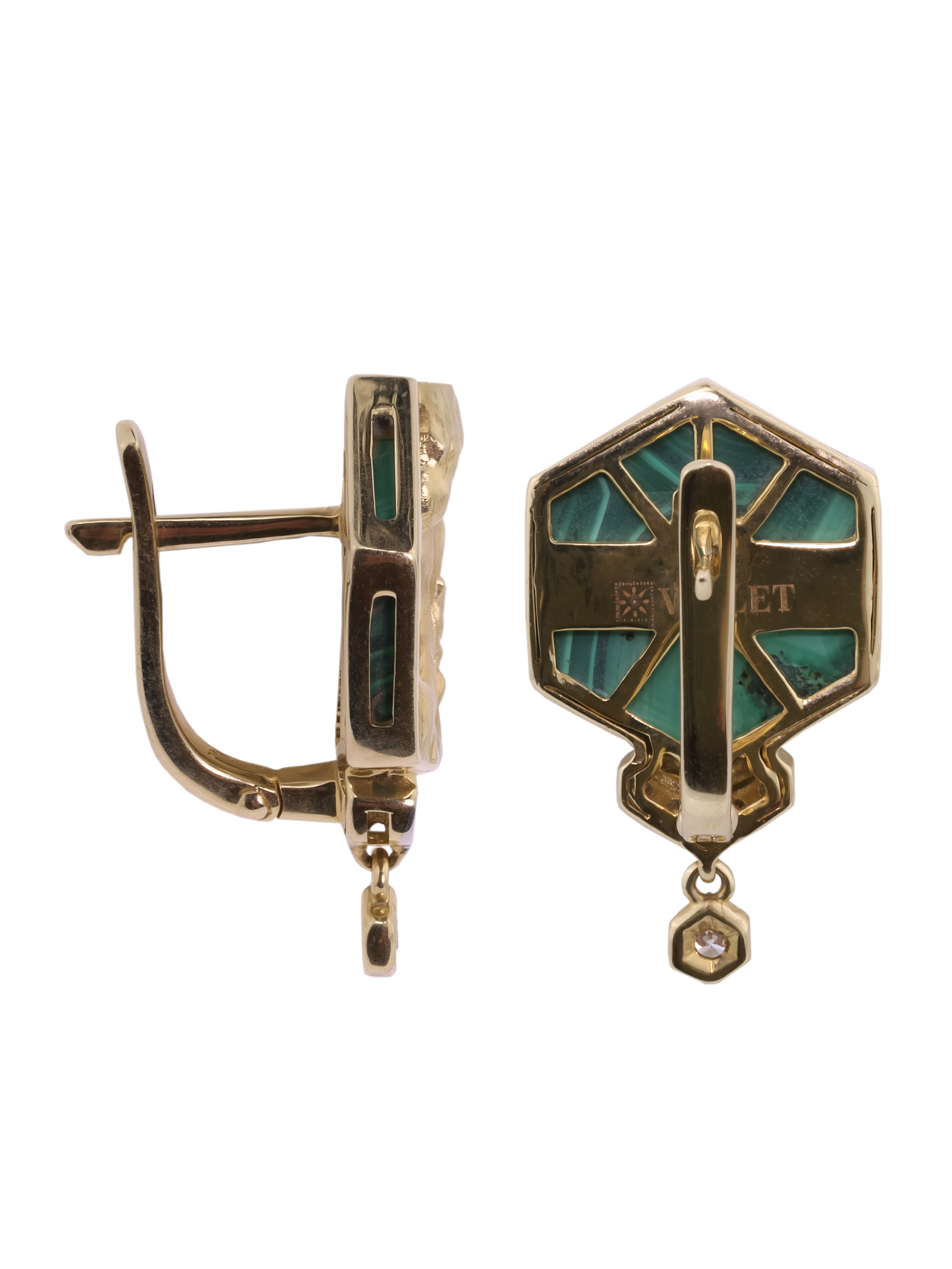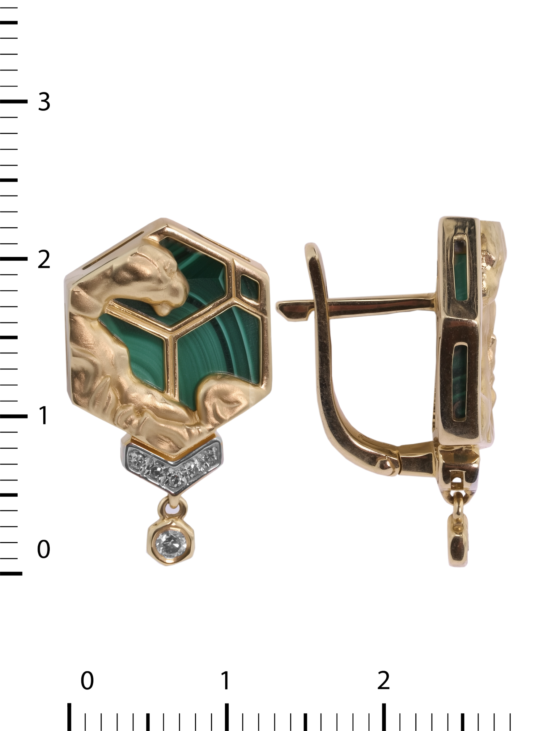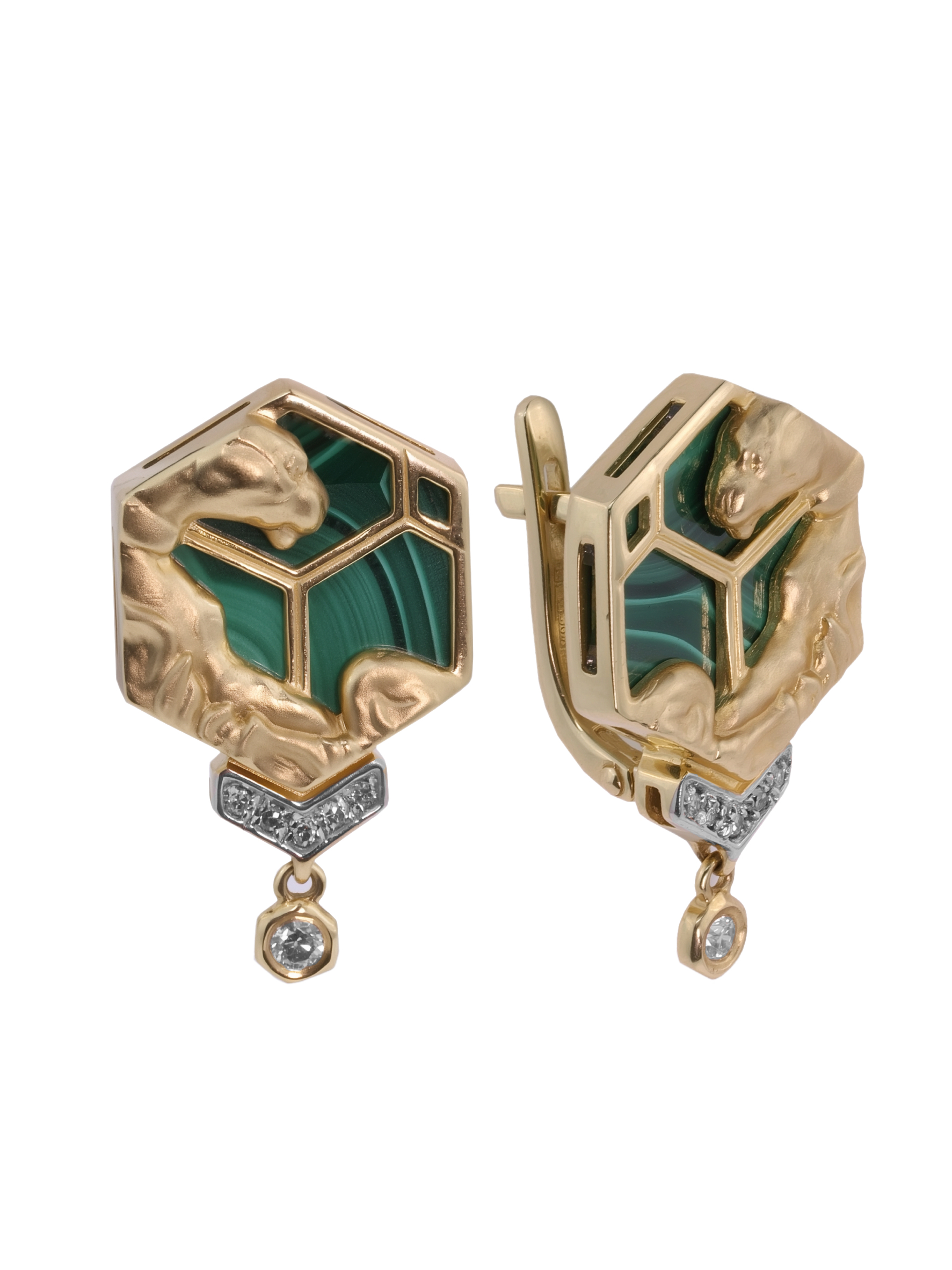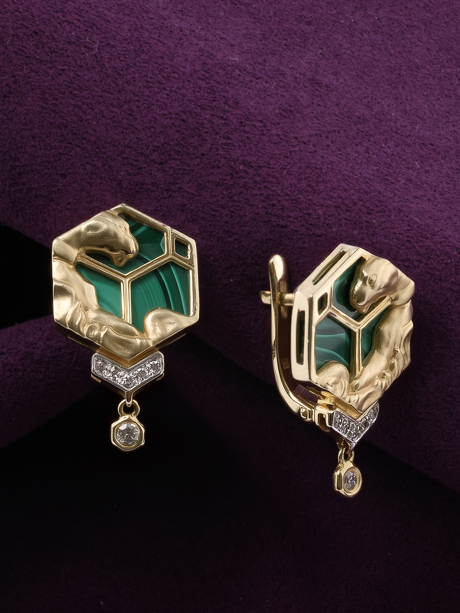 Серьги из лимонного золота c бриллиантами и малахитом