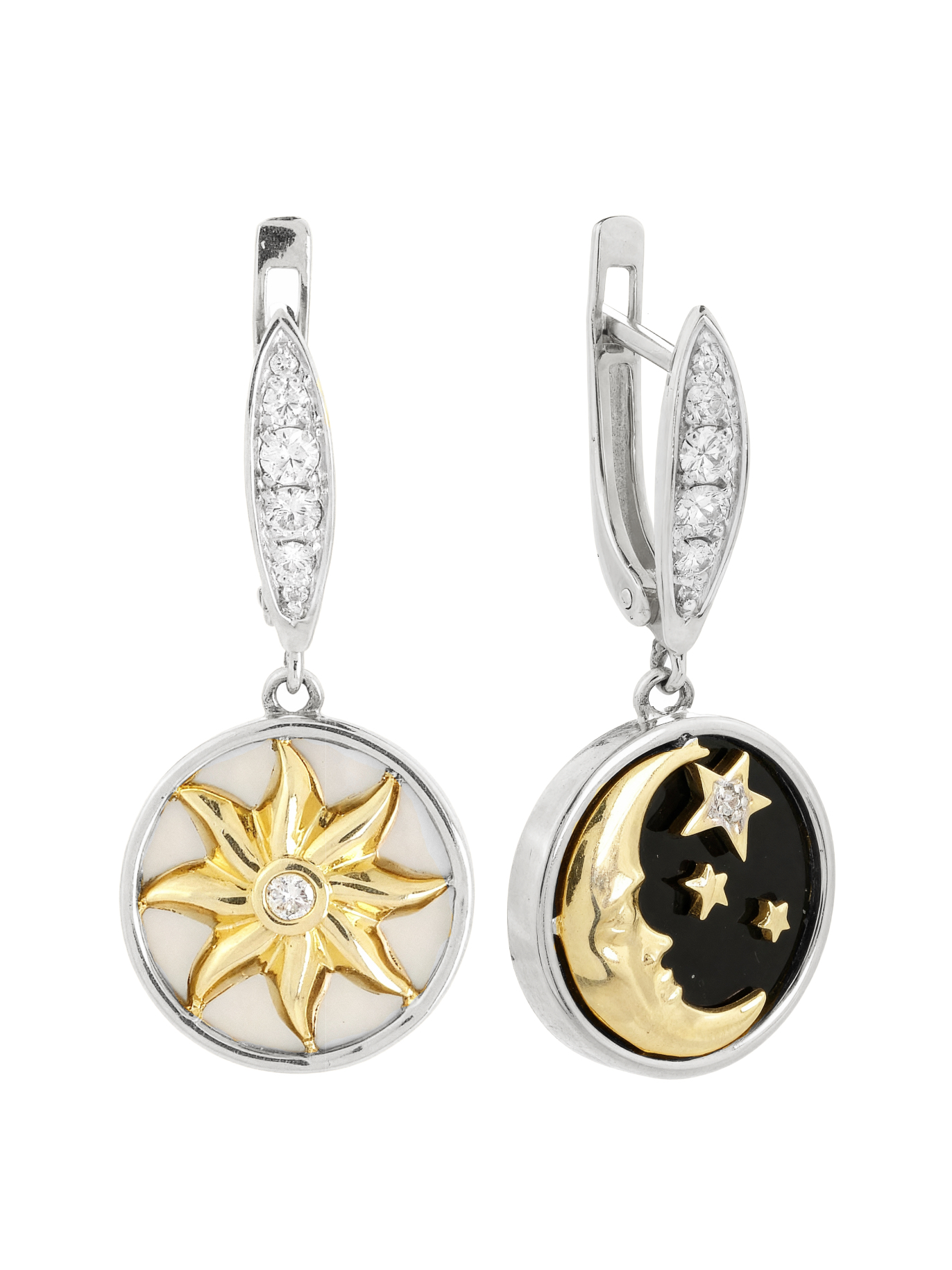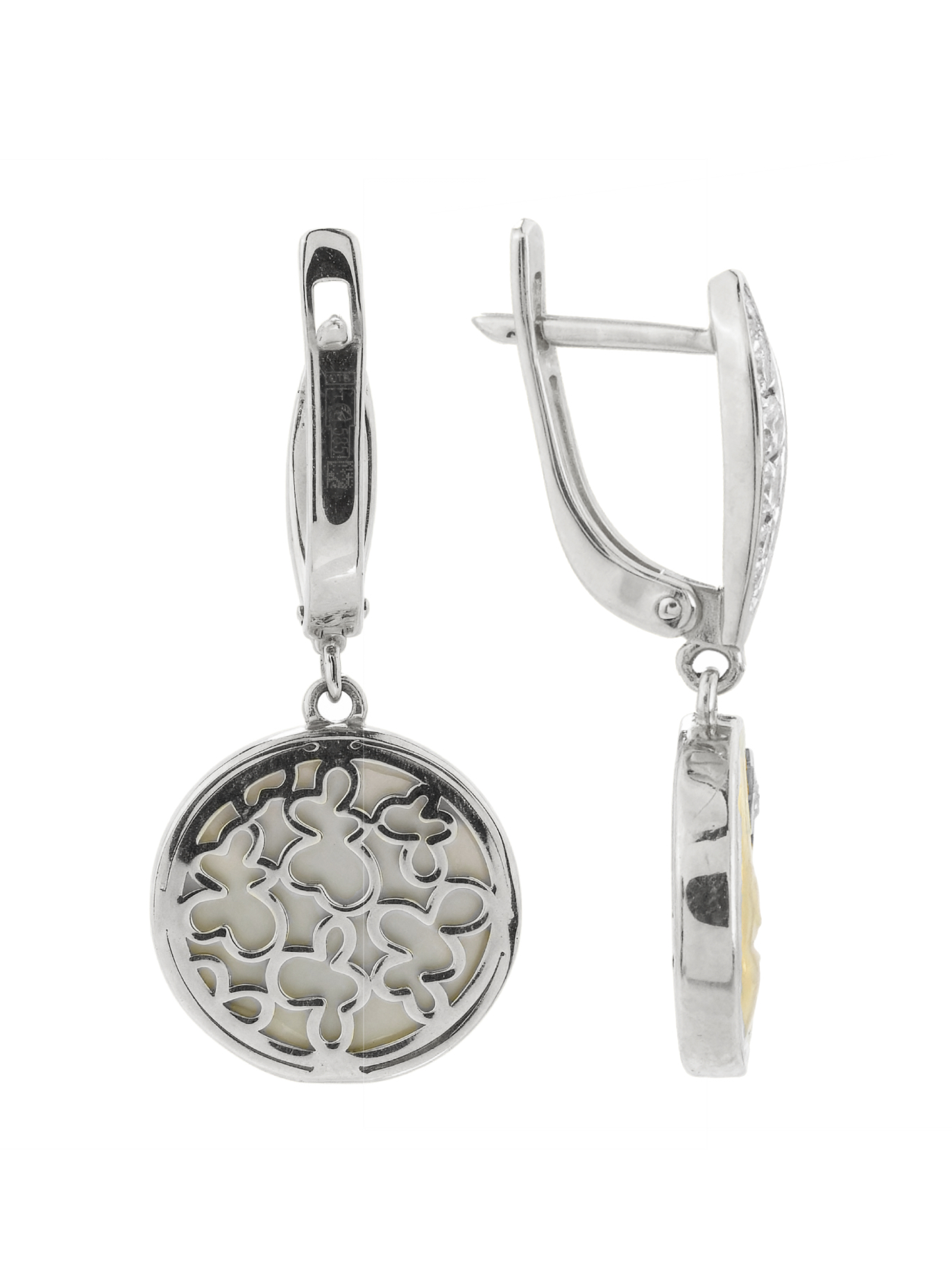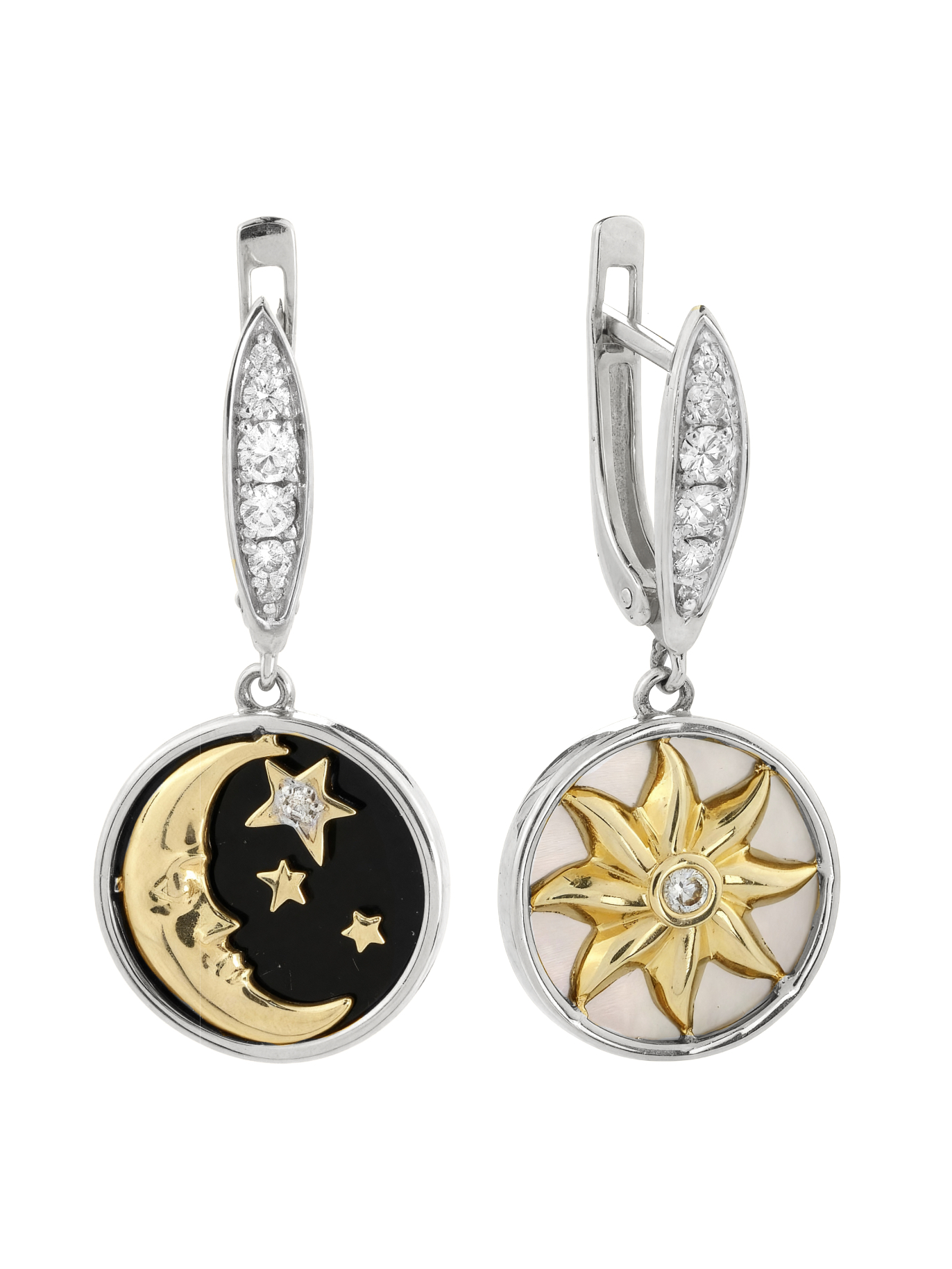 Серьги из белого золота c бриллиантами, ониксом и перламутром