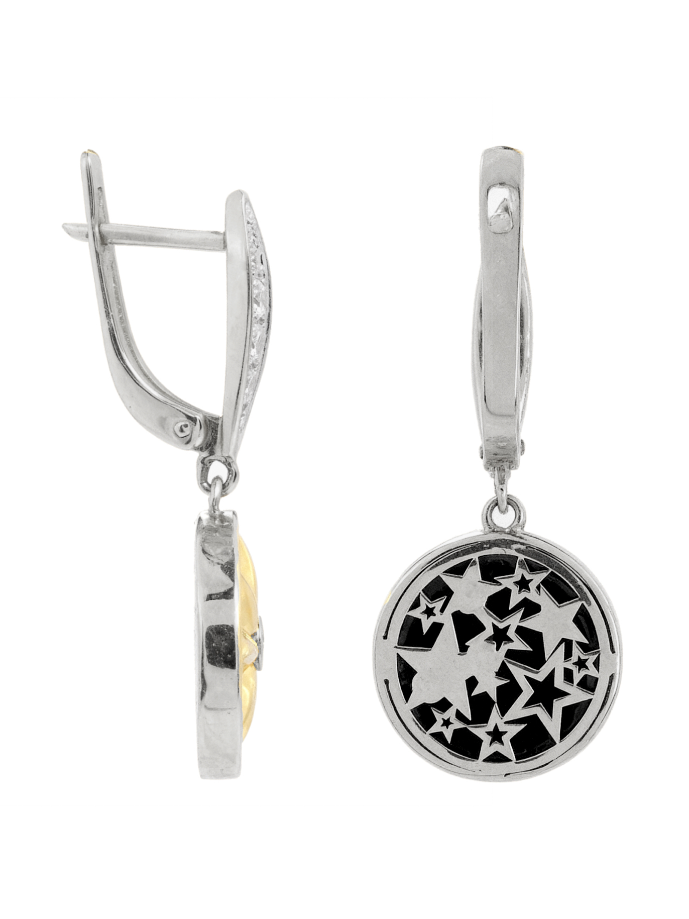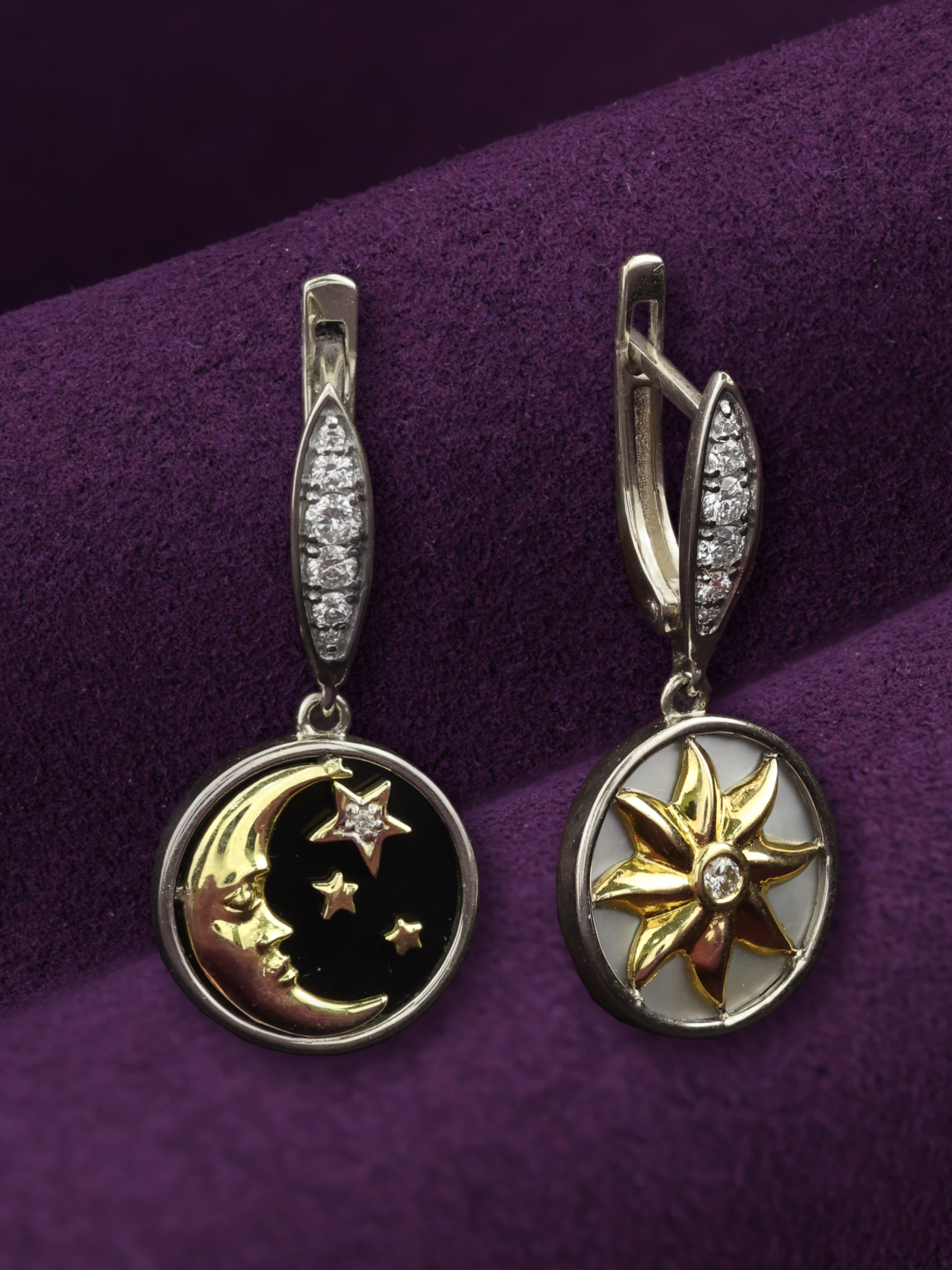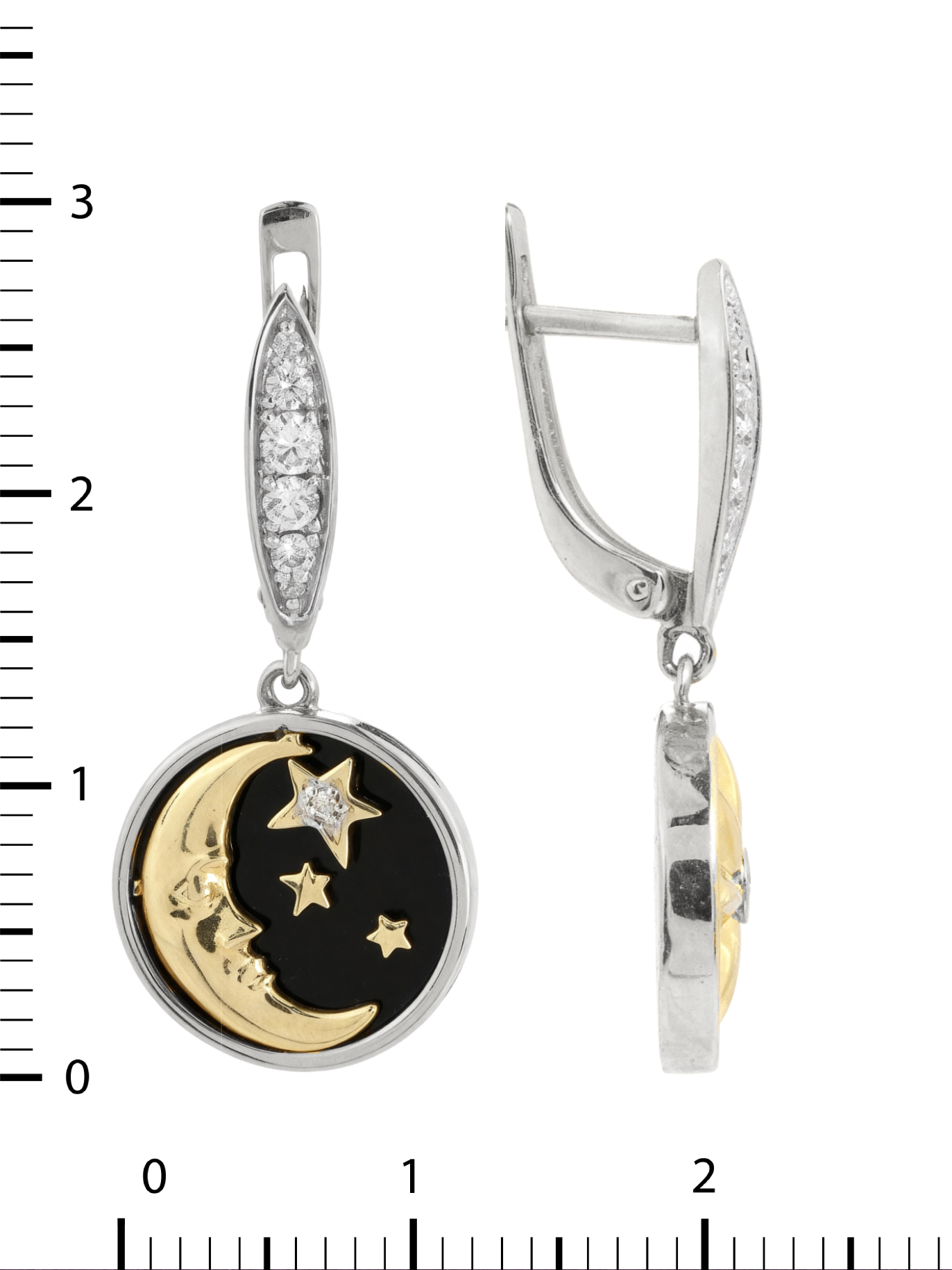 Серьги из белого золота c бриллиантами, ониксом и перламутром