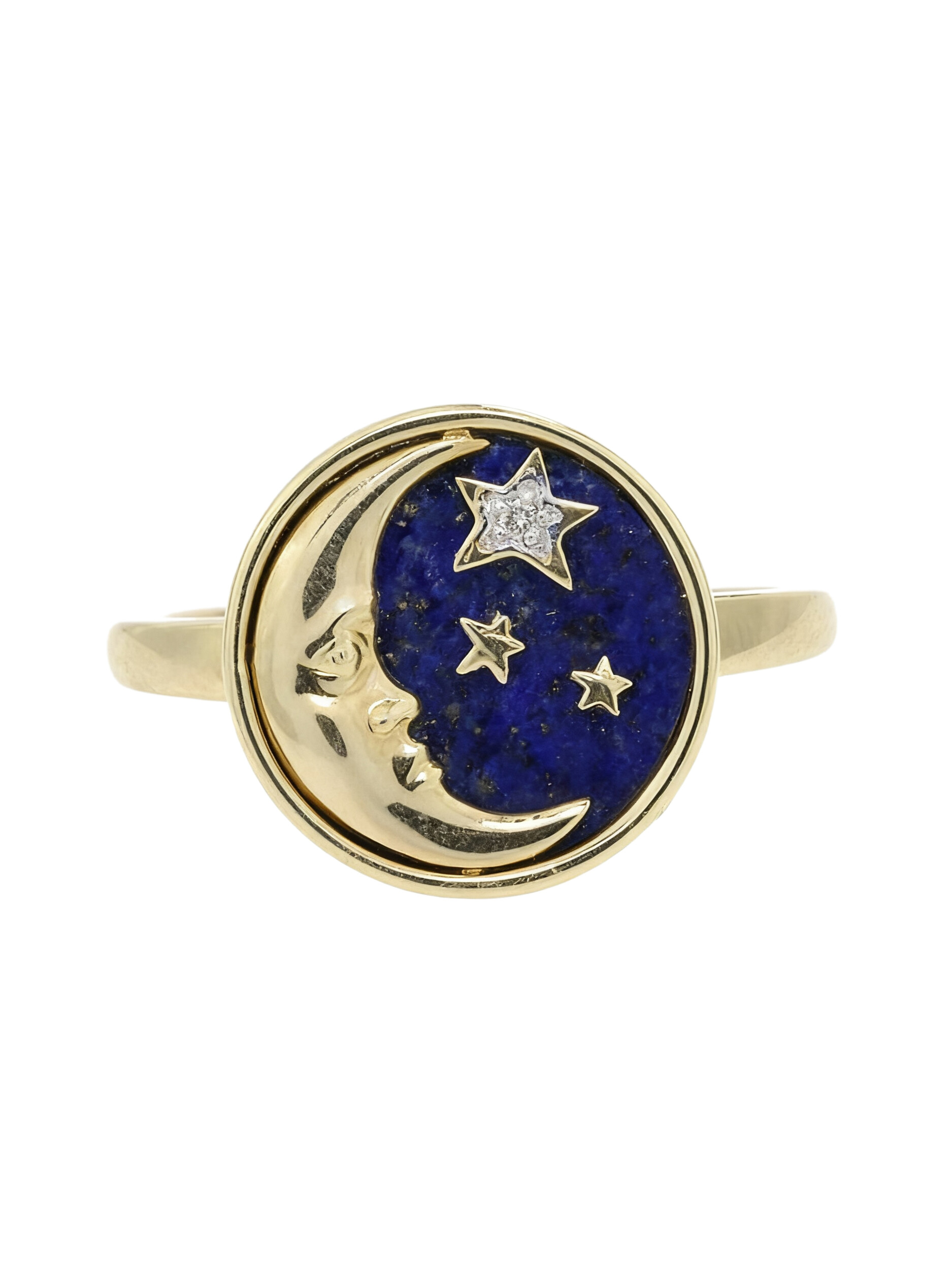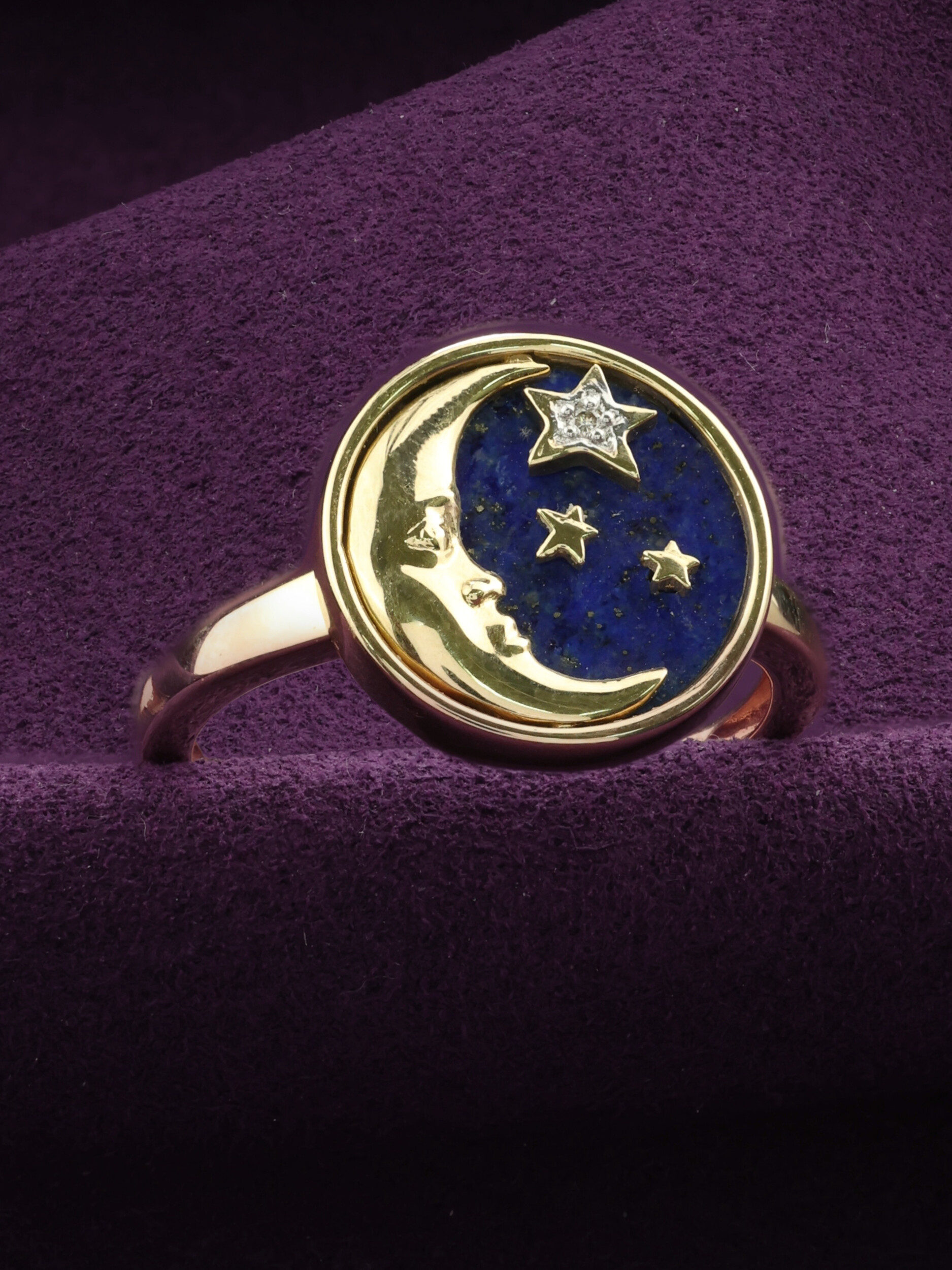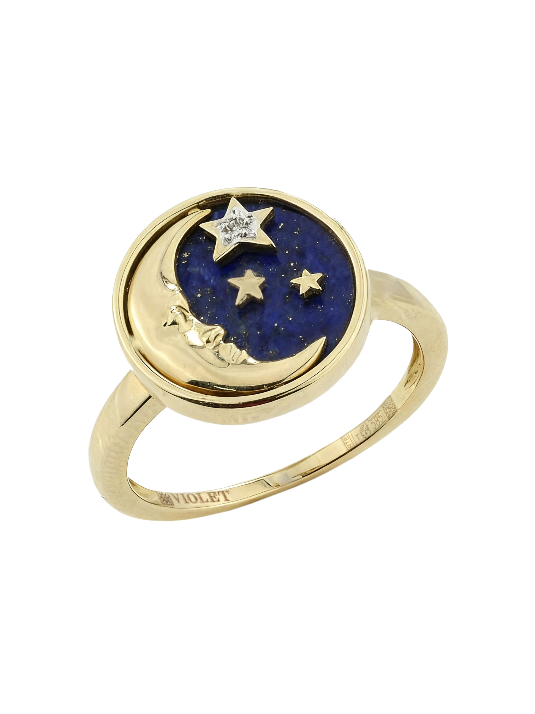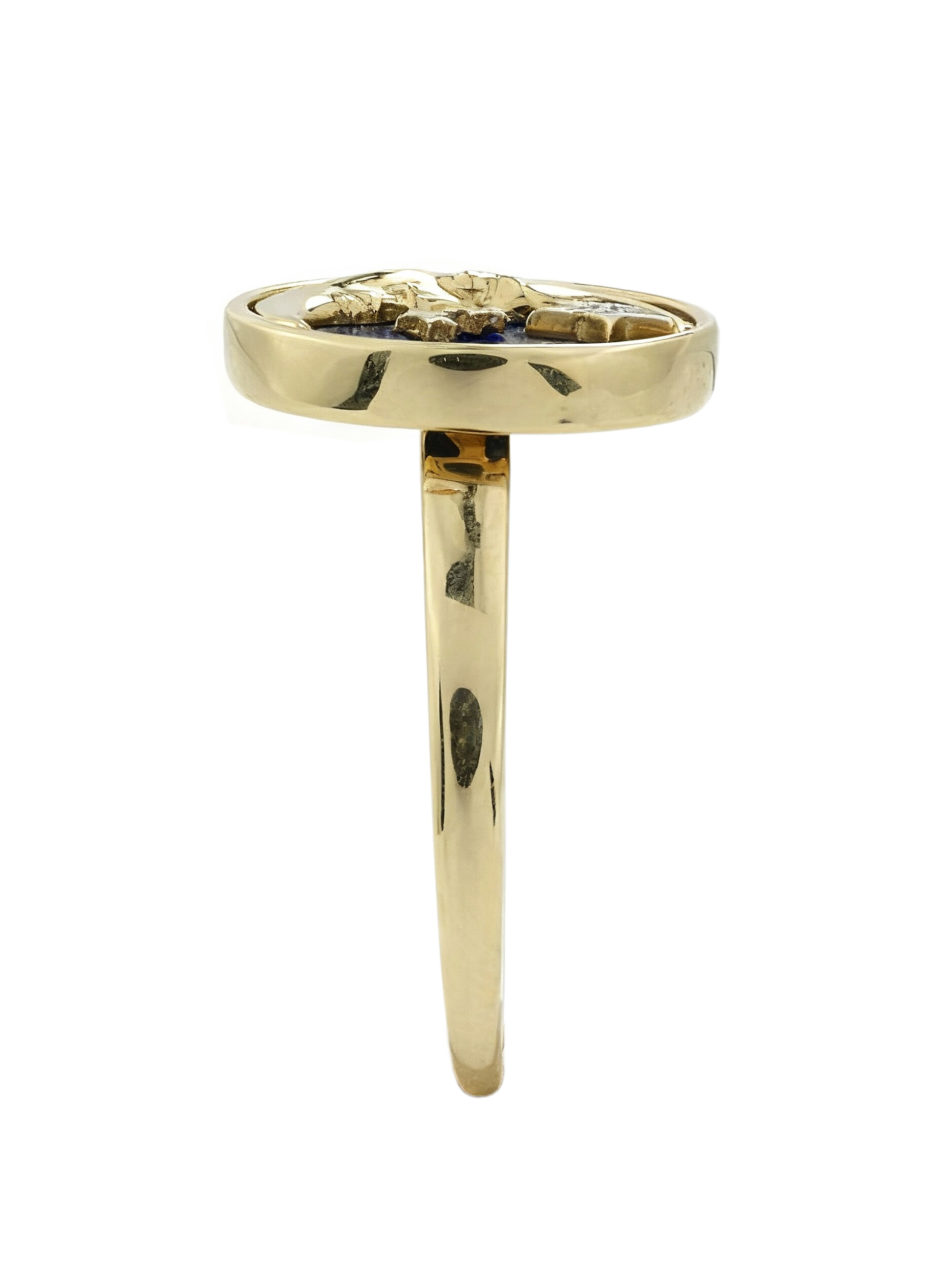 Кольцо из лимонного золота c бриллиантами и лазуритом