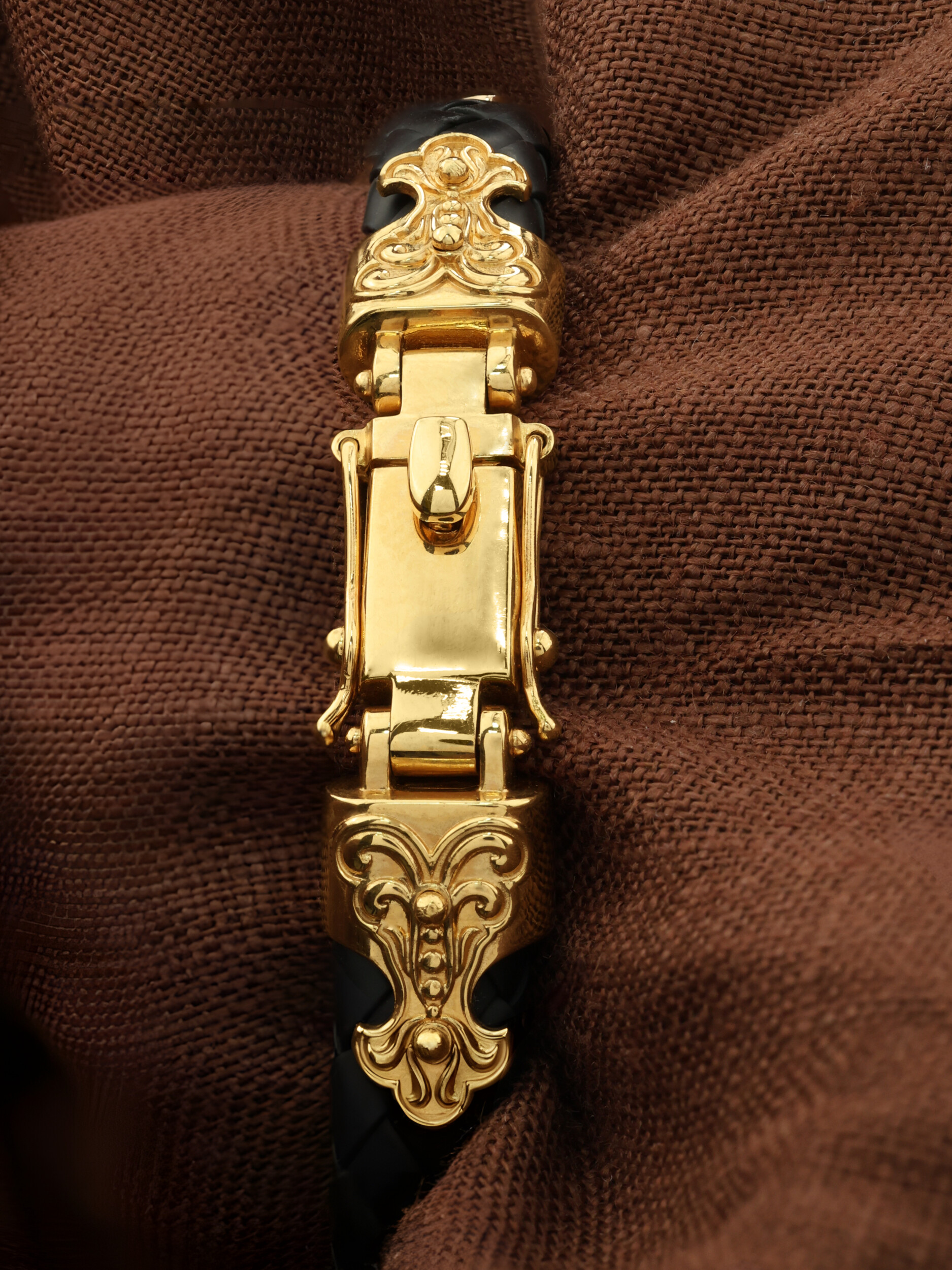 Браслет из лимонного золота c шнурком и ониксом
