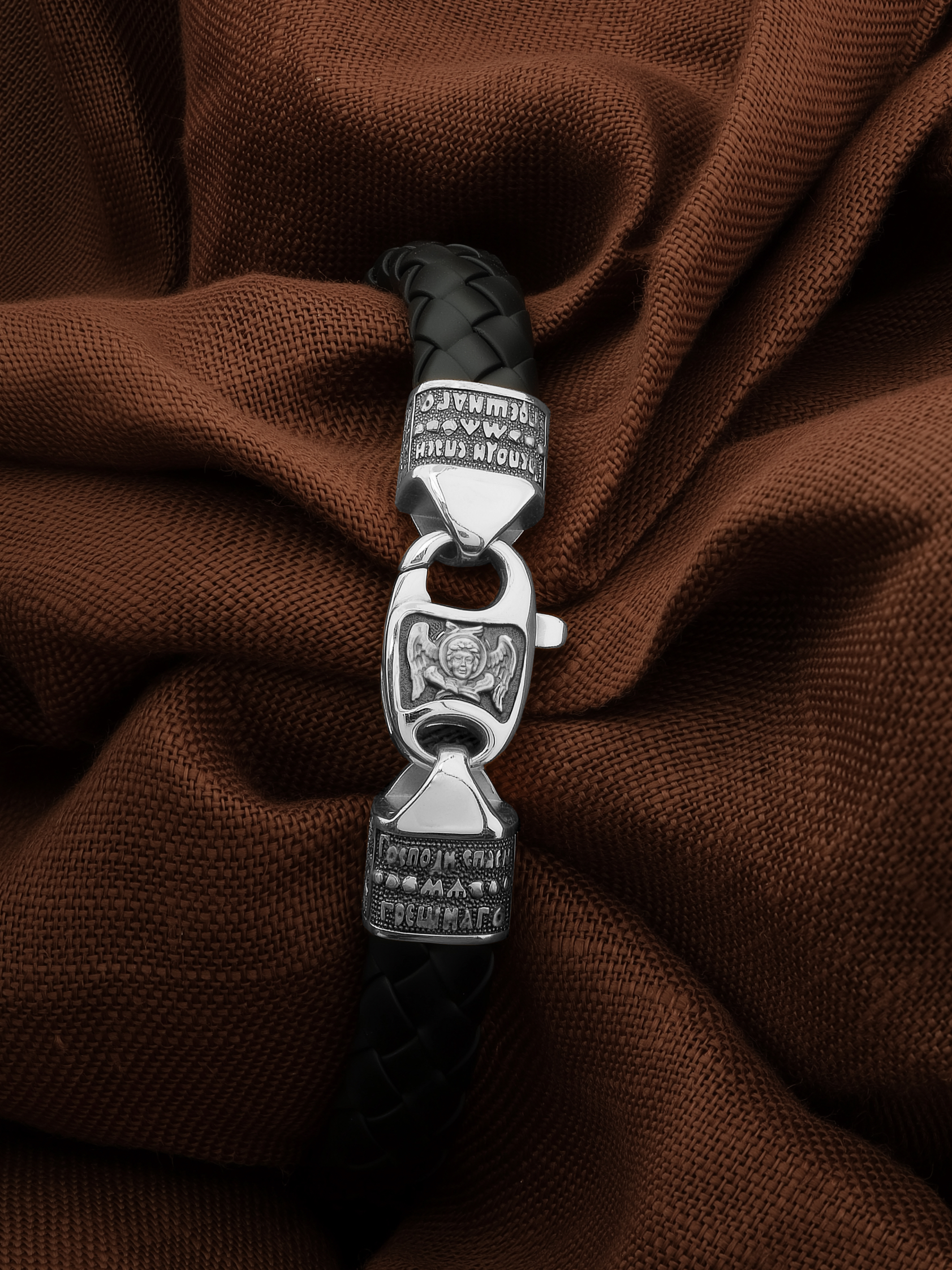 На концах расположены концевики с молитвой: «Господи, спаси мя грешного». Соединяет концевики замочек-карабин в форме рыбки. На замочке изображен шестикрылый Серафим — самый приближенный к Господу Ангел.